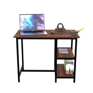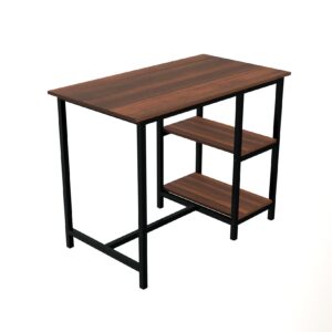 Aanya Engineered Wood Work Table with Metal Frame, Shelves for Home Office, 100 x 55 cm Flowery Wenge and Black Finish (Classic Walnut)