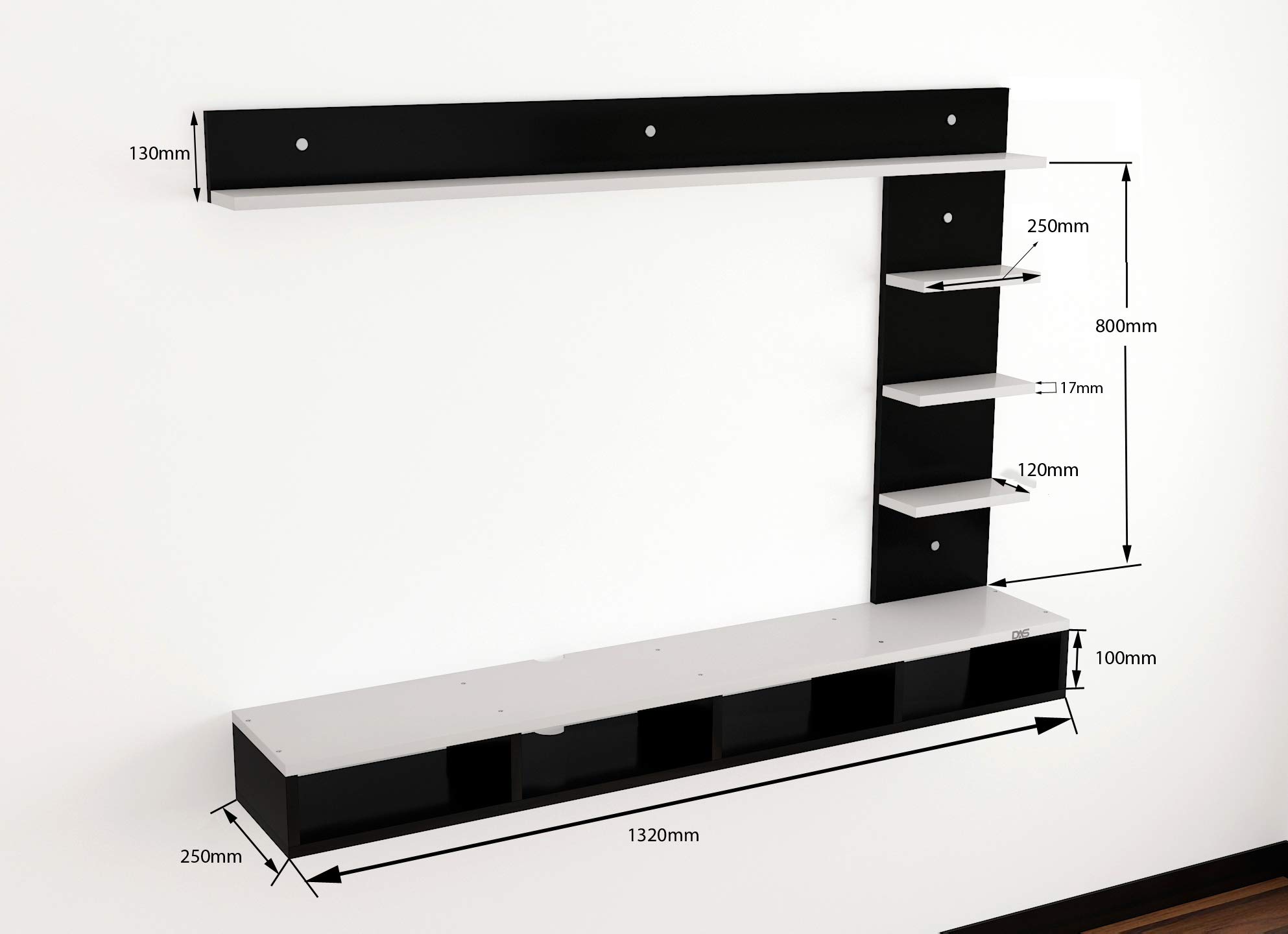 Material- Engineered Wood Color- Black & White Product Type- TV Entertainment Unit Style- Contemporary Ideal TV Size- Upto 43 Inches