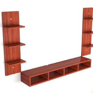 Bolivar High Strength & Durable Wall Mount TV Entertainment Unit/with Set Top Box Stand and 6 Wall Shelf Display Rack for Living Room Classic Walnut Large (Ideal for up to 55″) Screen