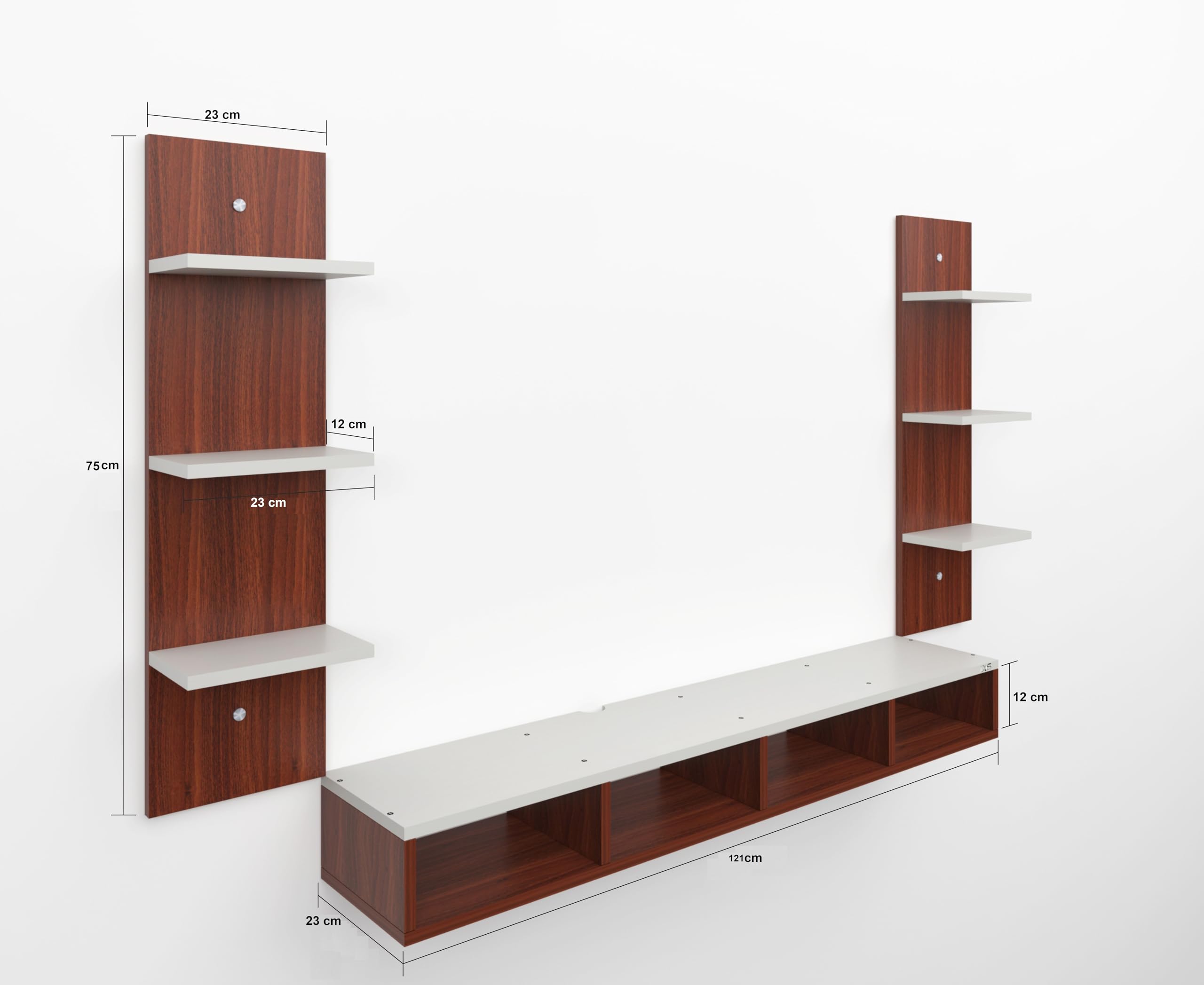 Bolivar Pro Wall Mount Engineered Wood TV Entertainment Unit/Tv Rack Set to Box Stand with Wall Shelves for Living Room Classic Walnut & Frosty White Finish (Ideal for up to 55″) Screen