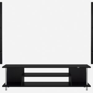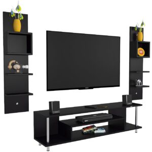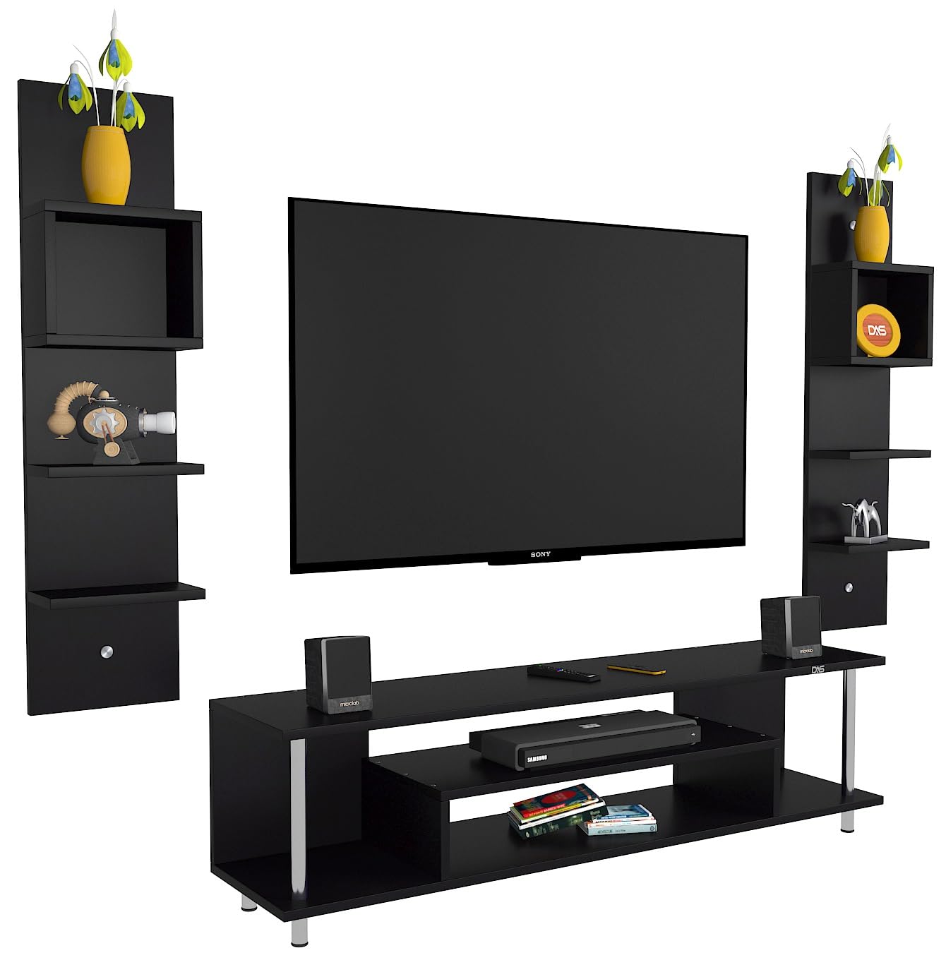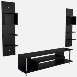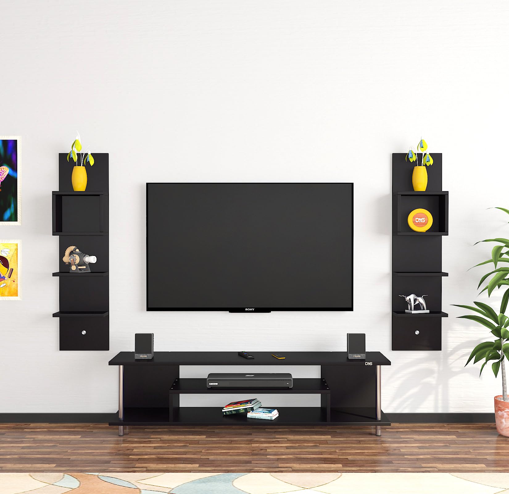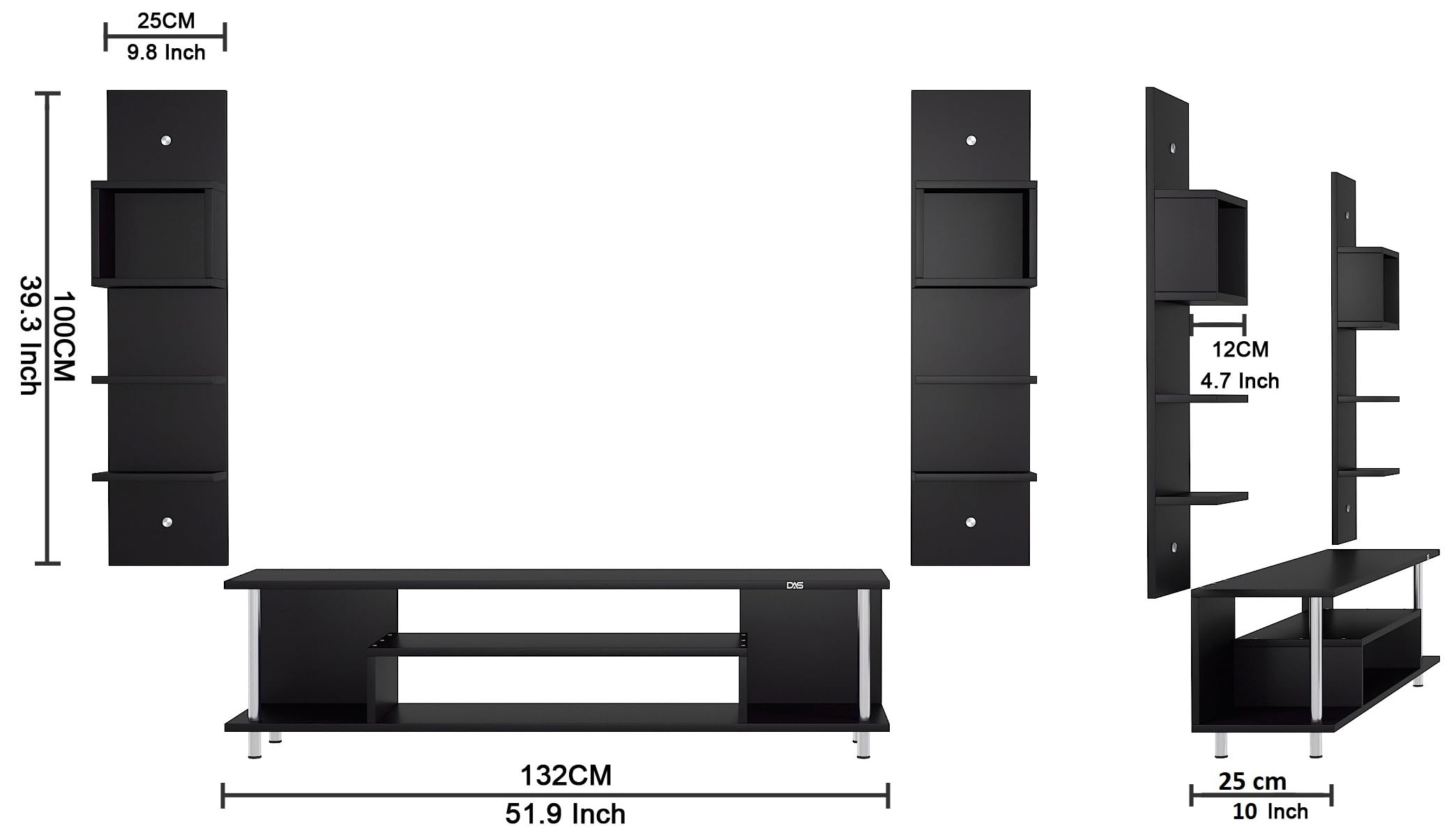 Material- Pre-laminated particle baord. Weight Capacity- 25 KG. Cable Management. Product Dimension- TV Cabinet- 132 x 25 x 40 CM, Wall Shelf- 25 x 12 CM, Shelf supporting Unit- 100 x 25 CM, Weight- 19 KG