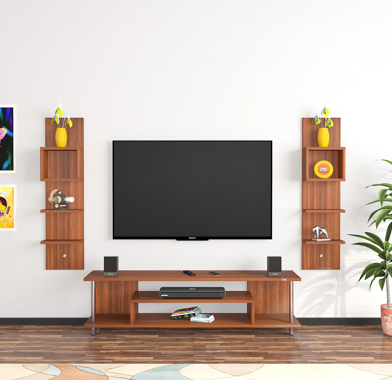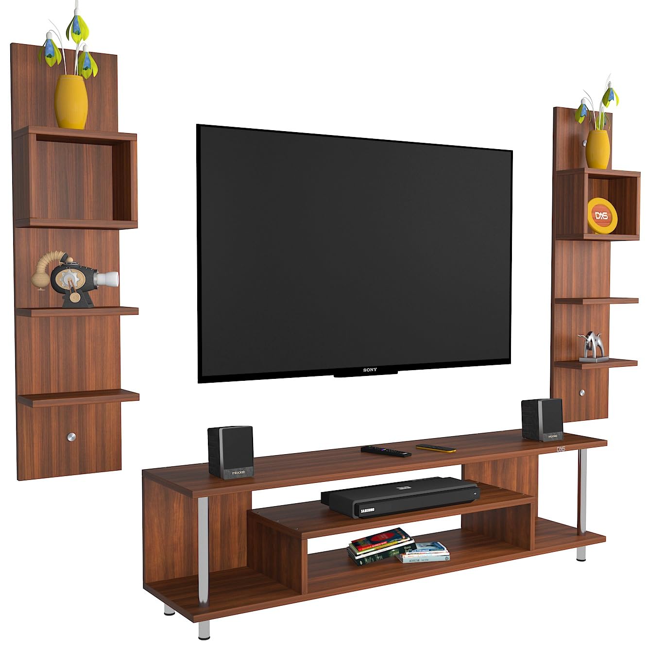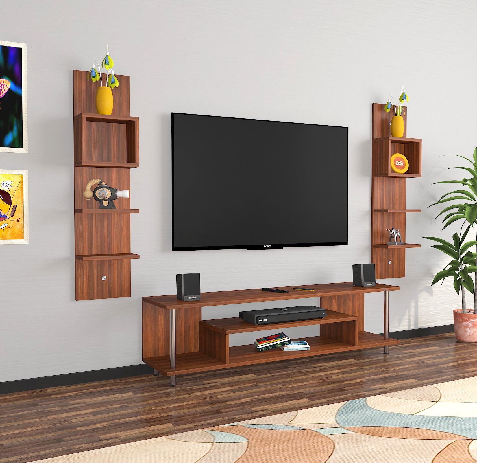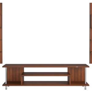 Calix Engineered Wood Freestanding TV Entertainment Unit/Tv Rack Set to Box Stand with Wall Shelves for Living Room (Ideal for up to 55″) Screen Classic Walnut Finish