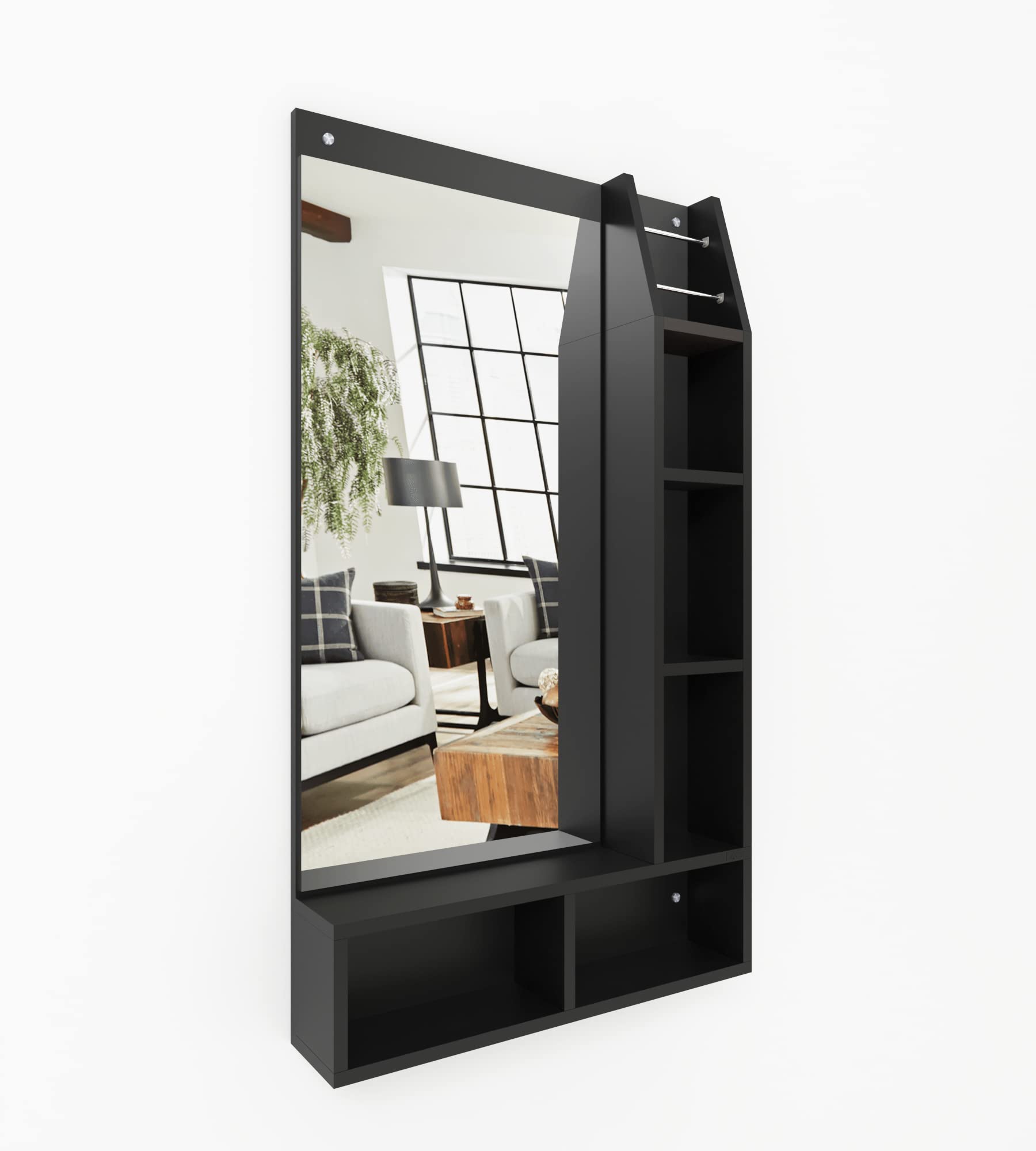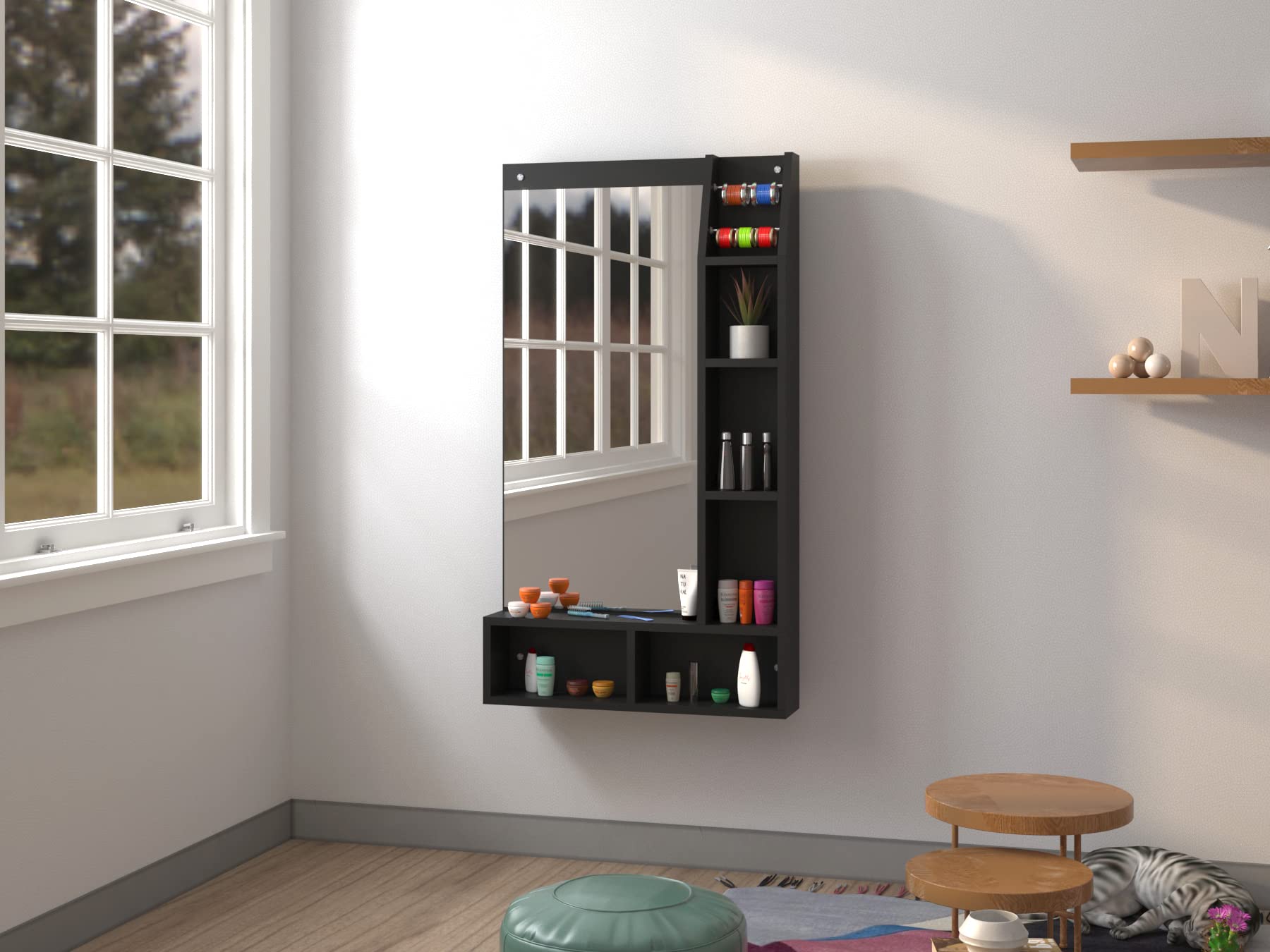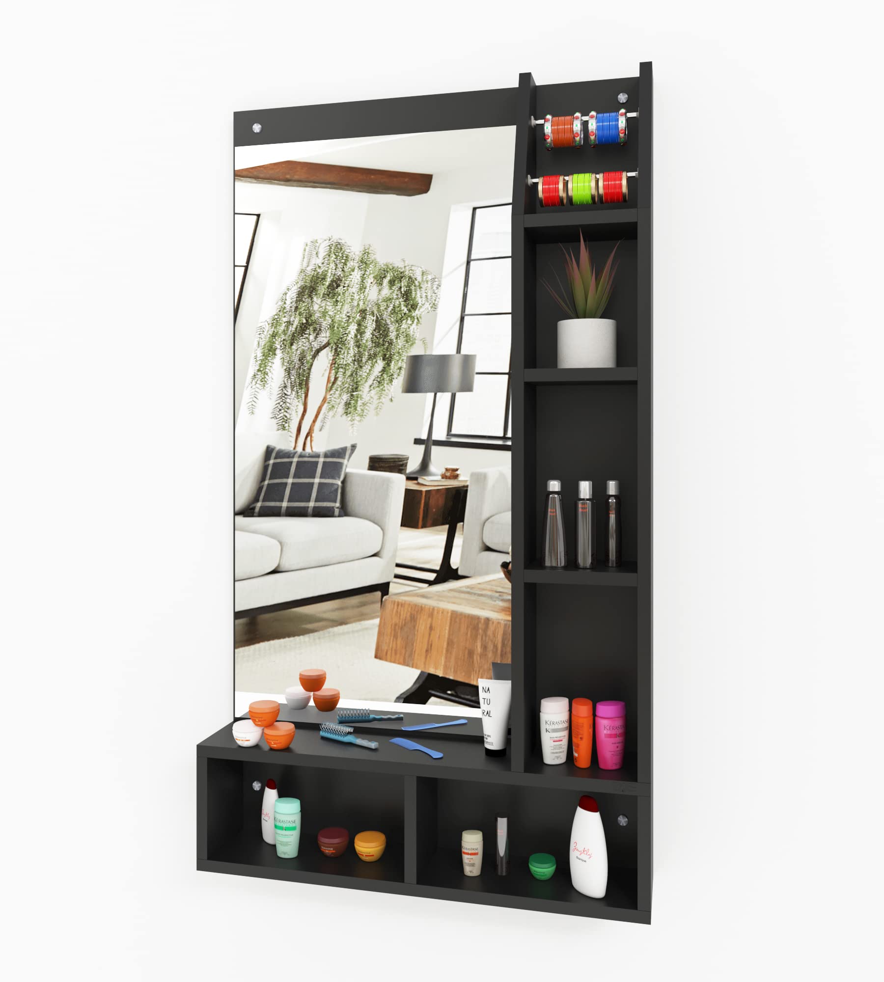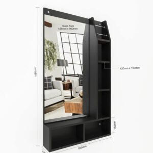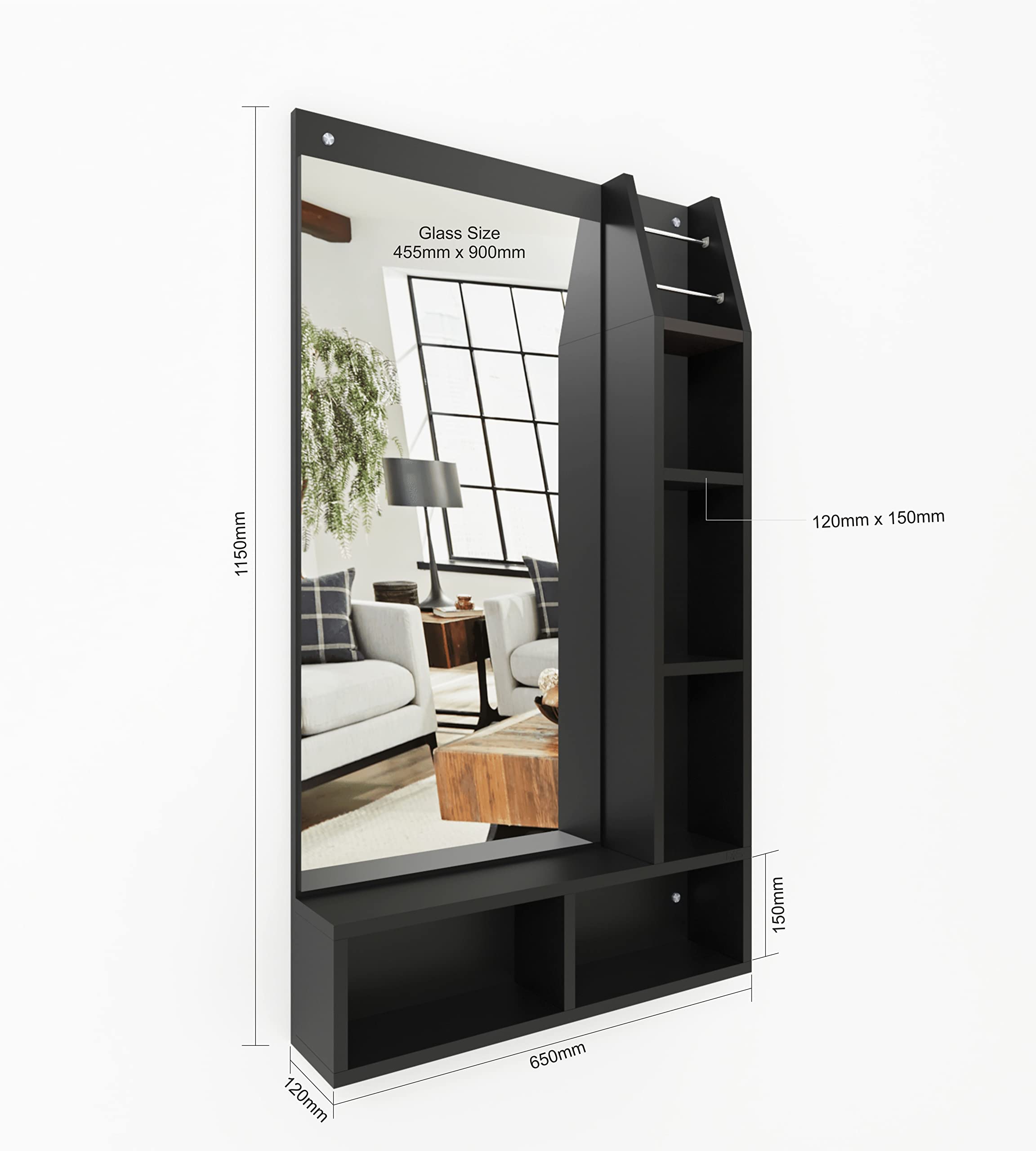 Material- Engineered Wood, Glass and Stainless Steel. Product Dimensions- Wooden Frame- 100 x 60 cm, Mirror- 80 x 39 cm. Weight- 13 kg.