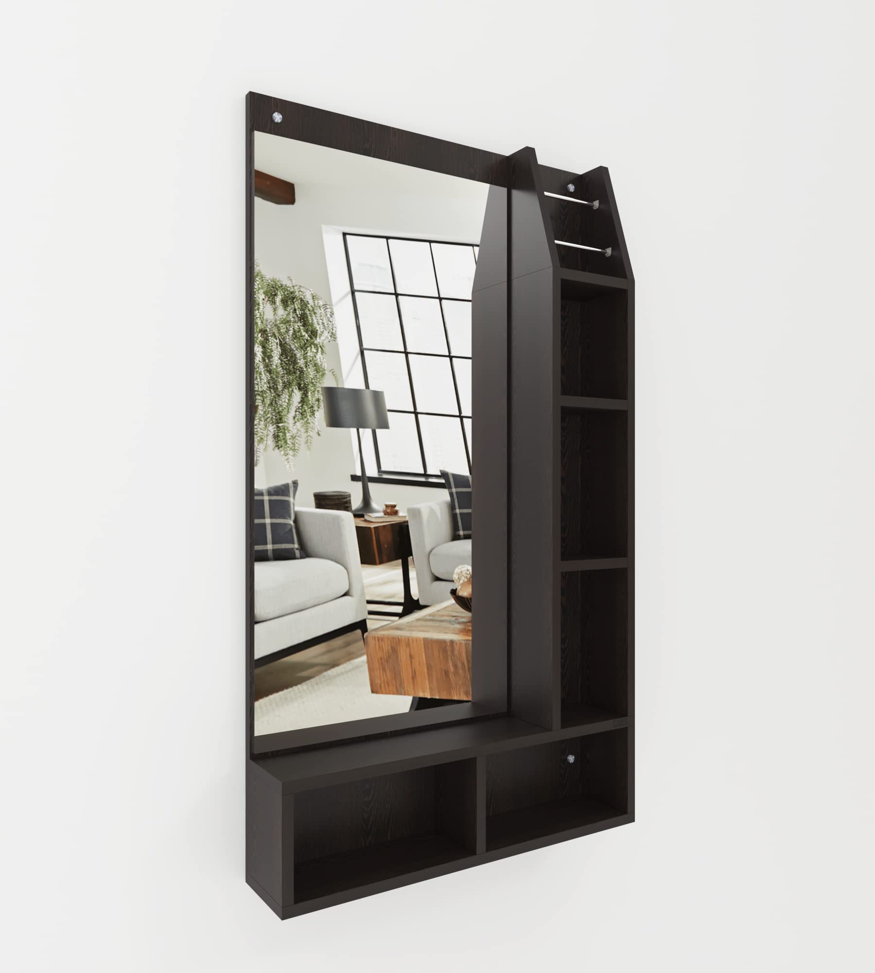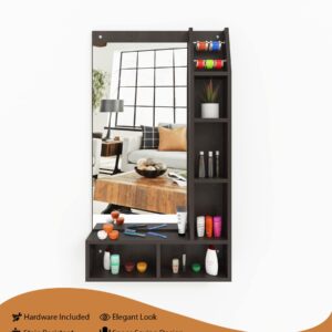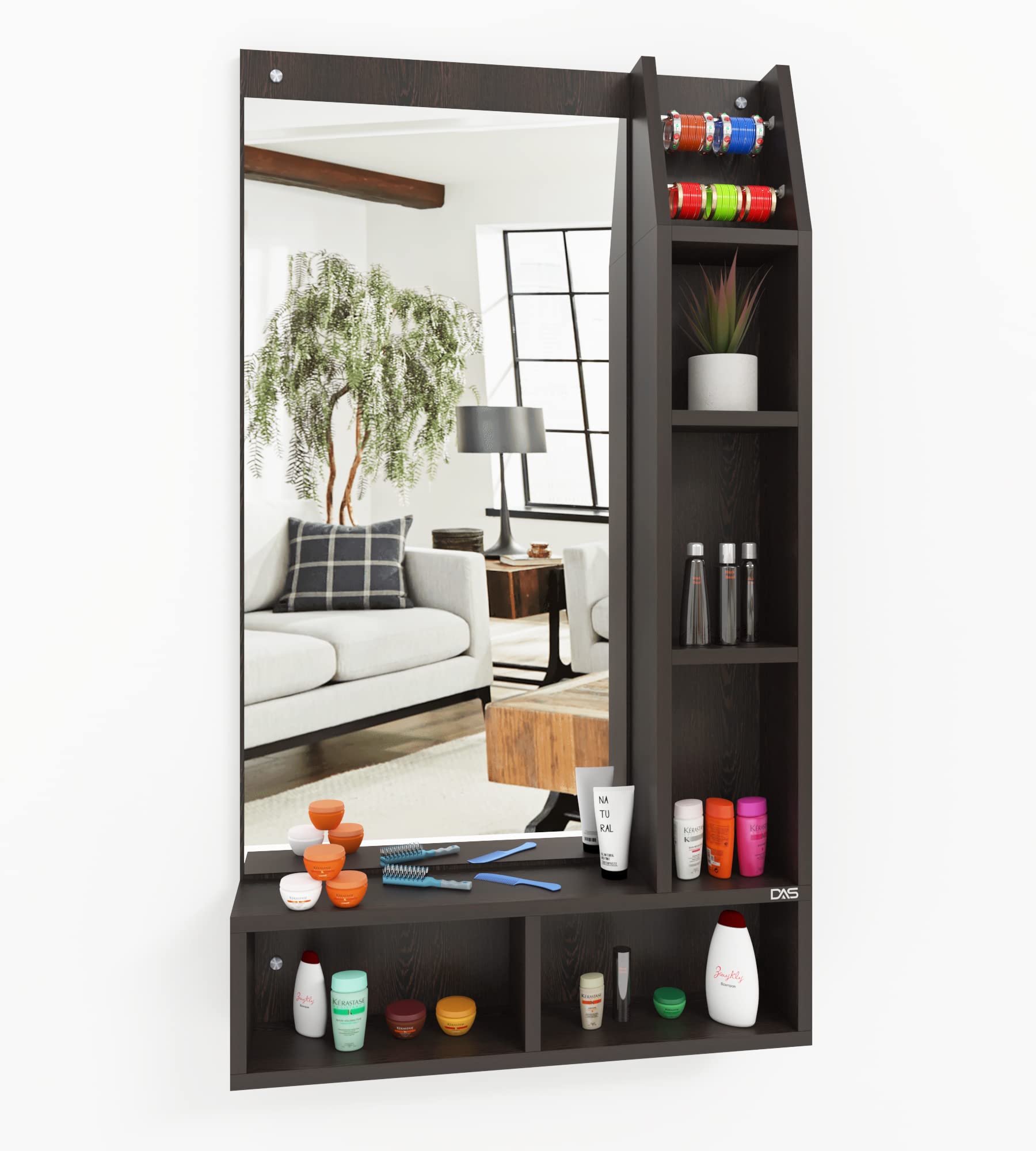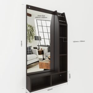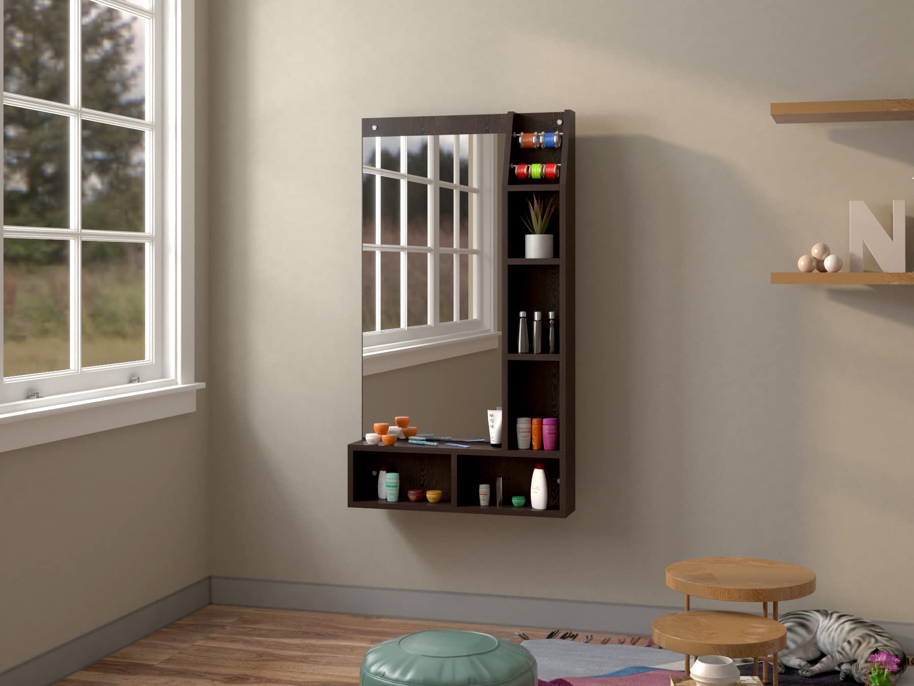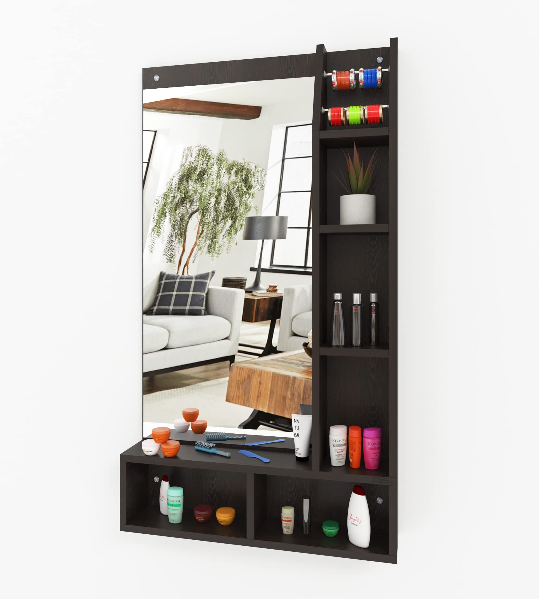 Material- Engineered Wood, Glass and Stainless Steel. Product Dimensions- Wooden Frame- 100 x 60 cm, Mirror- 80 x 39 cm. Weight- 13 kg.