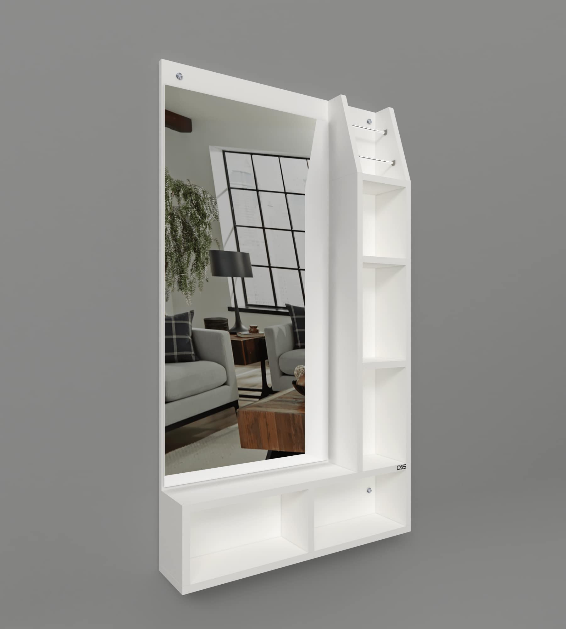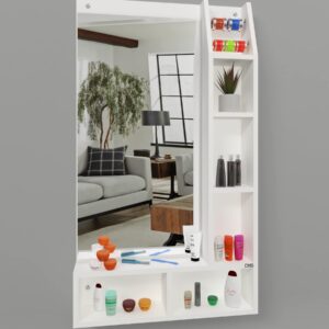 Material- Engineered Wood, Glass and Stainless Steel. Product Dimensions- Wooden Frame- 100 x 60 cm, Mirror- 80 x 39 cm. Weight- 13 kg.