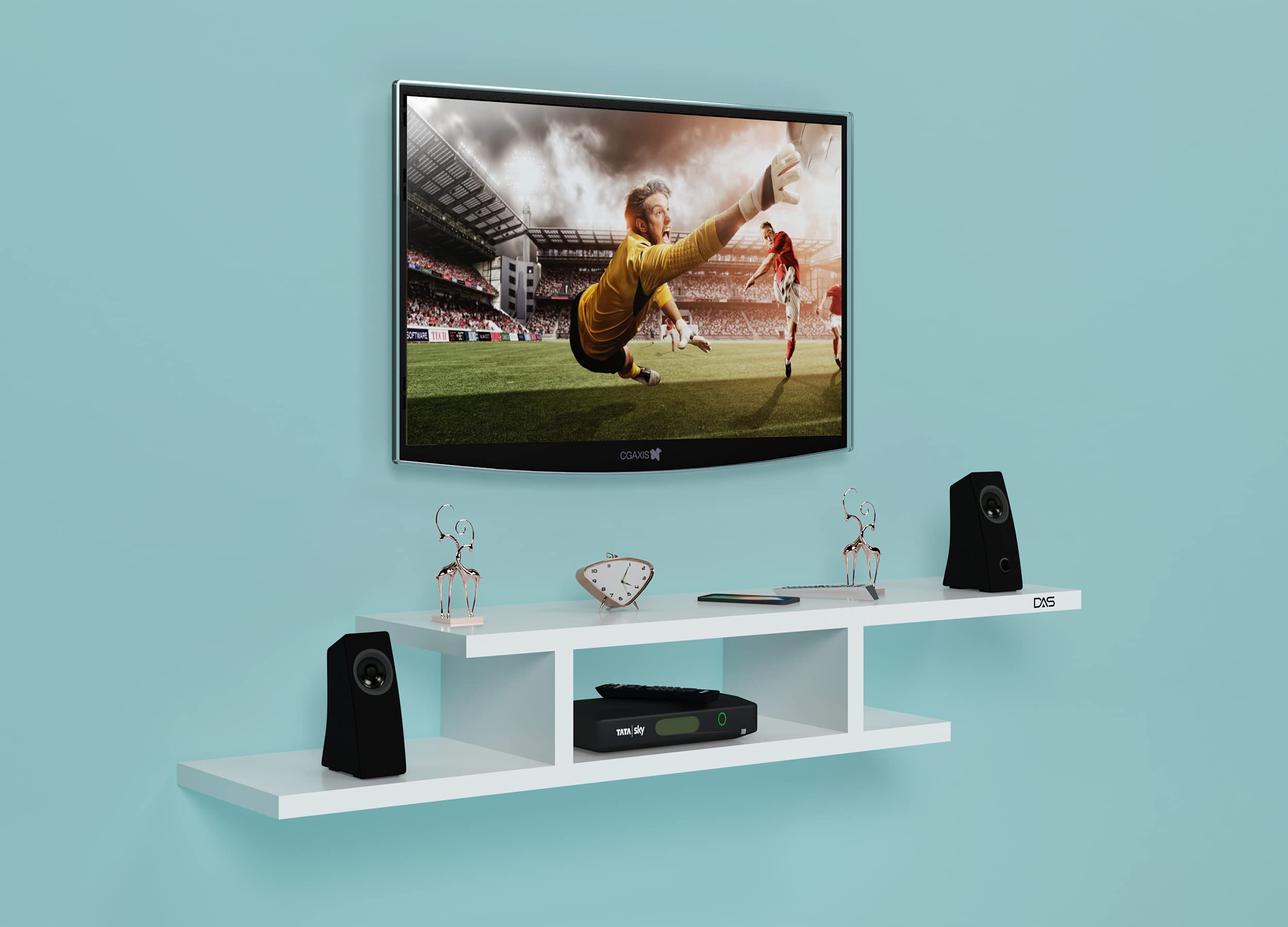 Wall Mount Engineered Wood TV Entertainment Unit is a sleek and modern solution for organizing your media space. Designed for contemporary living rooms, it includes a sturdy TV rack, set-top box stand, and complementary wall shelves that together create a clean and organized display. Crafted from high-quality engineered wood, this unit offers durability and long-lasting performance. The floating design not only saves space but also adds a touch of elegance to your wall. It is perfect for holding your television, remote controls, dΓ©cor items, and entertainment accessories, helping to keep your living area clutter-free and stylish. Ideal for modern homes, it blends functionality with visual appeal.