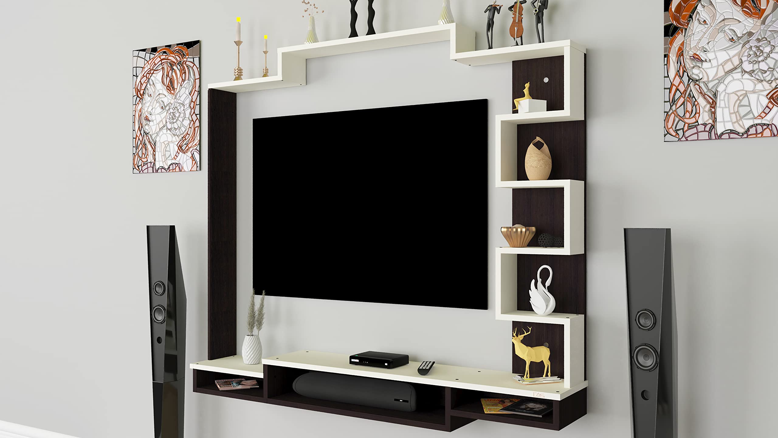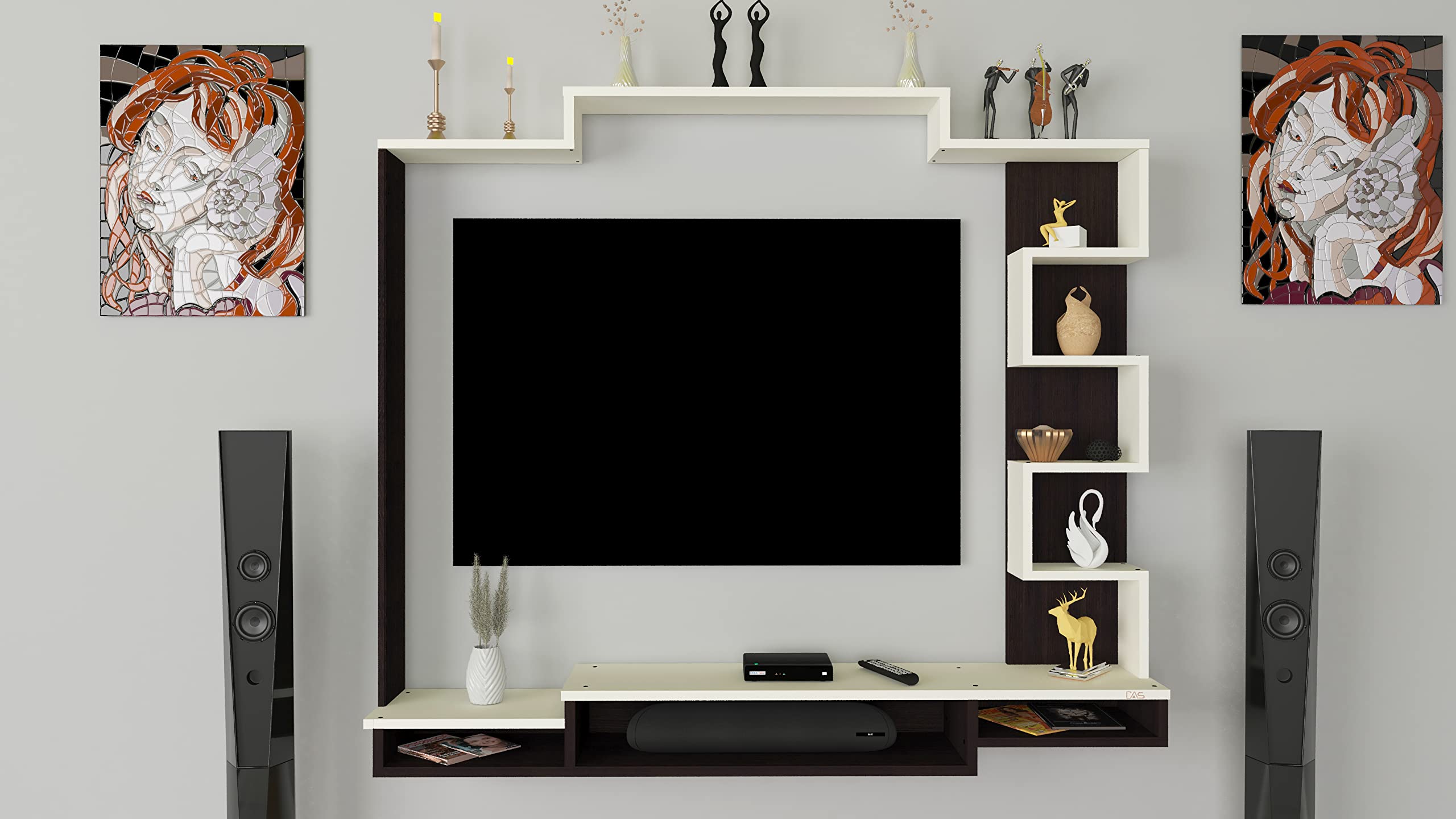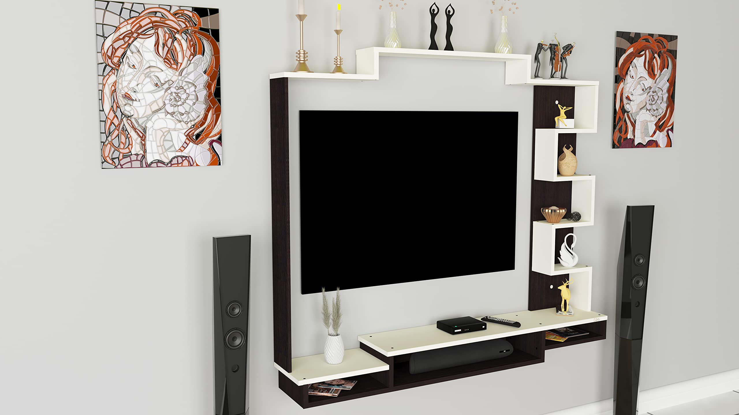 David High Strength & Durable Wall Mount Engineered Wood TV Entertainment Unit Stand Set Top Box Stand for Living Room Flowery Wenge & White Large (Ideal for up to 50″) Screen