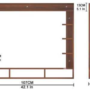 Material- Pre-laminated particle baord. Weight Capacity- 25 KG. Cable Management. Product Dimension- TV Cabinet- 107 x 20 x 15 CM, Wall Shelf- 15 x 12 CM, Shelf supporting Unit- 70 x 13.5 CM, Pop Out Shelf- 107 x 12 cm Weight- 15 KG