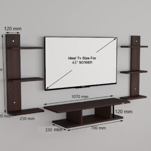 Dexter Pro Max Wall Mount TV Entertainment Unit/with Set Top Box Stand with Wall Shelf Display Rack for Living Room Black & Flowery Wenge (Ideal for up to 43″) Screen