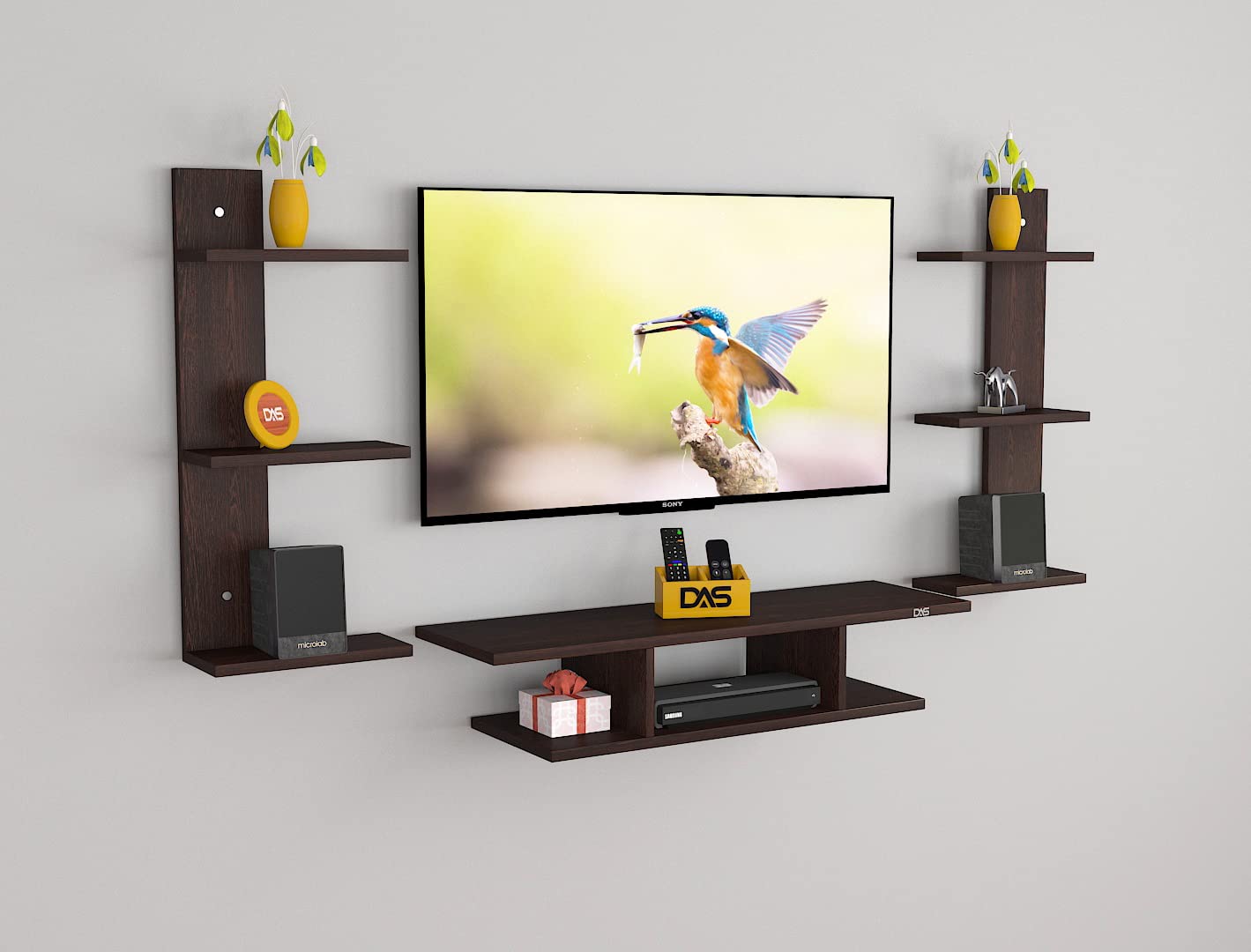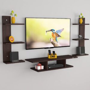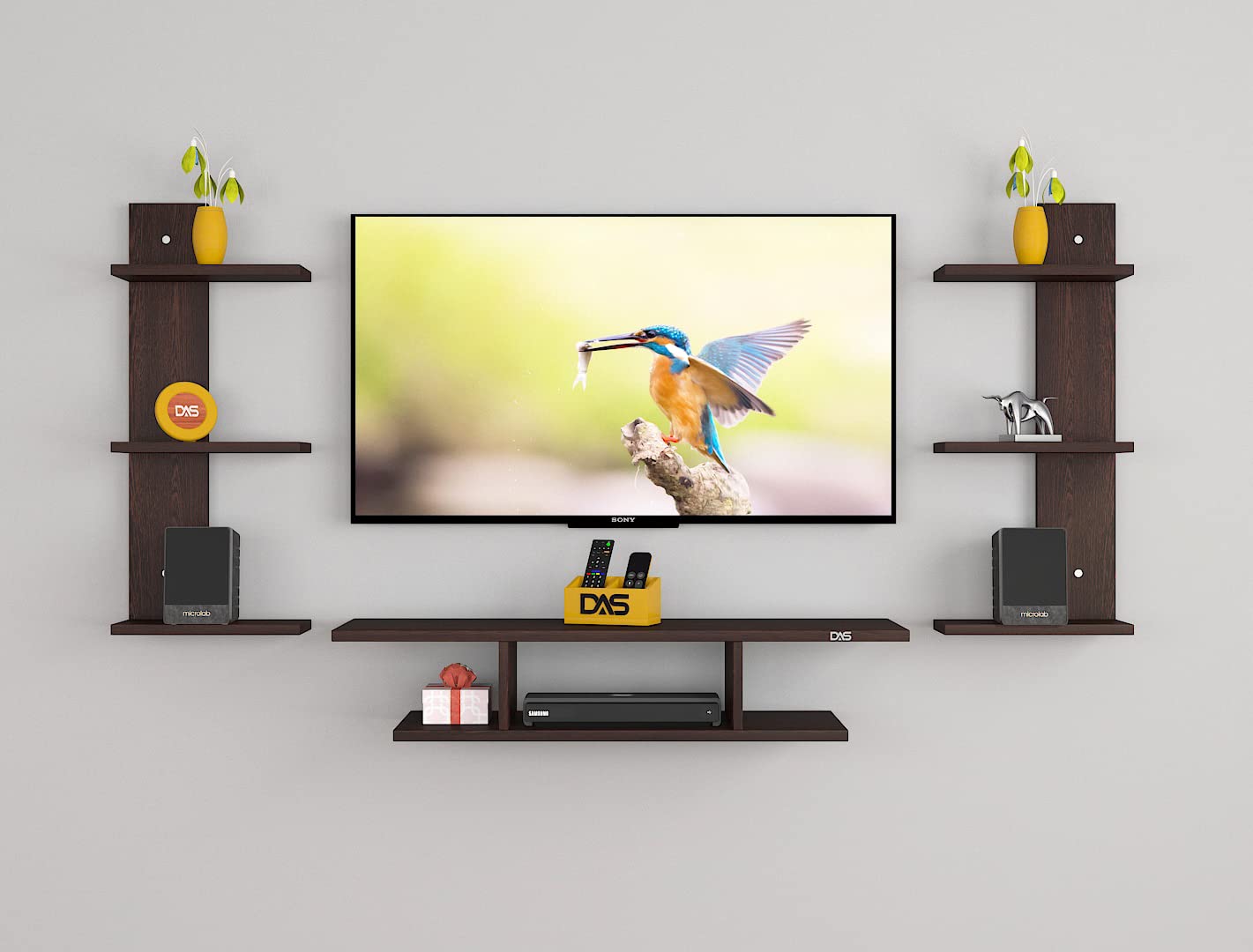 Dexter Pro Wall Mount TV Entertainment Unit/with Set Top Box Stand with Wall Shelf Display Rack for Living Room Flowery Wenge (Ideal for up to 32″) Screen
