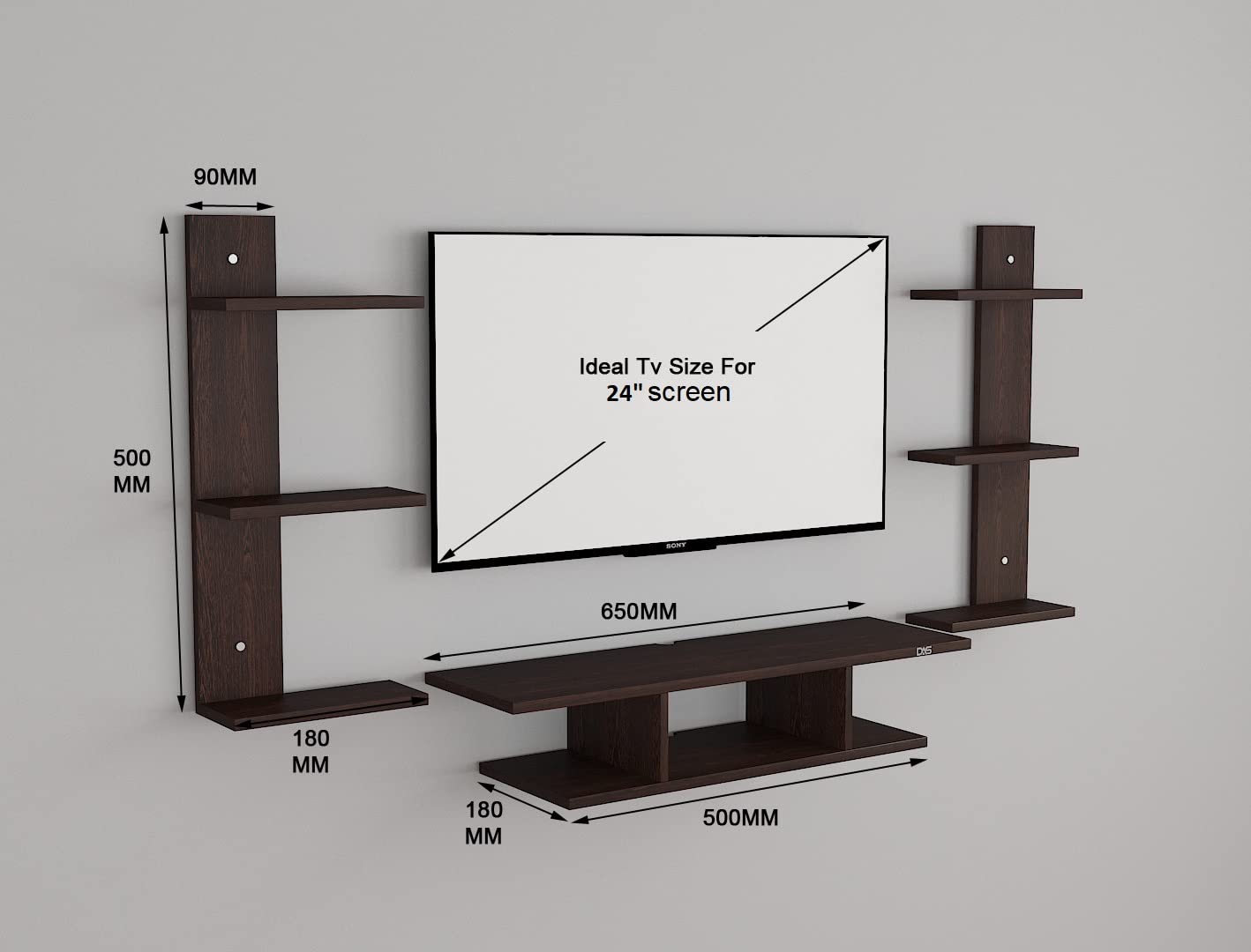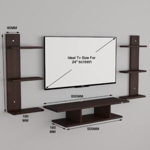 Dexter Wall Mount TV Entertainment Unit/with Set Top Box Stand with Wall Shelf Display Rack for Living Room Flowery Wenge (Ideal for up to 24″) Screen (Engineered Wood)