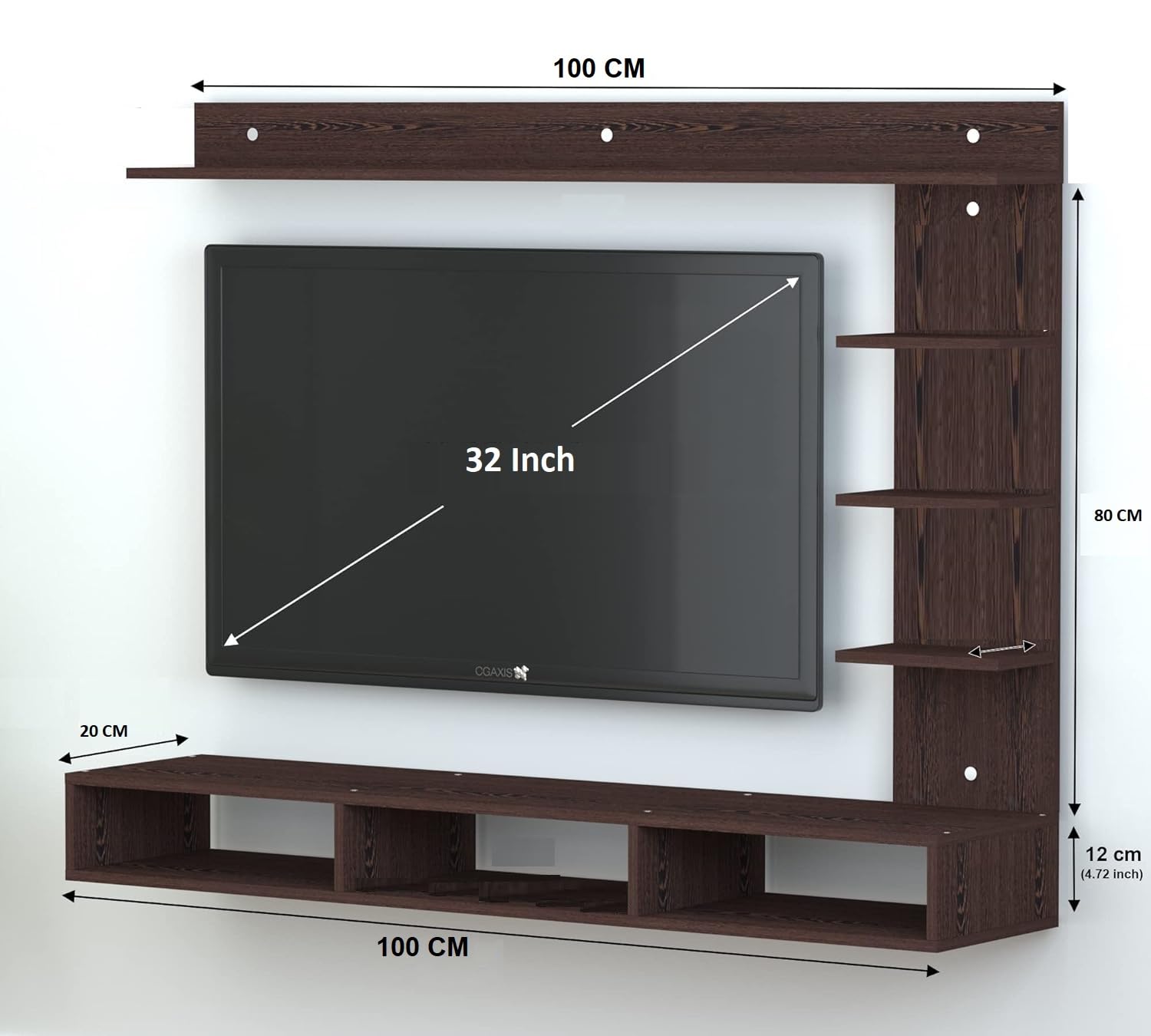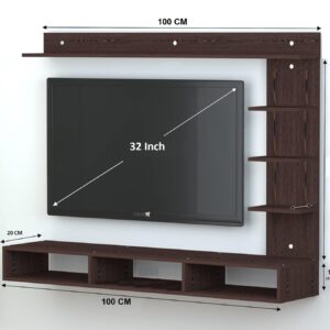 Engineered Wood AB-WG-32 Wall Mount TV Entertainment Unit Set Top Box Stand With Shelves For Living Room In Flowery Wenge Finish- Ideal For Up To 32″ Screen