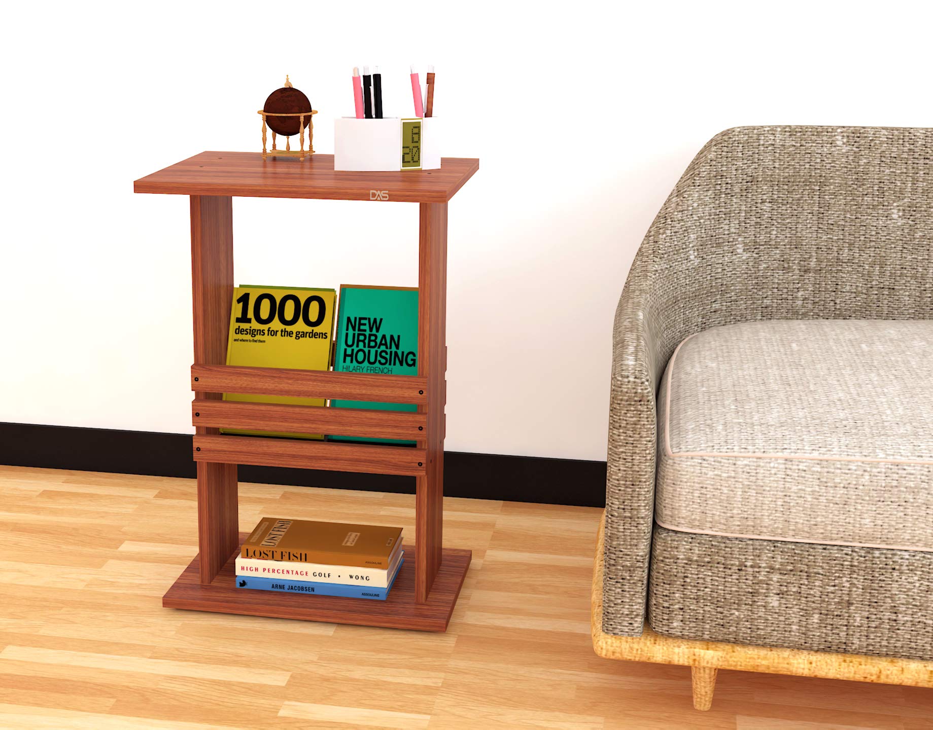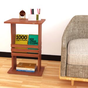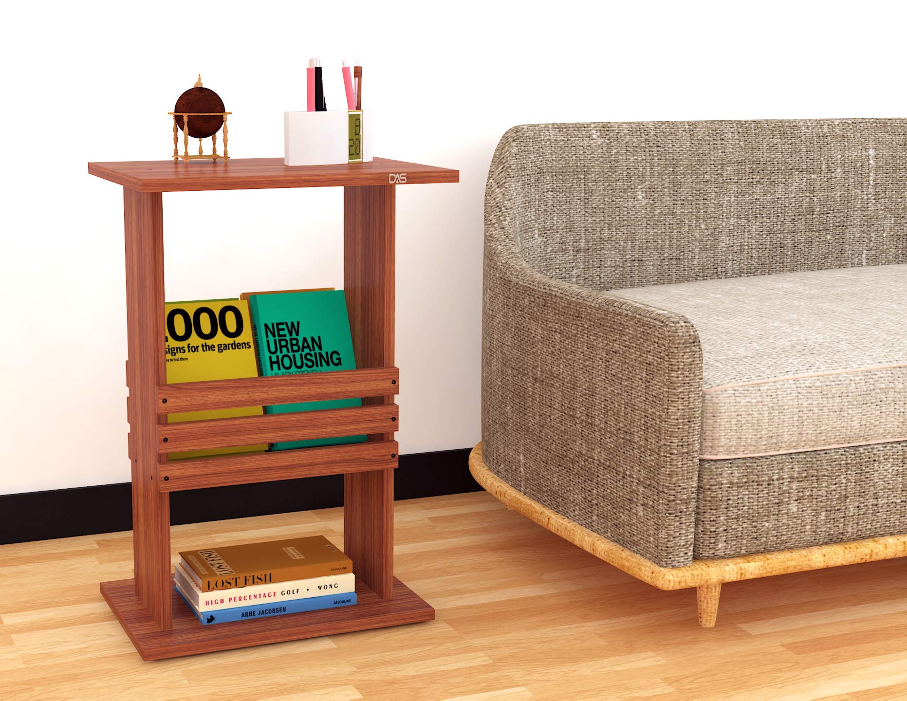 Engineered Wood Side/End Table with Magazine Rack/Stand for Living Room Classic Walnut- Leonardo