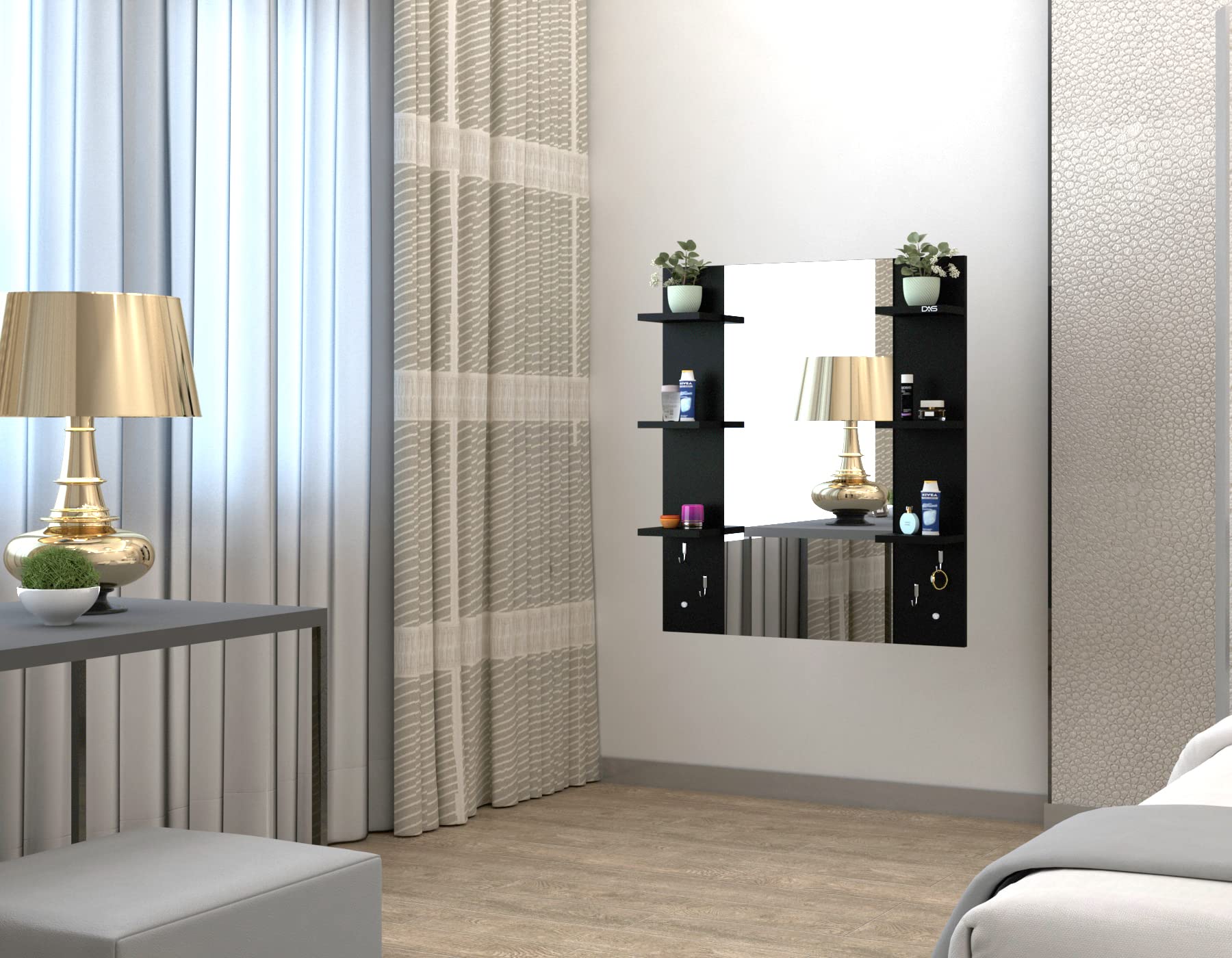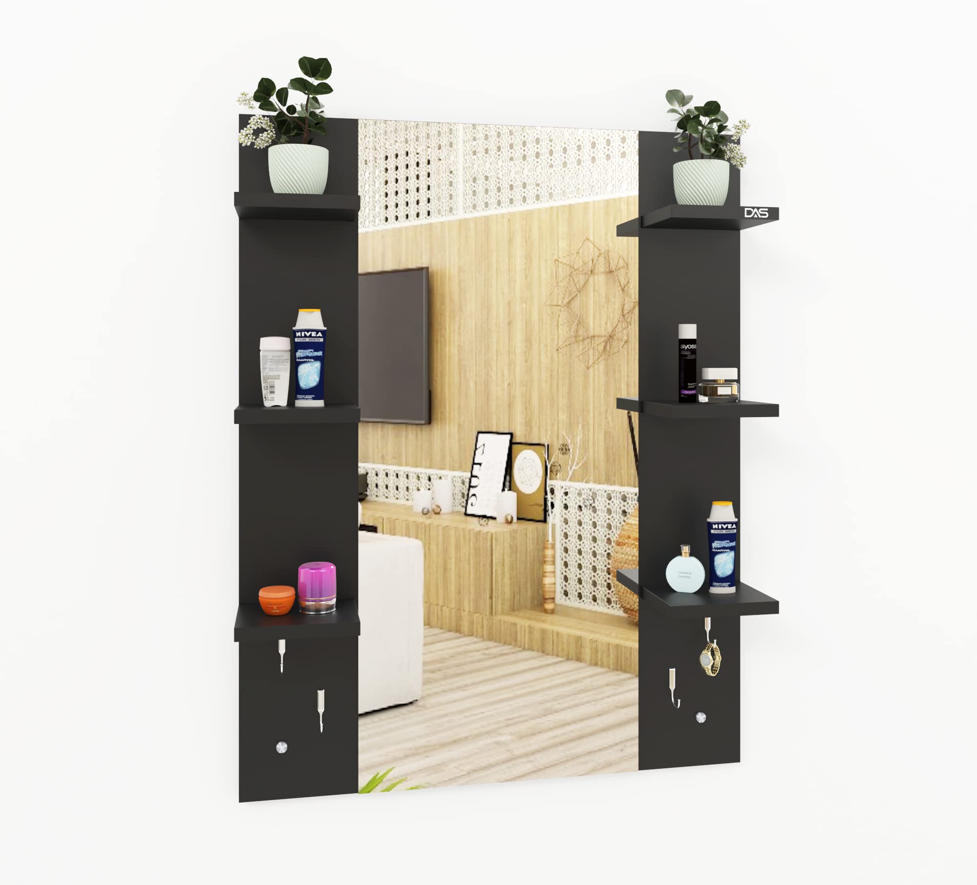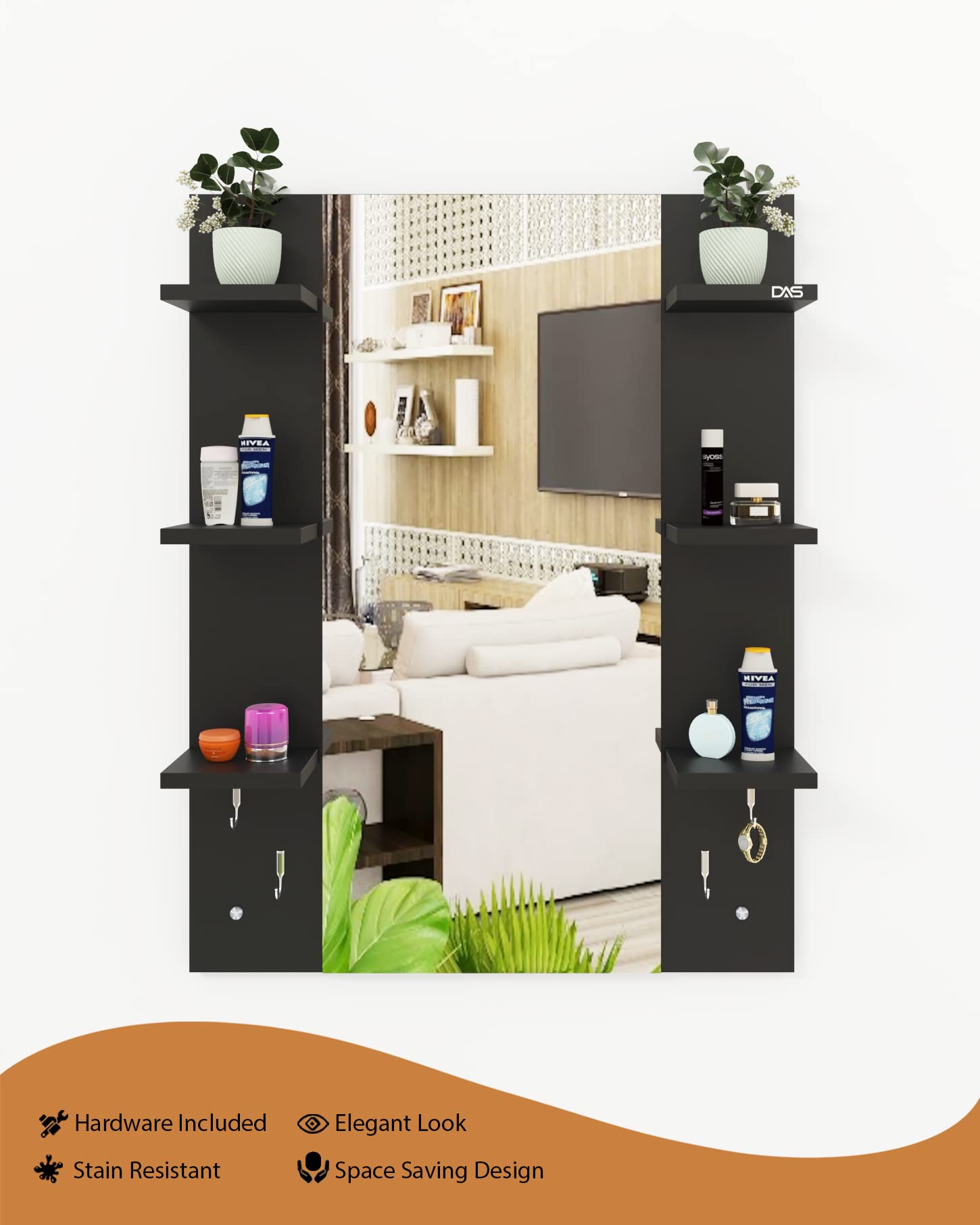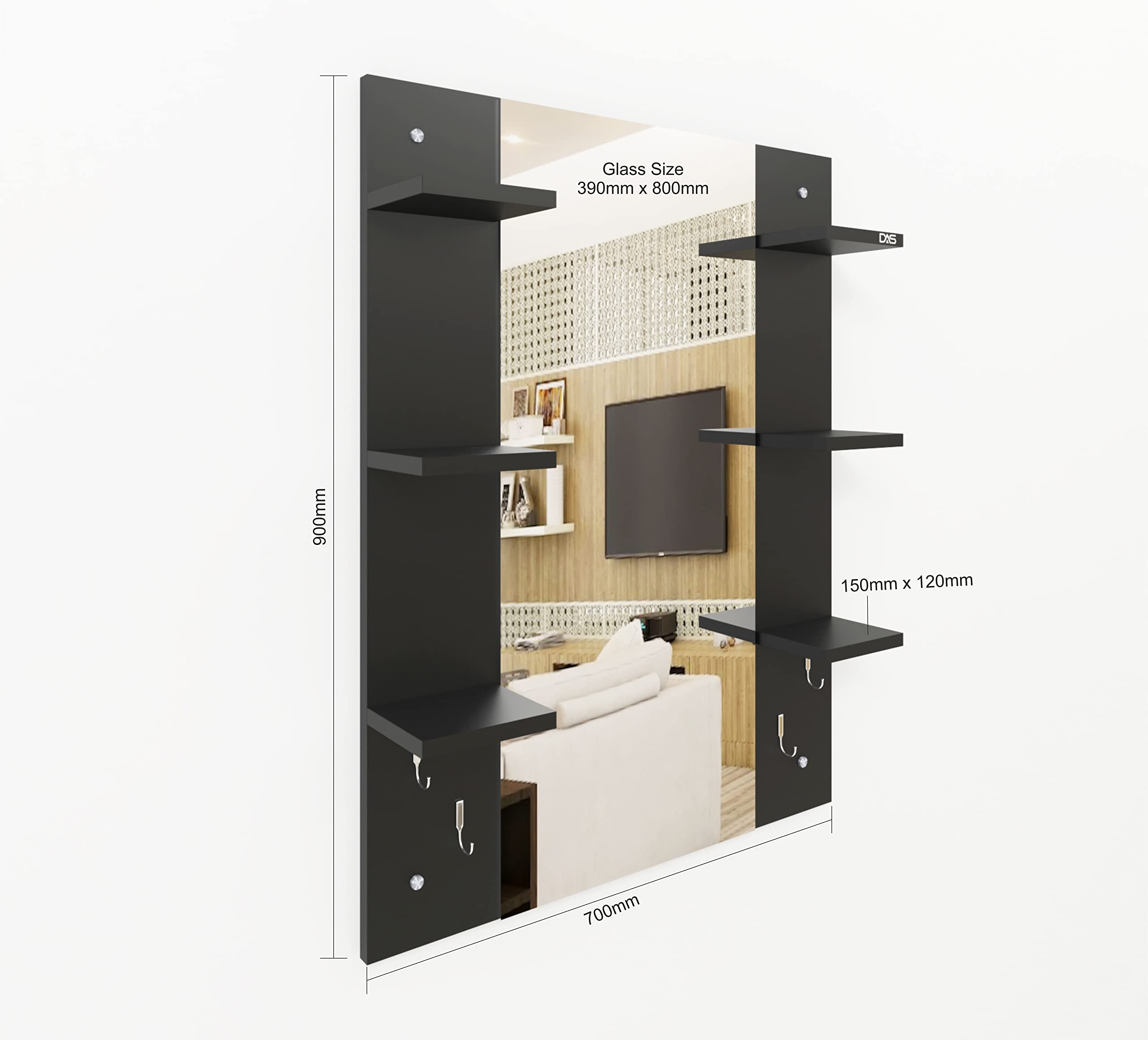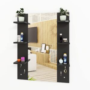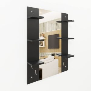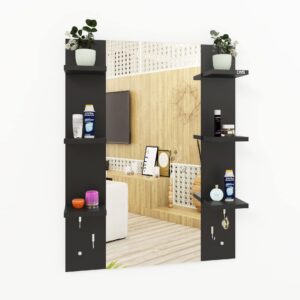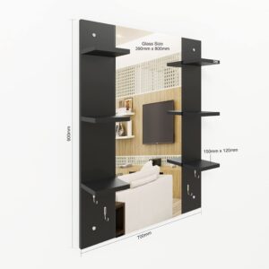 Material- Engineered Wood, Glass and Stainless Steel. Product Dimensions- Wooden Frame- 90 x 70 cm, Mirror- 89.5 x 39 cm. Weight- 13.5 kg.