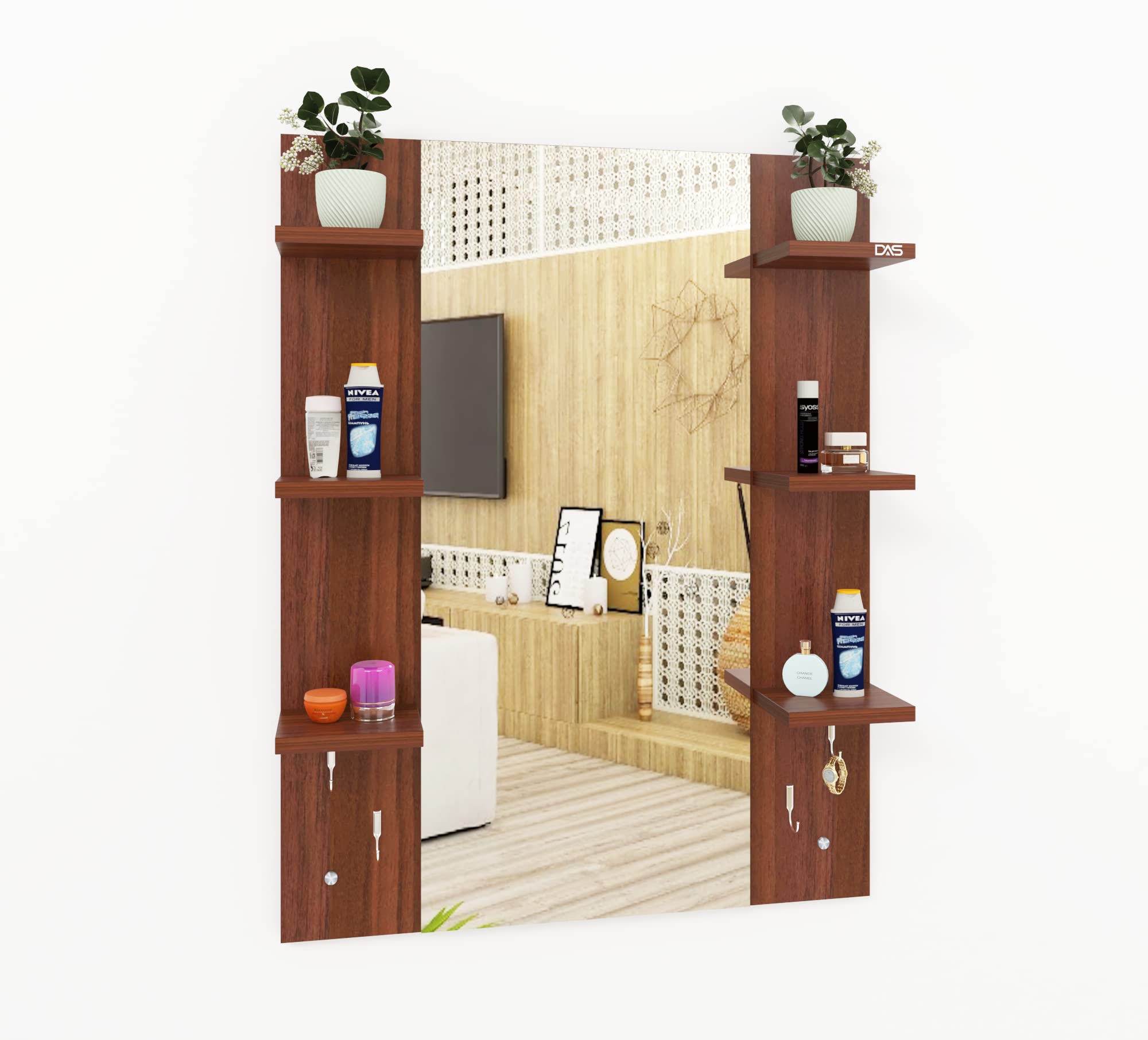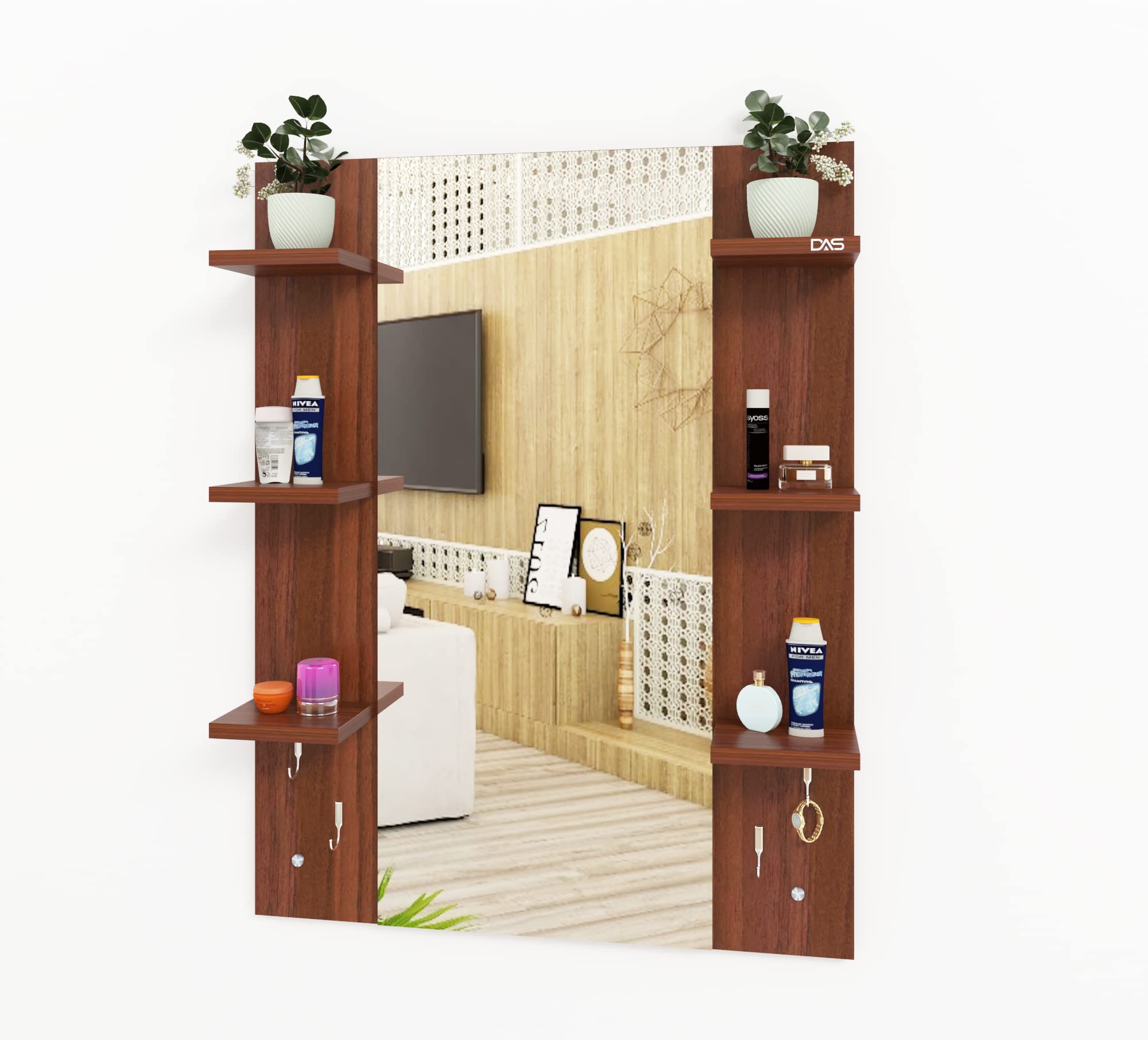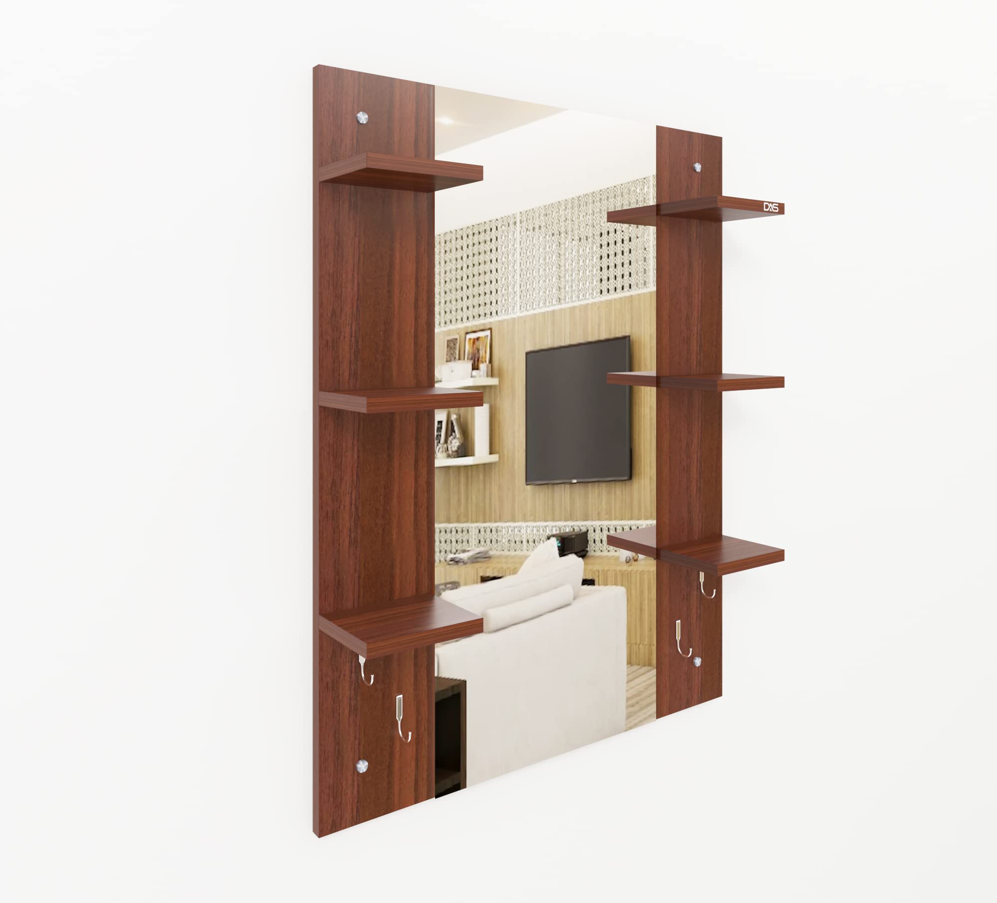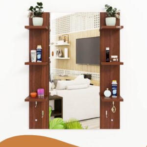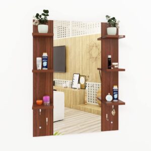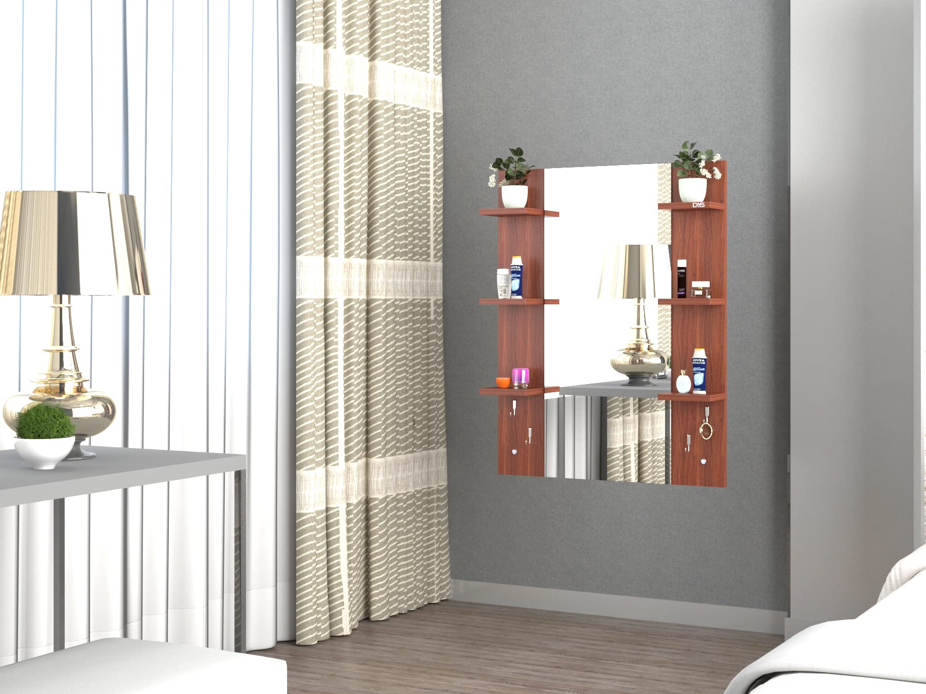 Material- Engineered Wood, Glass and Stainless Steel. Product Dimensions- Wooden Frame- 90 x 70 cm, Mirror- 89.5 x 39 cm. Weight- 13.5 kg.