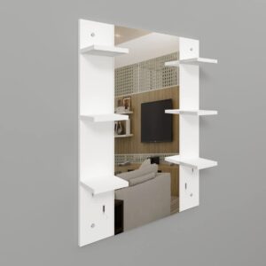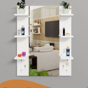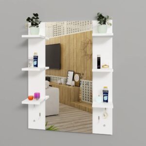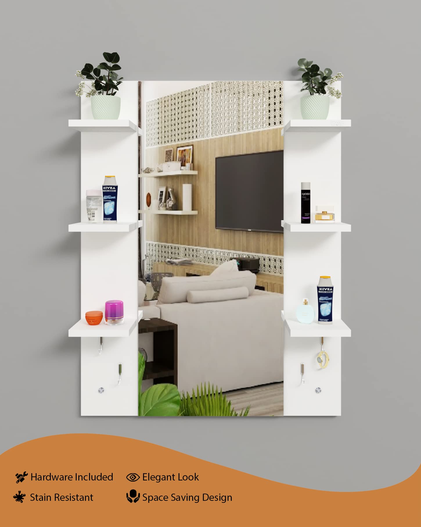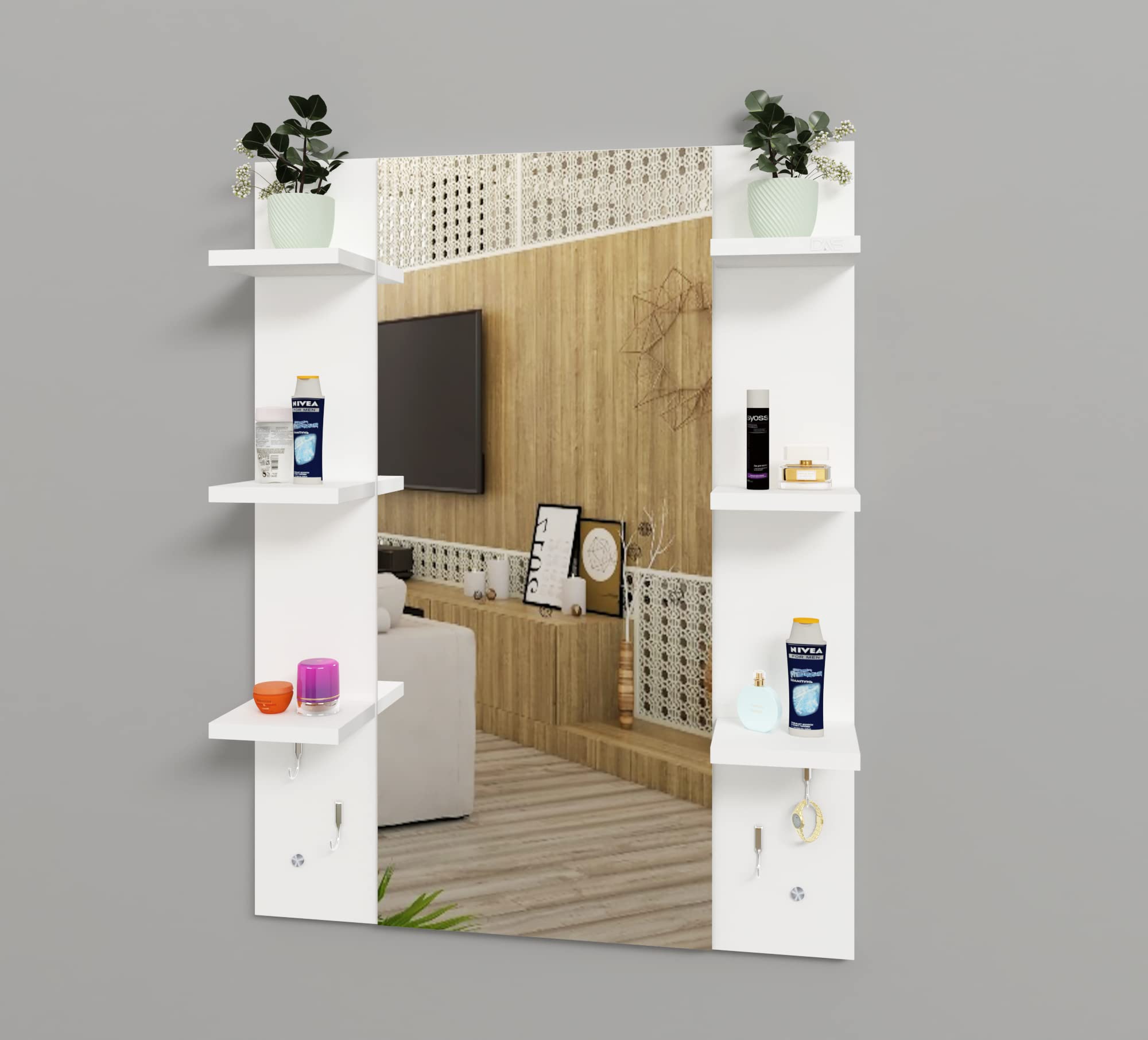 Estefanía Engineered Wood Wall Mount Dressing Table Vanity Mirror with Storage Shelves – Frosty White