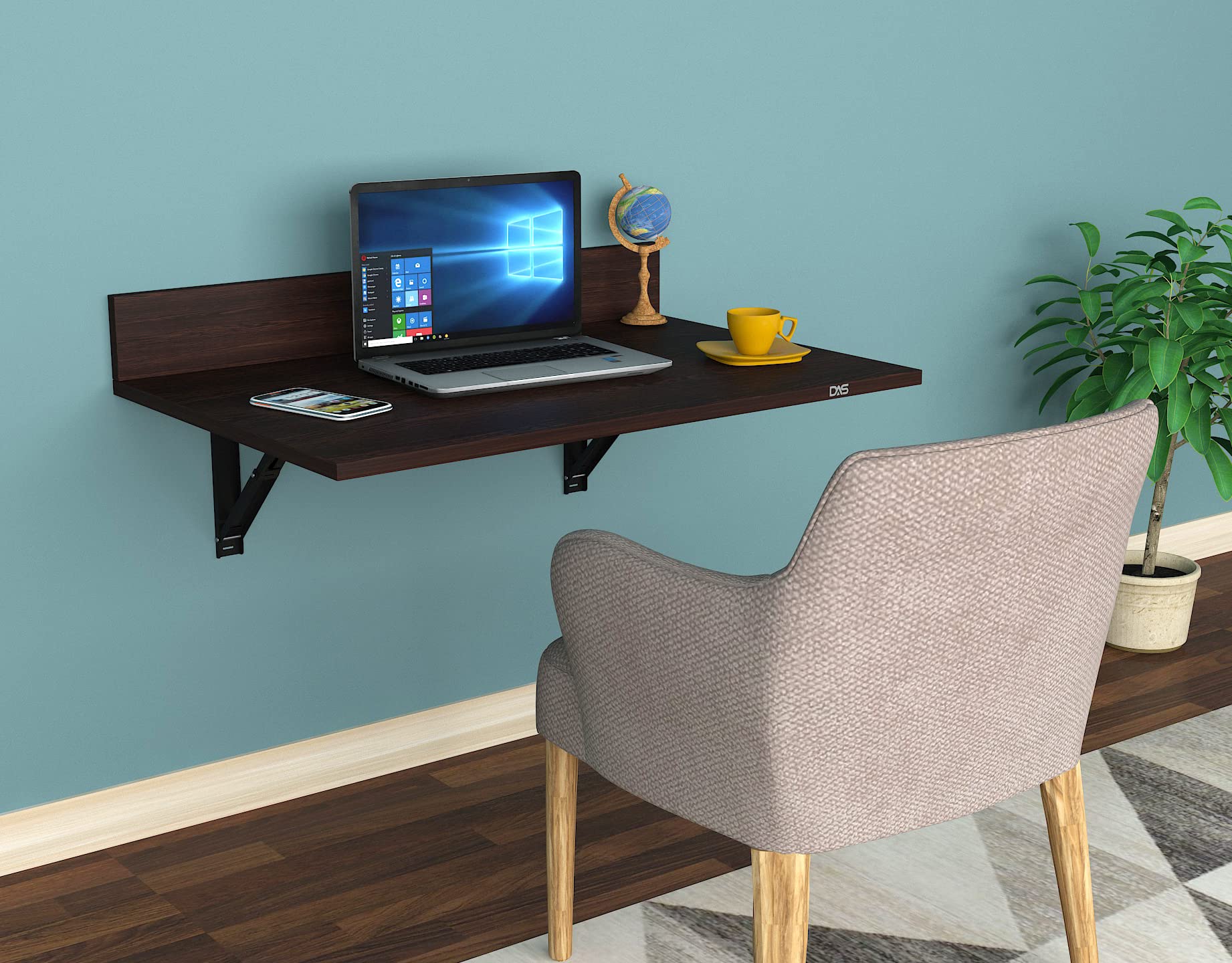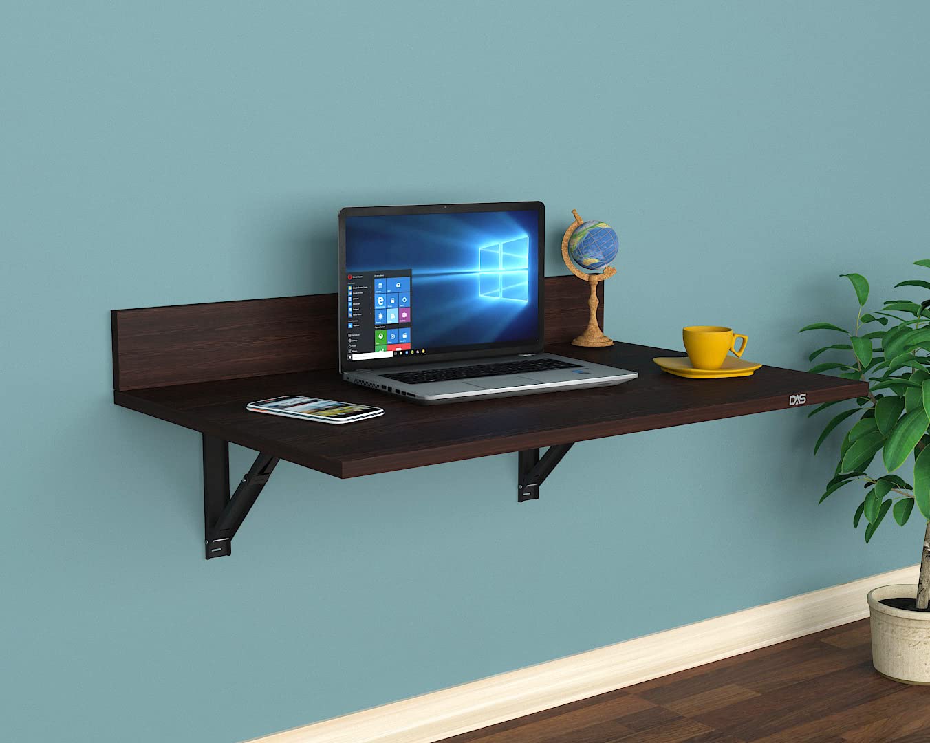 Felip Wall Mount Engineered Wood Study Laptop Table, Table Desk/Table with Book Shelf for Living Room, Bedroom (Flowery Wenge)