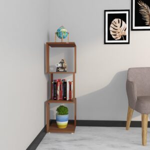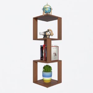 Floor Standing 4 Shelves/Tier Wall Corner Shelf/Display Rack for Home Decor Living Room and Office Walls Classic Walnut – Romana