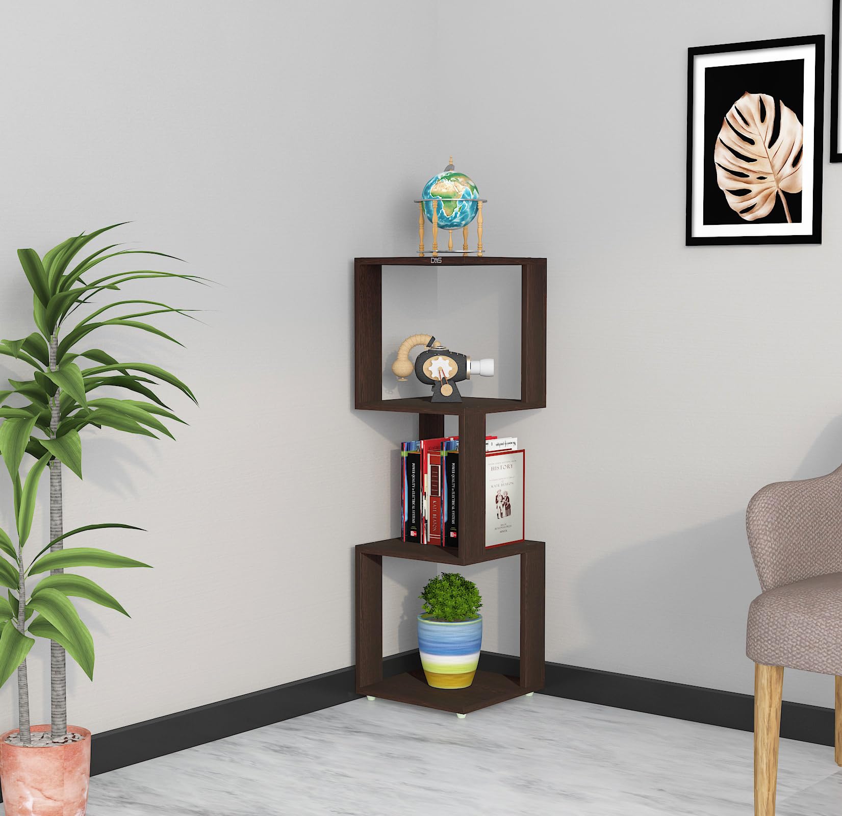 Floor Standing 4 Shelves | Tier Wall Corner Shelf | Engineered Wood Display Rack for Home Decor Living Room Wenge – Romana