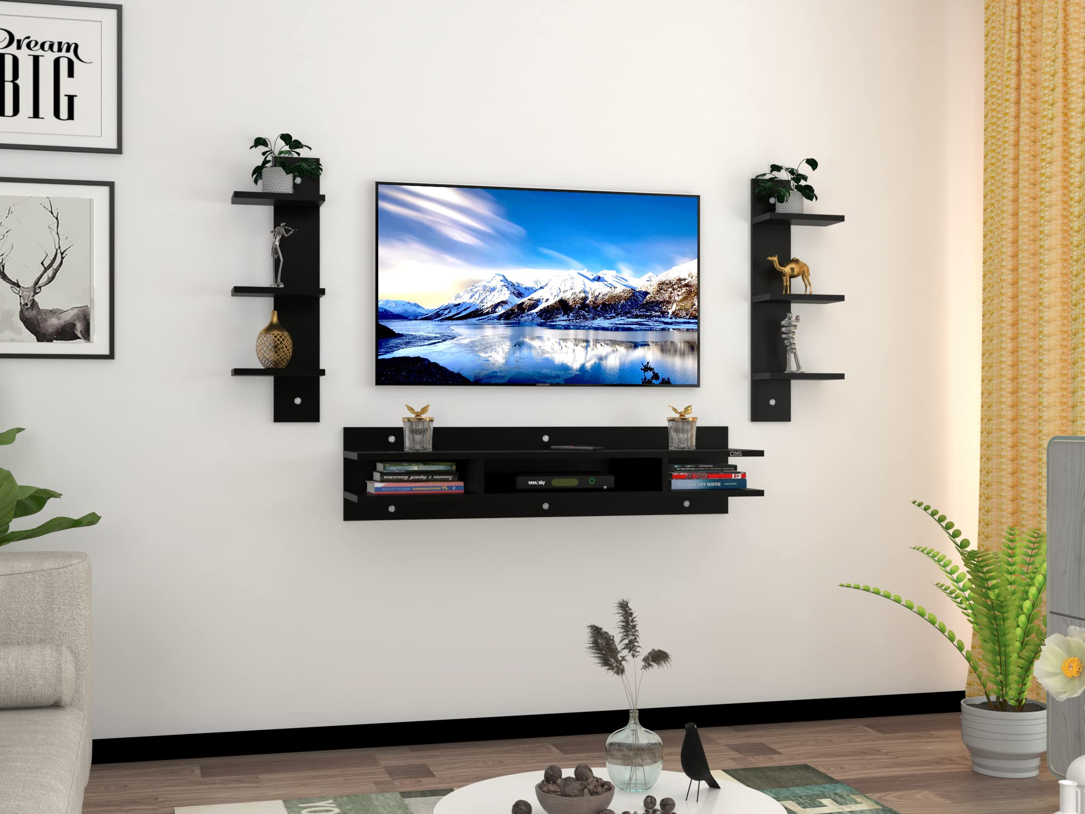 Material- Engineered Wood, Color- Black, Dimension- Length- 110 cm, Breadth- 25 cm, Height- 105 cm, Weight- 16 kg.