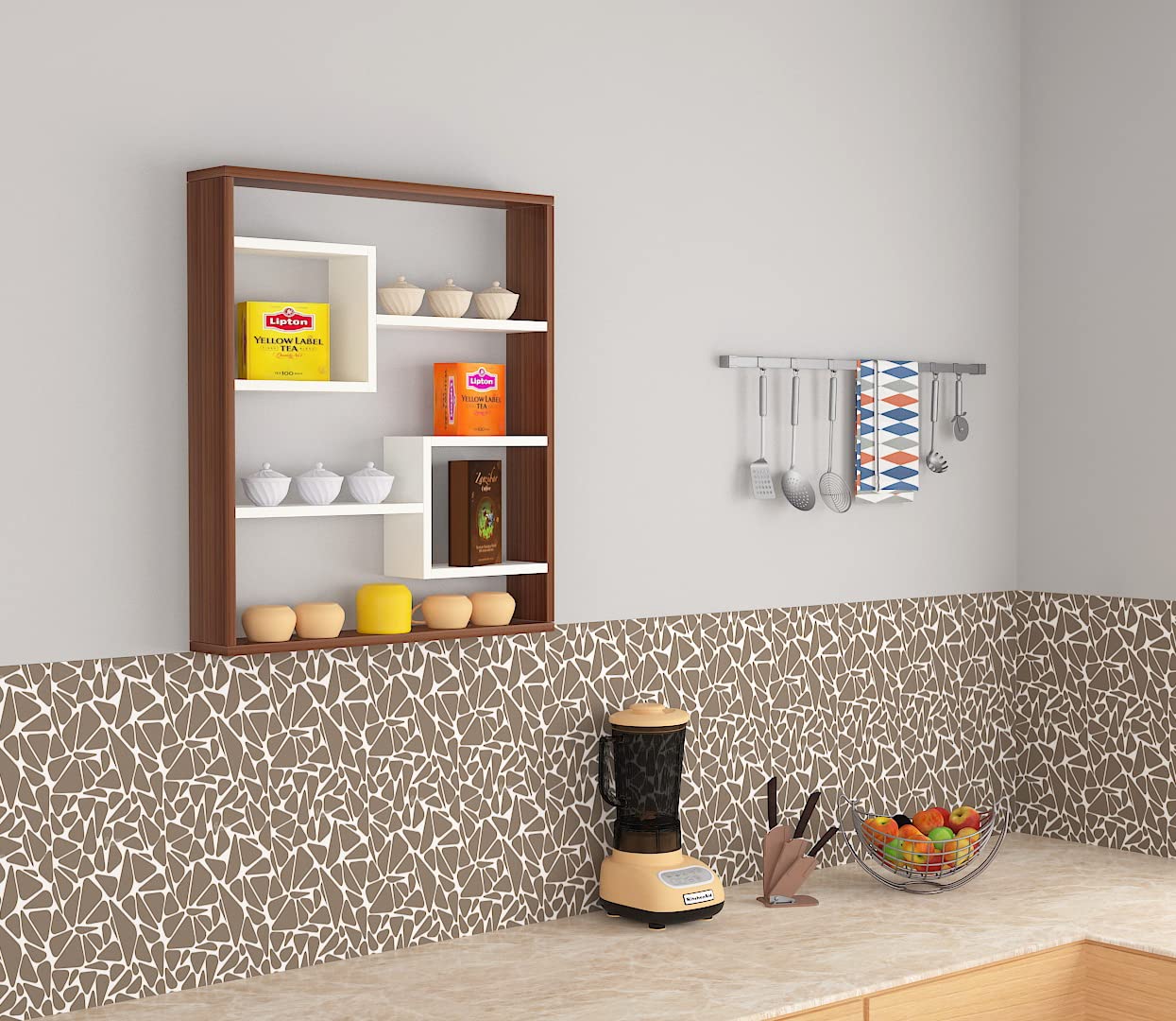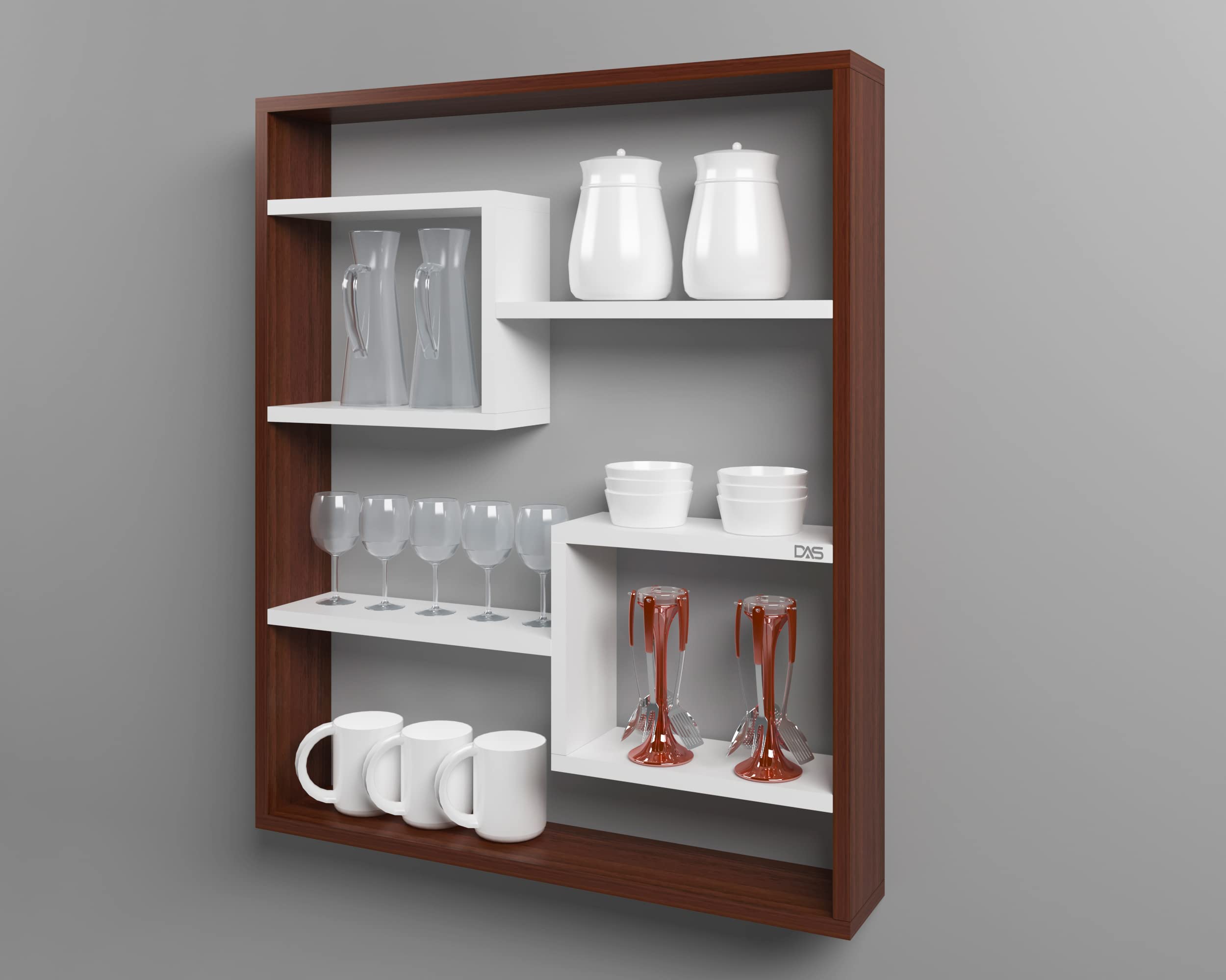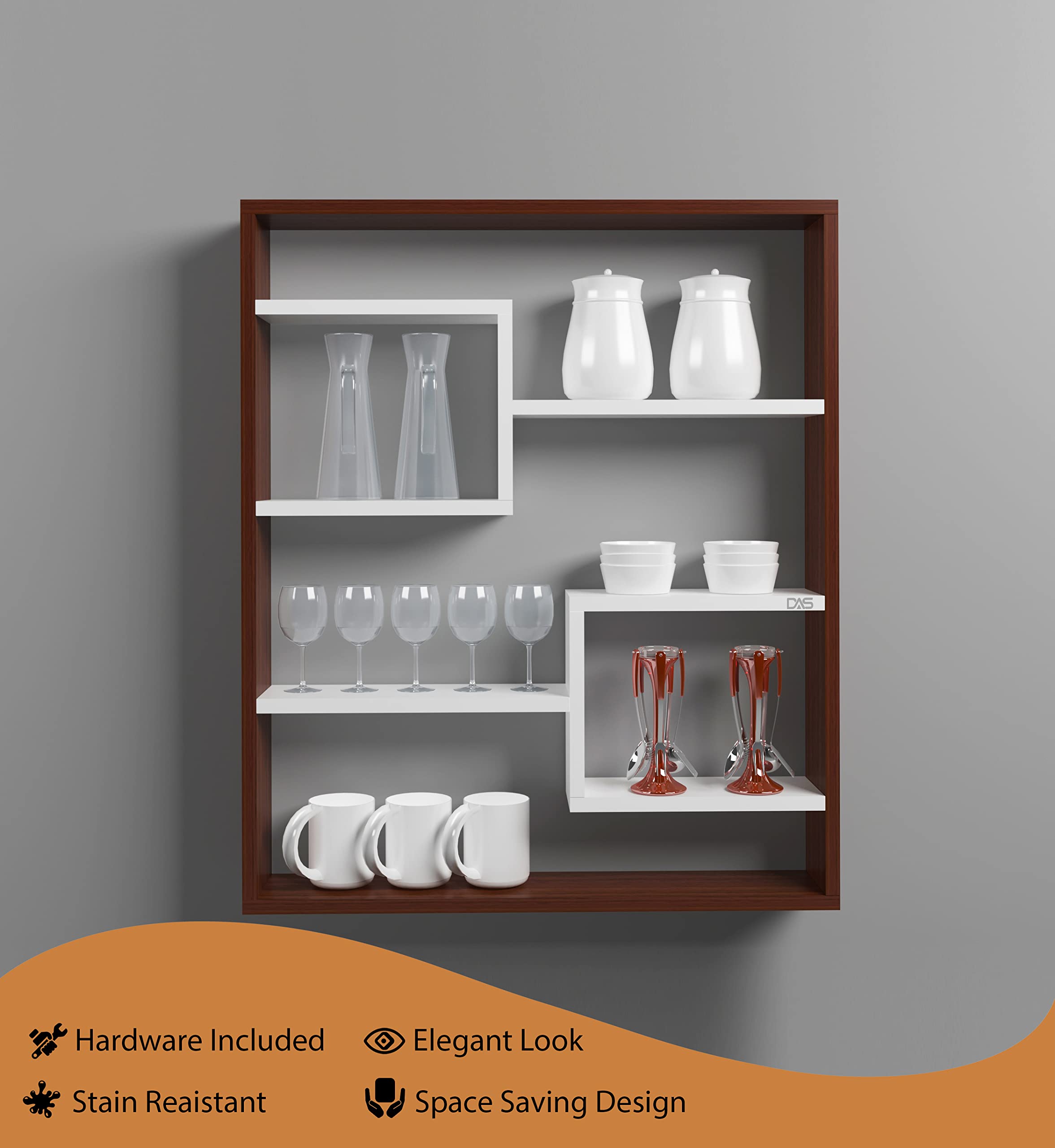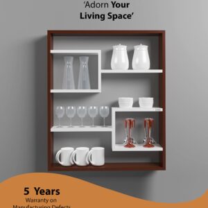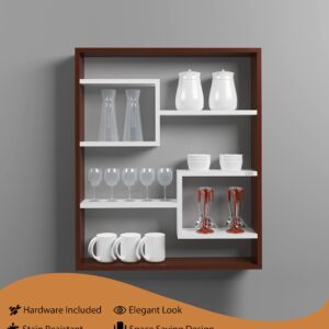 Gracye Engineered Wood Wall Mount Kitchen Spice Shelves Rack Storage Organizer- Classic Walnut & Frosty White