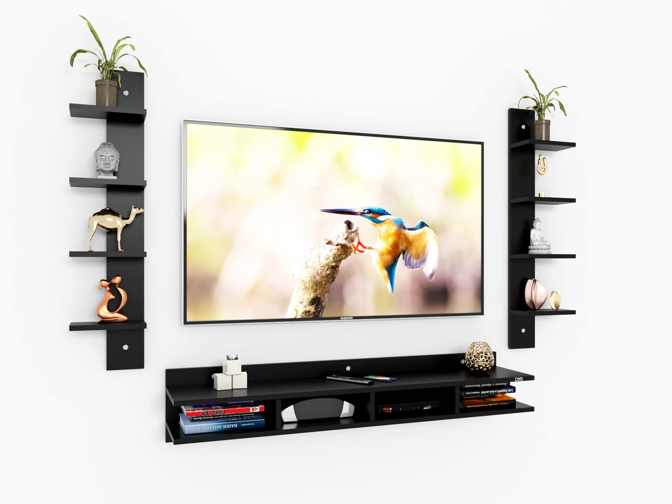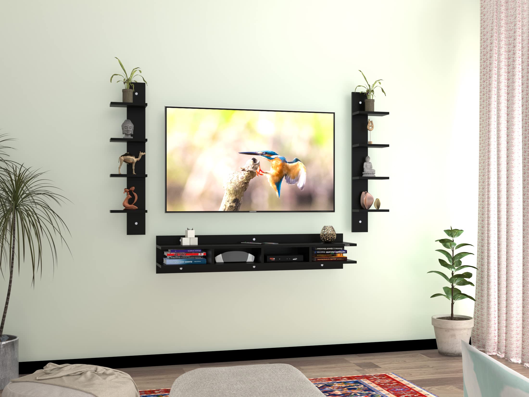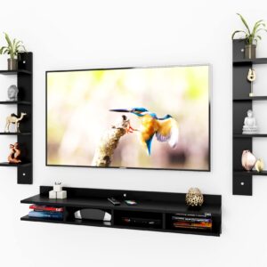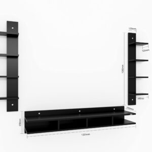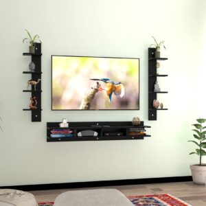 Harald Engineered Wood Wall Mount TV & Entertainment Unit Stand with Wall Shelves Black Finish- Ideal for Up to 55″ Screen