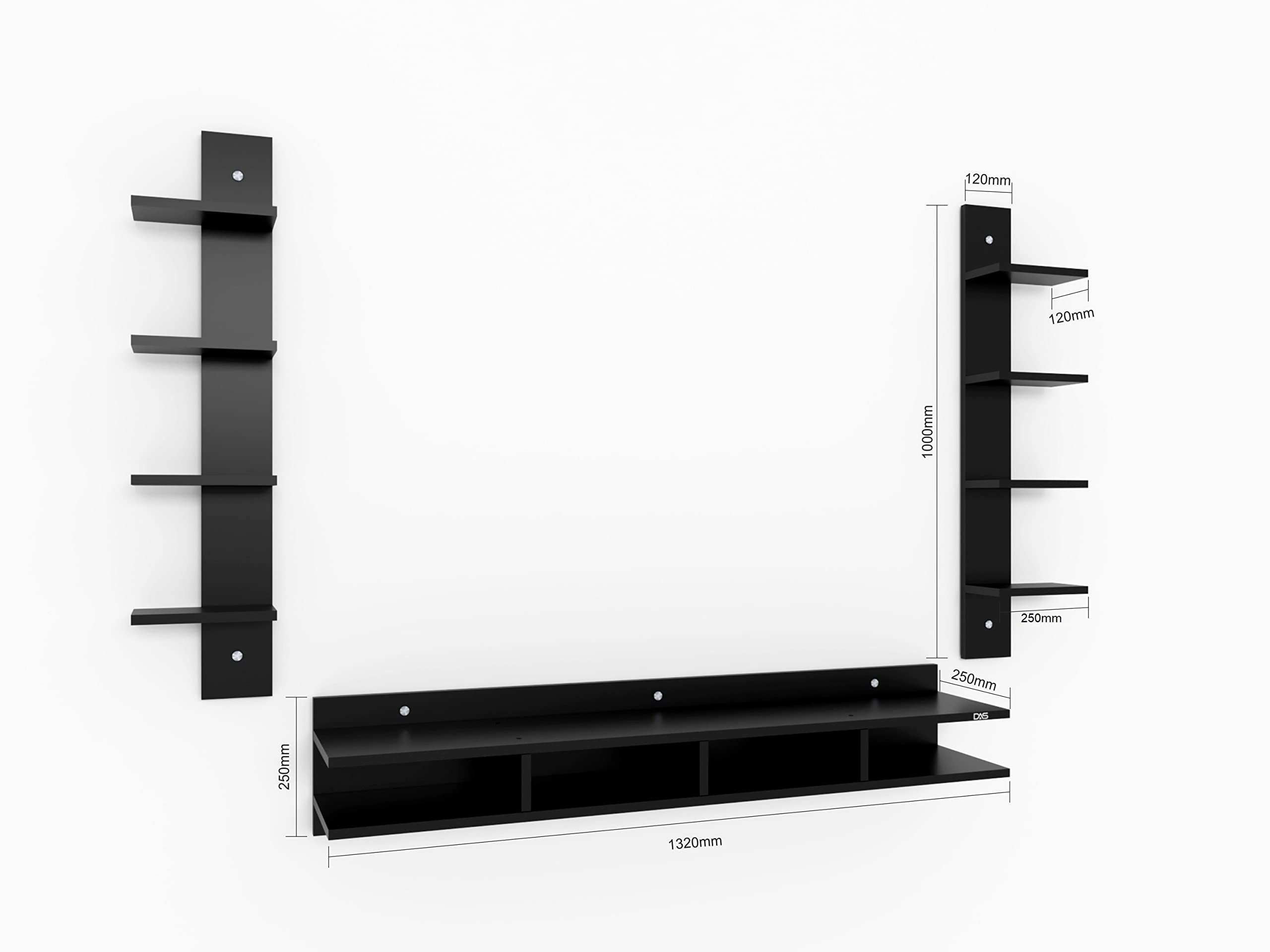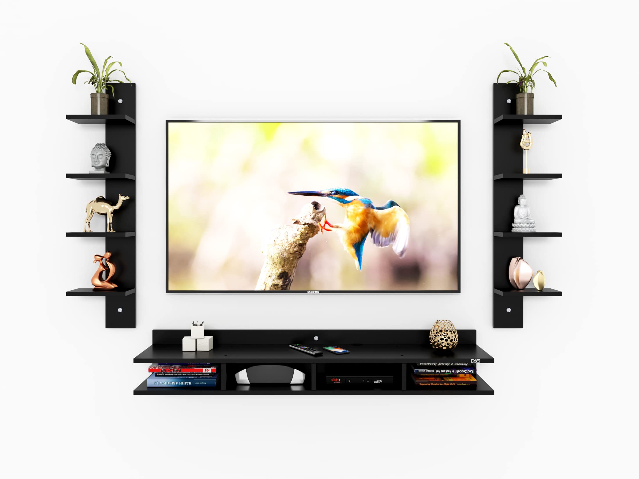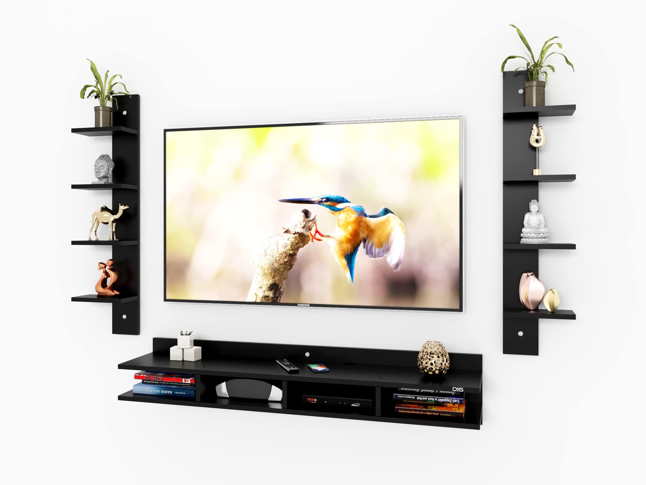 Harald Engineered Wood Wall Mount TV & Entertainment Unit Stand with Wall Shelves Black Finish- Ideal for Up to 55″ Screen