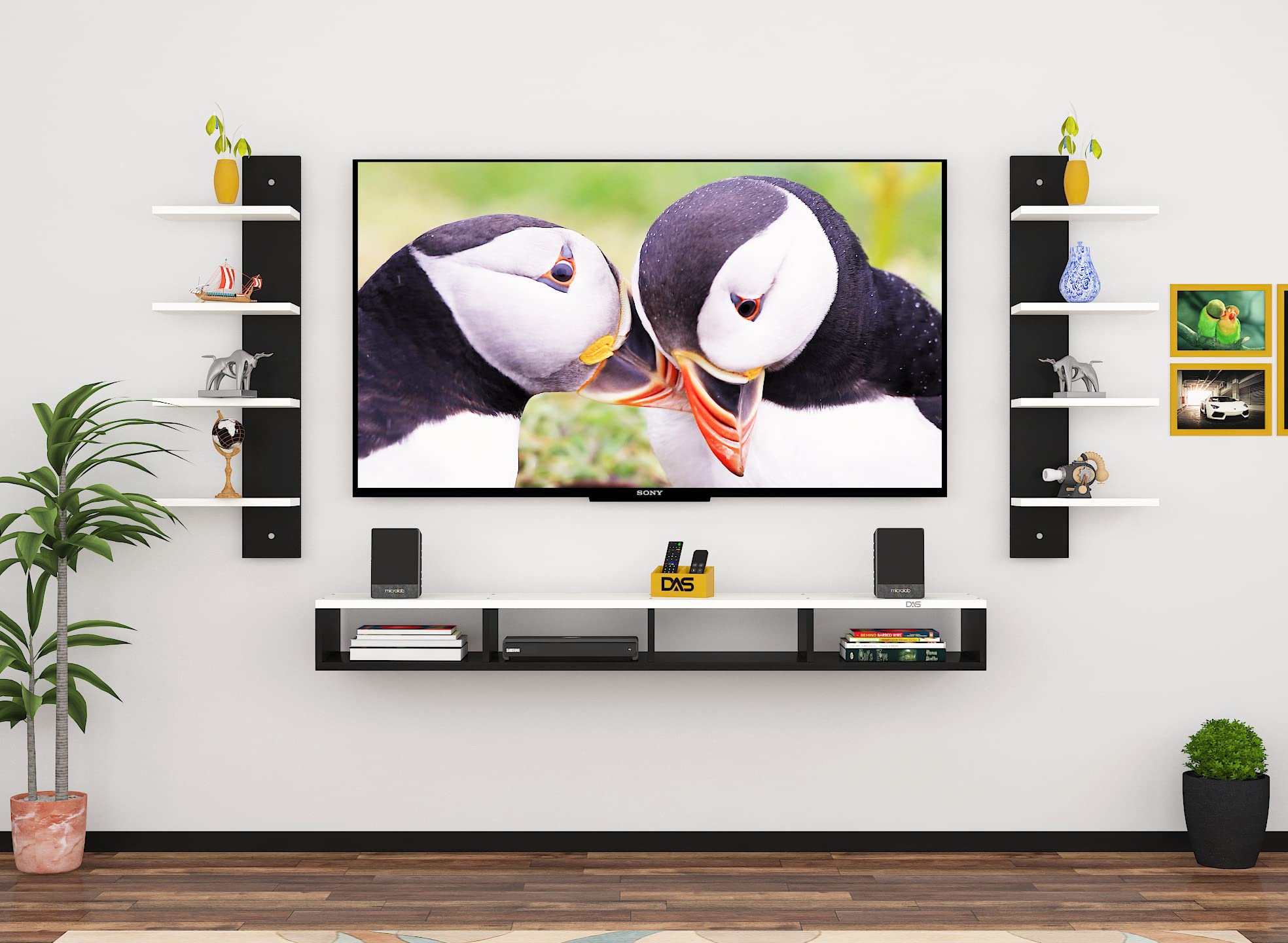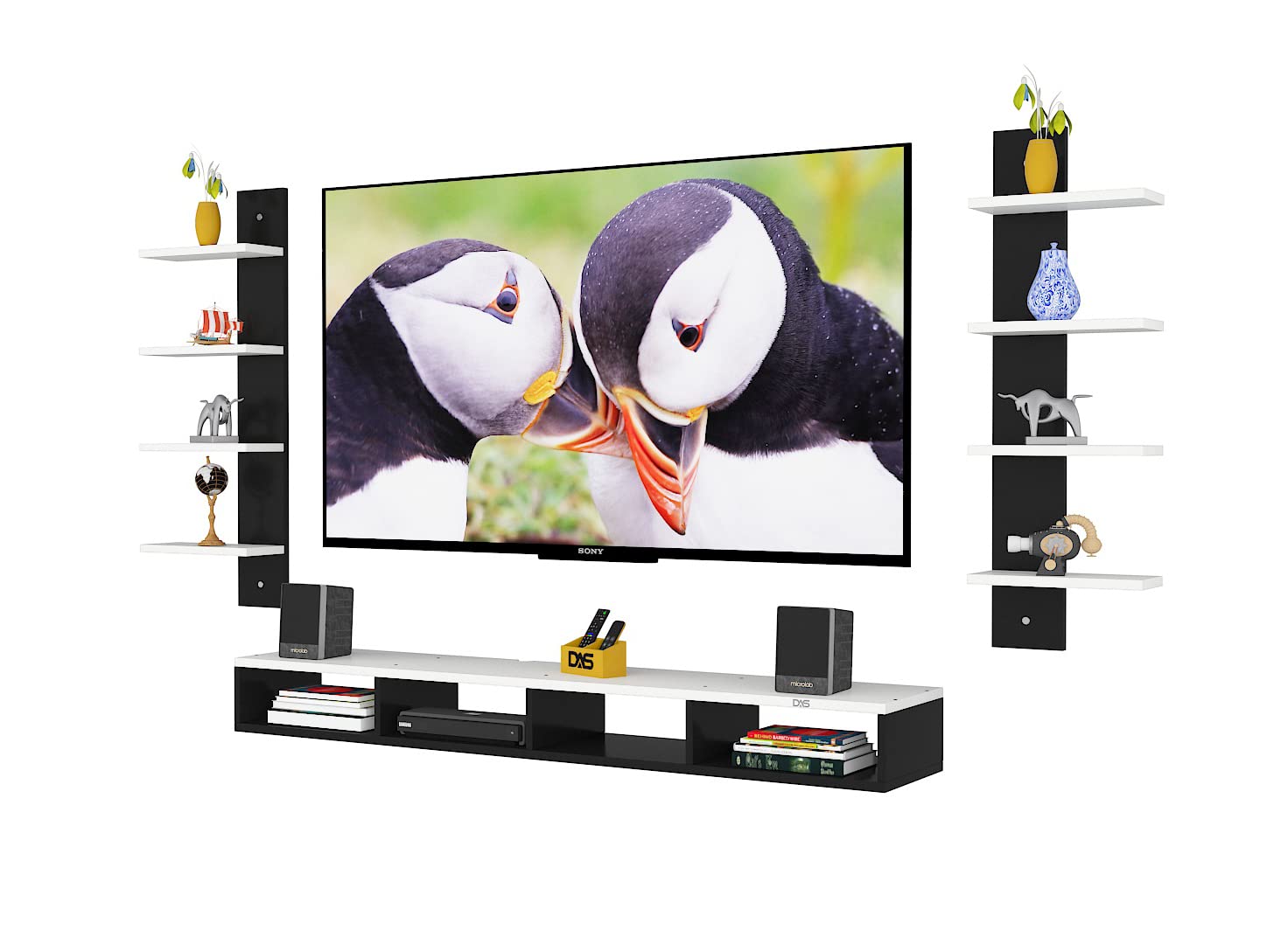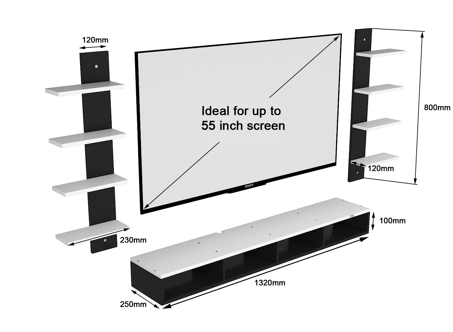 Harries TV Entertainment Unit Stand Set TOP Box Stand with Shelves and Display Rack Black & Frosty White Large- Ideal for UP to 55 INCH Screen