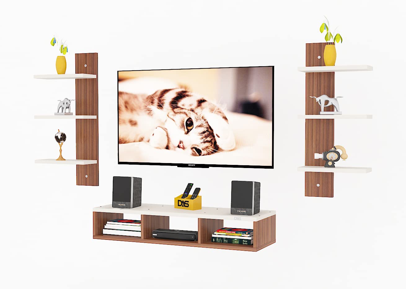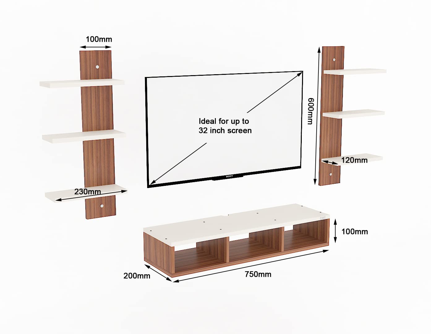 Color : Classic Walnut-Frosty White Size : Ideal for Upto 32″ TV