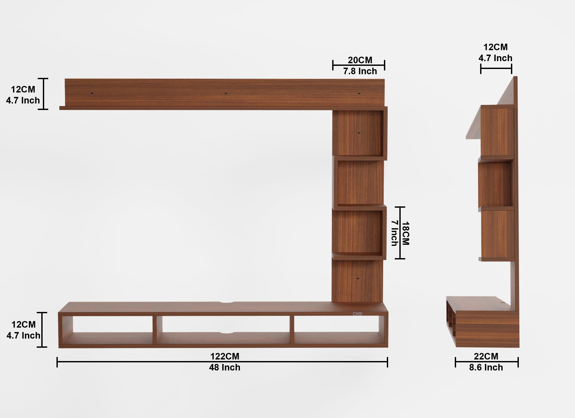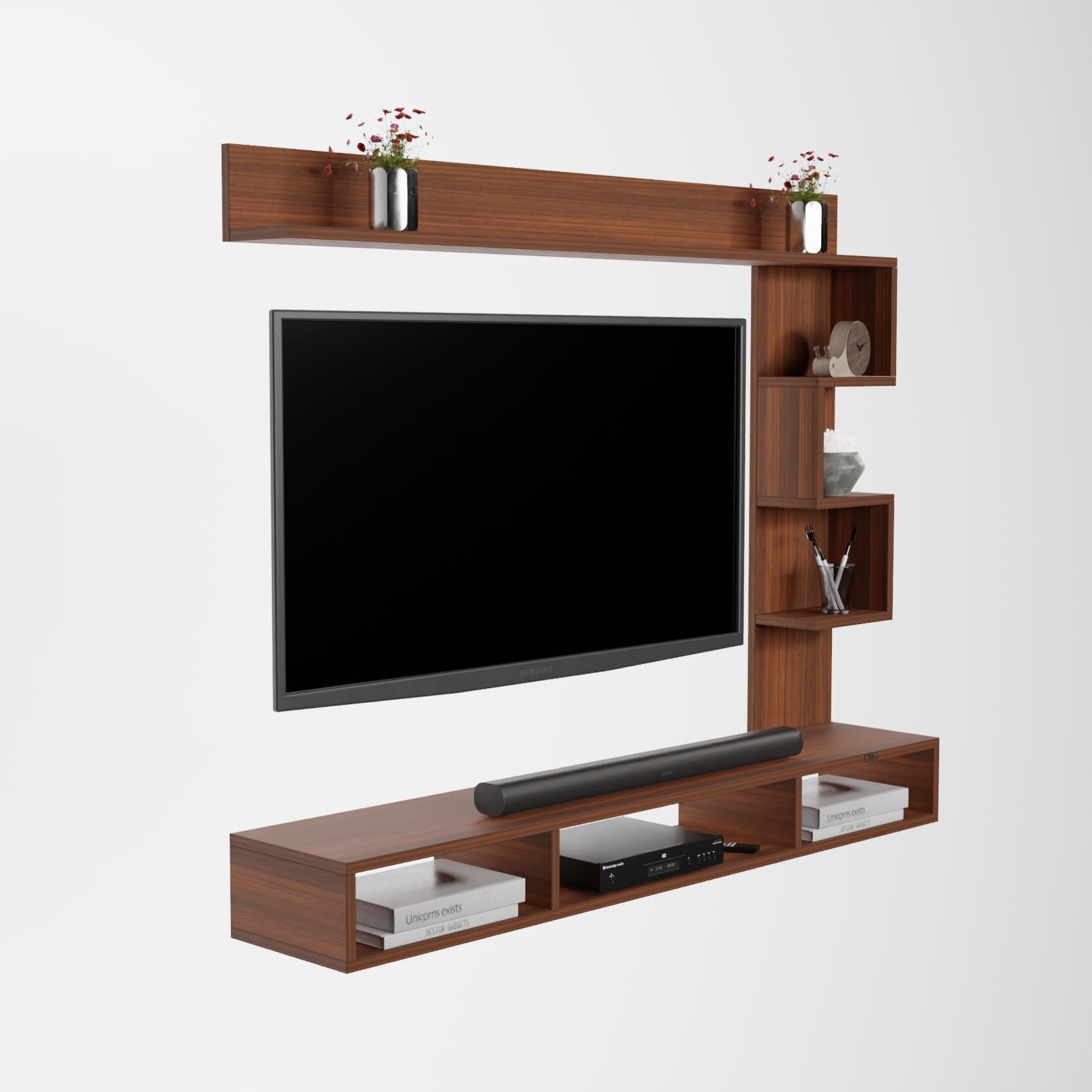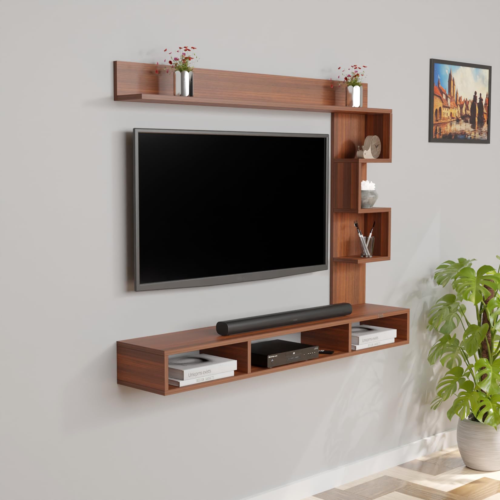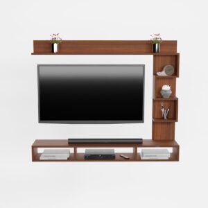 Hubert LED Light Installed Wall Mount Engineered Wood TV Entertainment Unit/Tv Rack Set to Box Stand with Wall Shelves for Living Room Classic Walnut Finish (Ideal for up to 43″) Screen