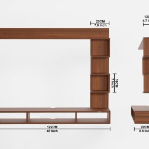 Material- Pre-laminated particle baord. Weight Capacity- 20 KG. Cable Management. Product Dimension- TV Cabinet- 121 x 23 x 72 CM cm Weight- 12.8 KG