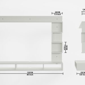 Material- Pre-laminated particle baord. Weight Capacity- 20 KG. Cable Management. Product Dimension- TV Cabinet- 121 x 23 x 72 CM cm Weight- 12.8 KG