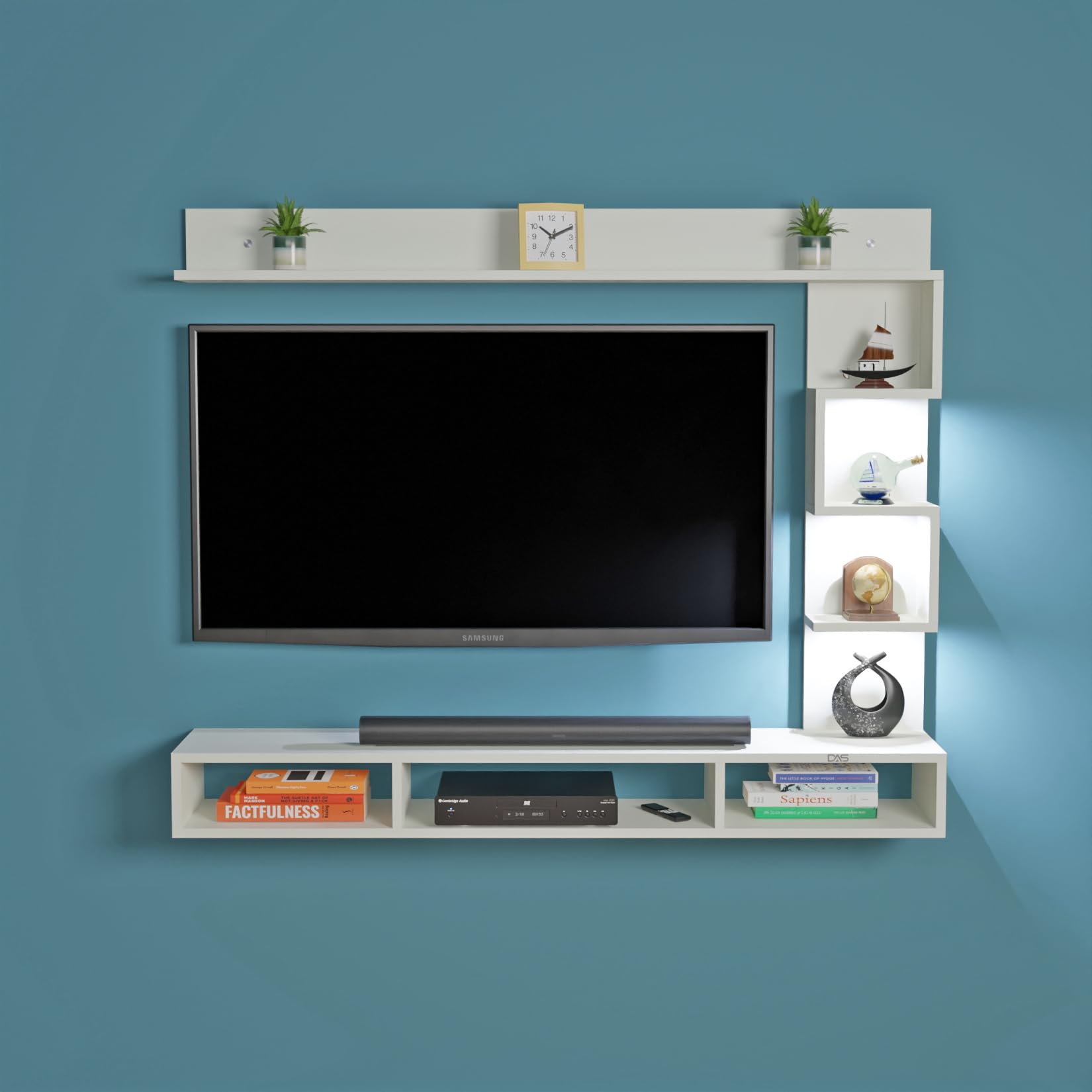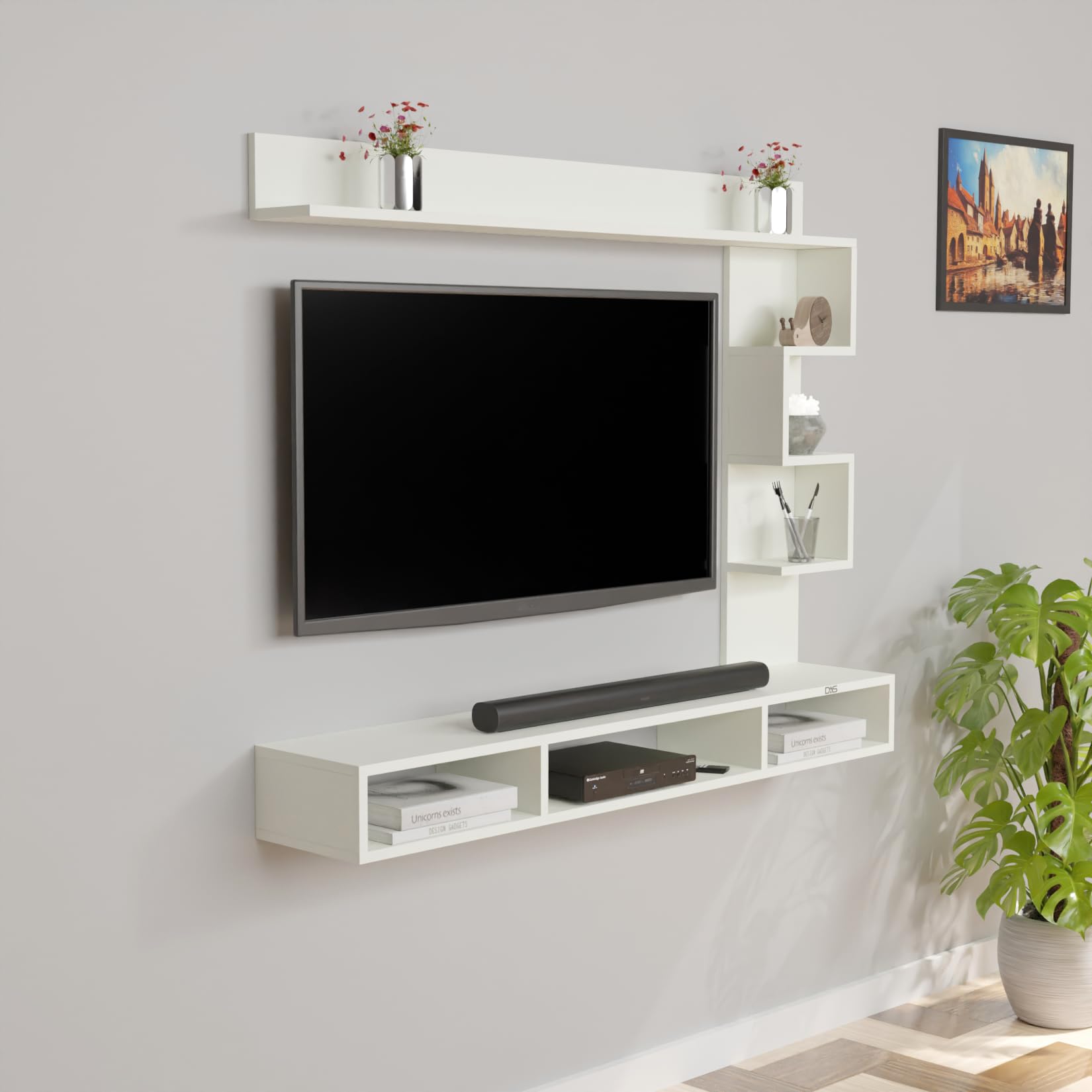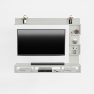 Hubert LED Light Installed Wall Mount Engineered Wood TV Entertainment Unit/Tv Rack Set to Box Stand with Wall Shelves for Living Room Frosty White Finish (Ideal for up to 43″) Screen