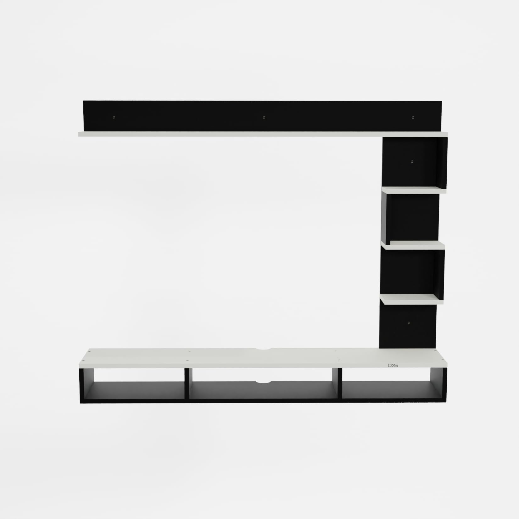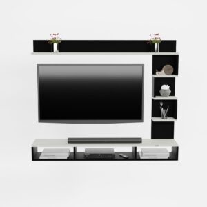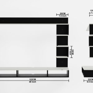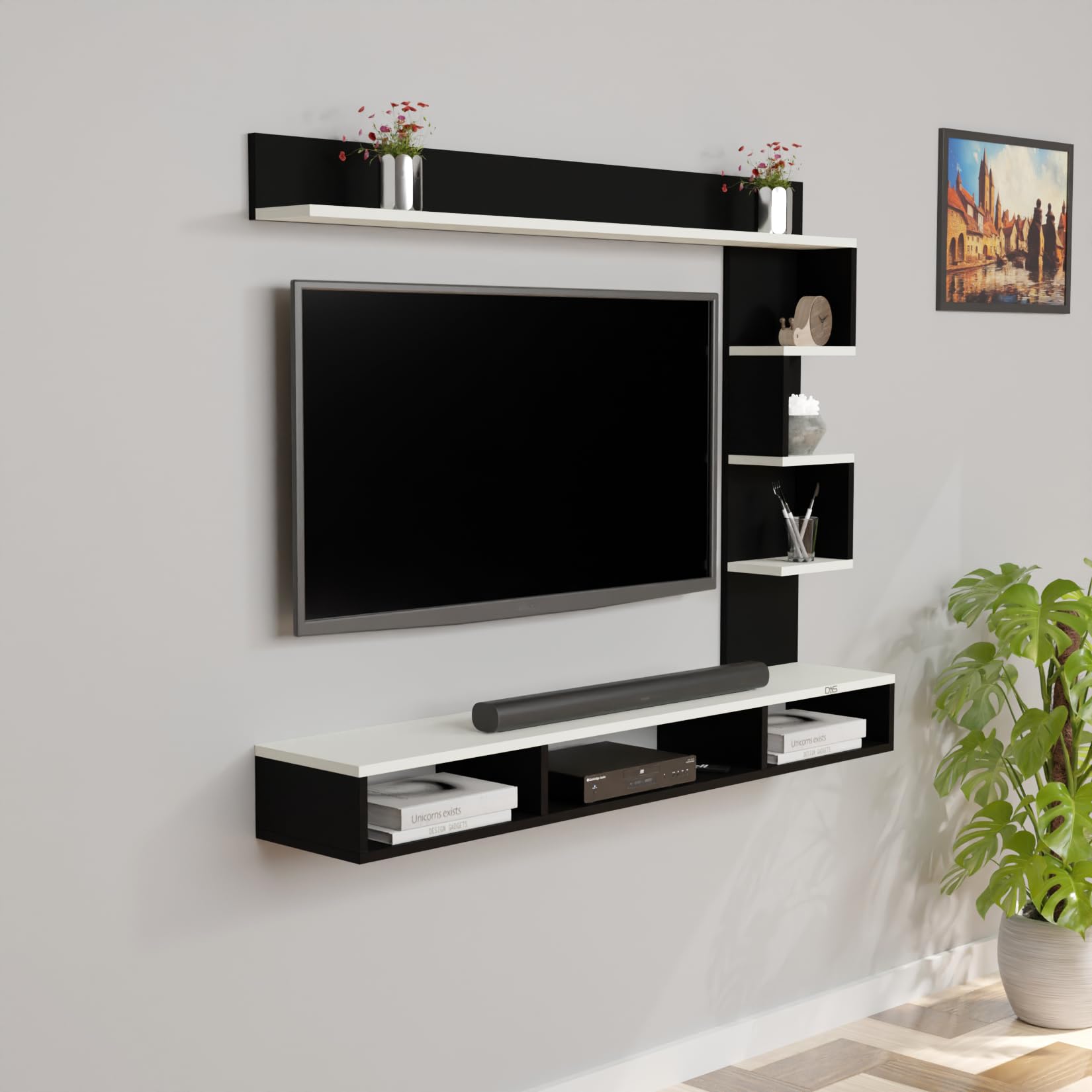 Hubert Pro Wall Mount Engineered Wood TV Entertainment Unit/Tv Rack Set to Box Stand with Wall Shelves for Living Room Black & Frosty White Finish (Ideal for up to 43″) Screen