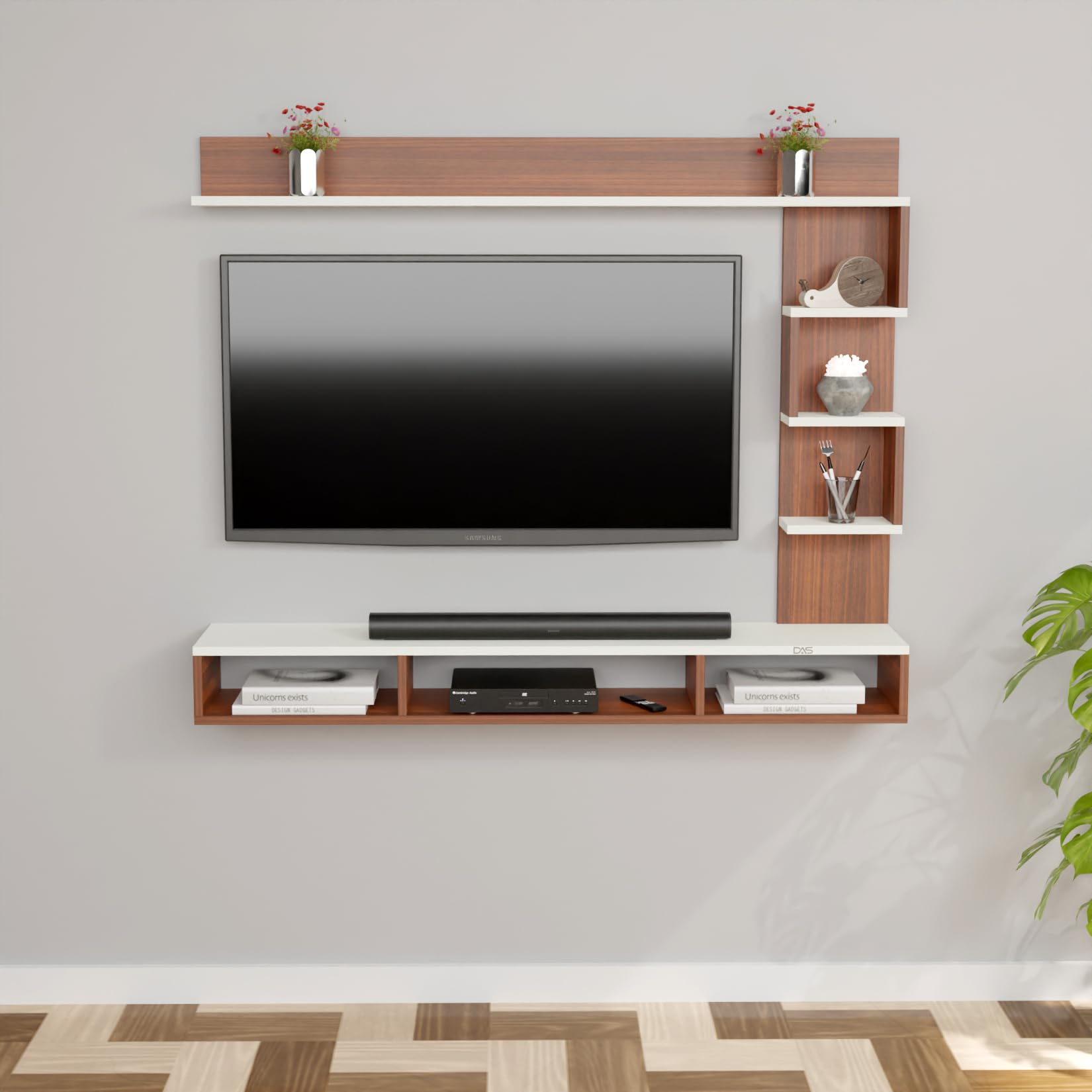 Color : Classic Walnut-Frosty White Size : Ideal for Upto 43″ TV
