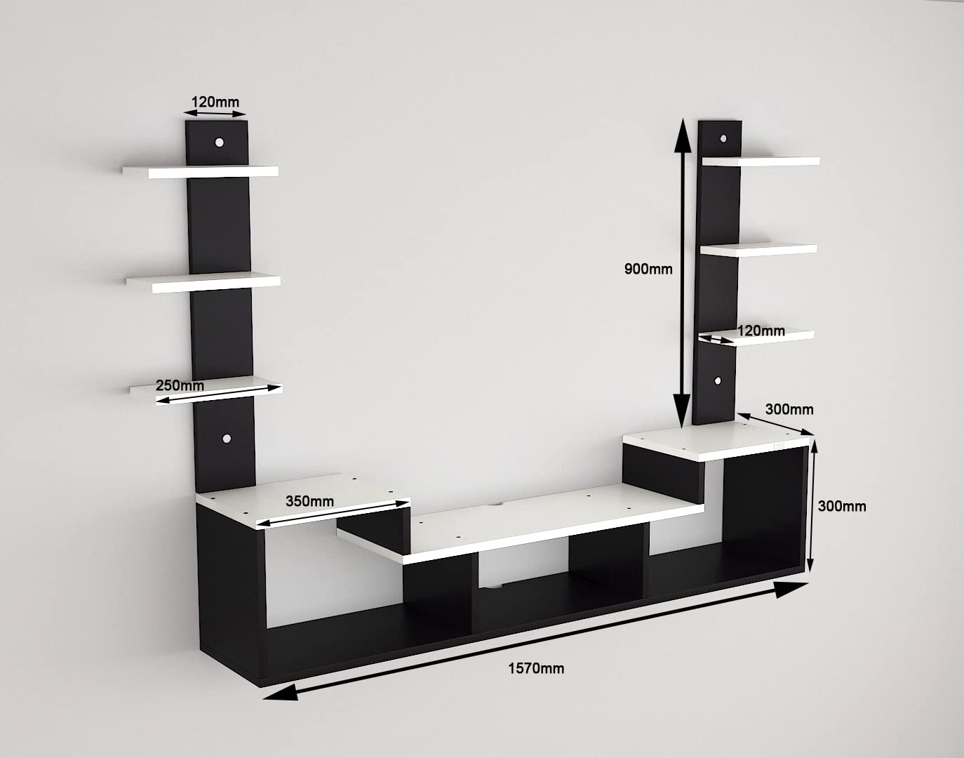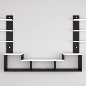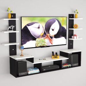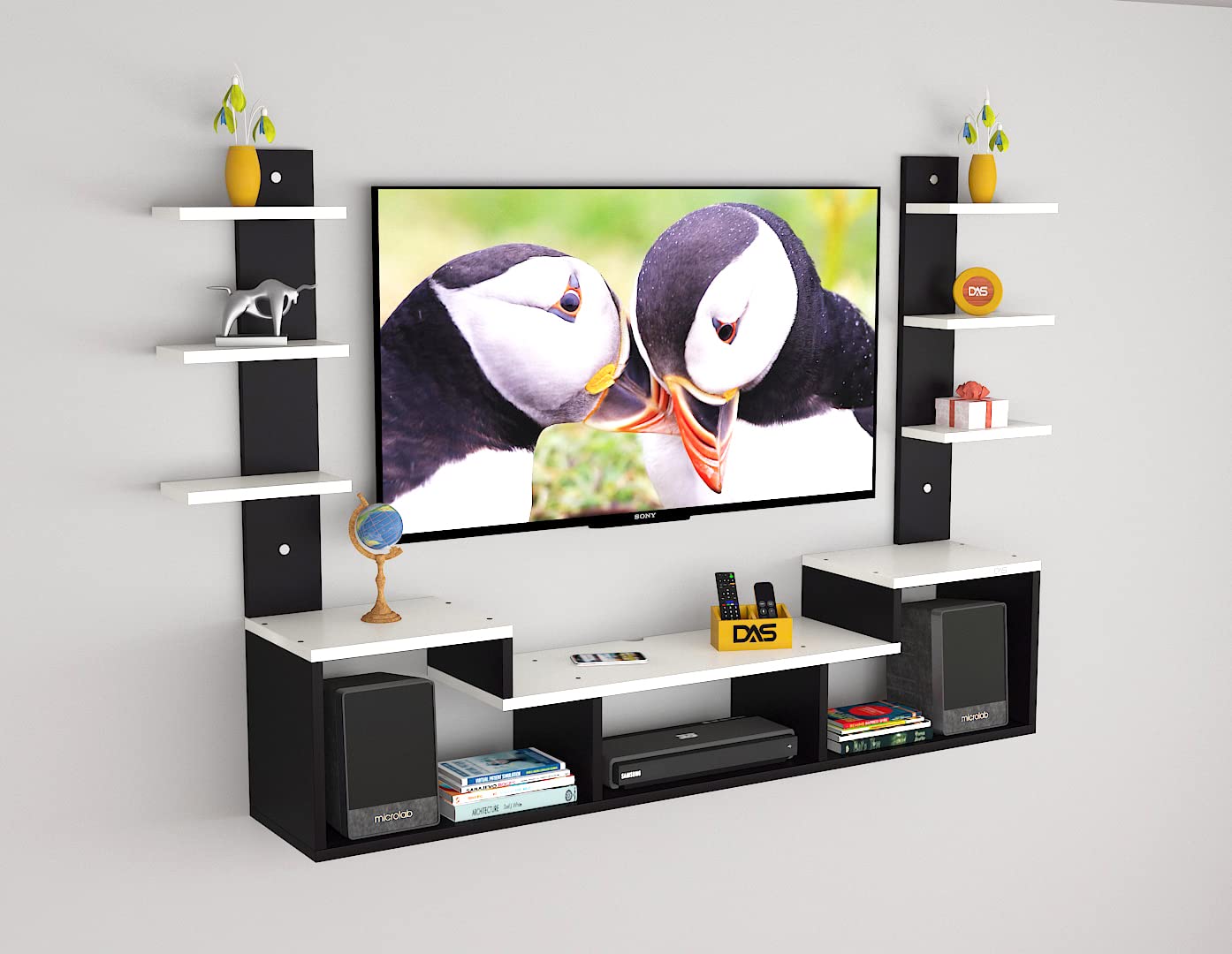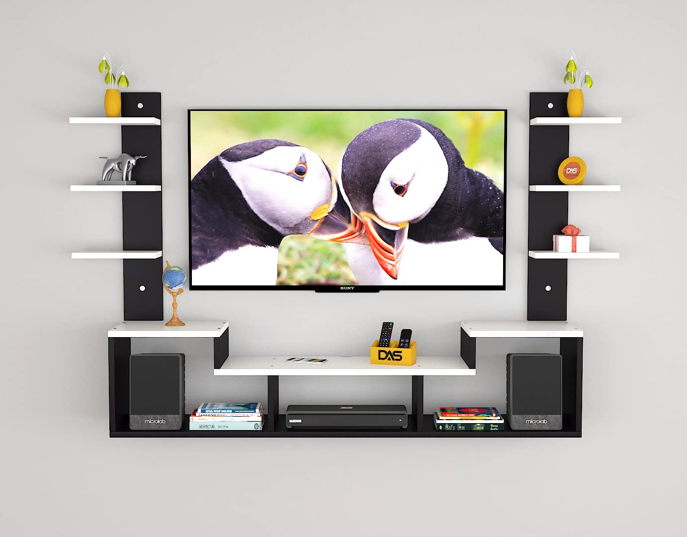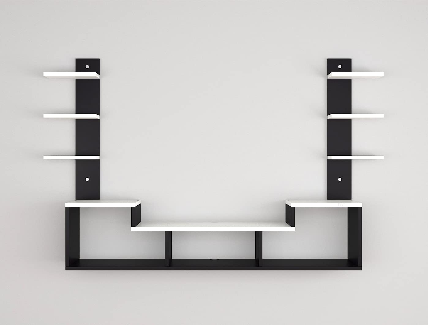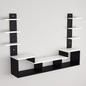 Konrad Max Engineered Wood Wall Mount TV Unit with Wall Shelves Black & Frosty White Finish- for Up to 55″ Screen