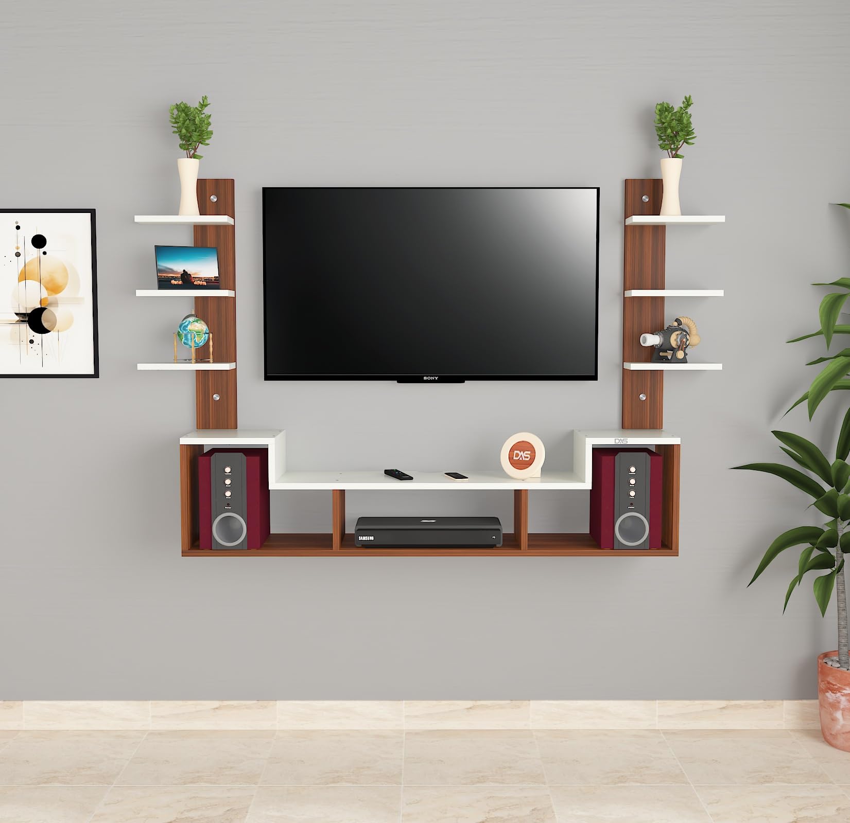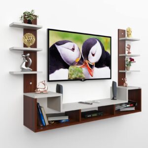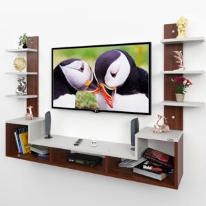 Color : Classic Walnut-Frosty White Size : Ideal for Upto 43″ TV