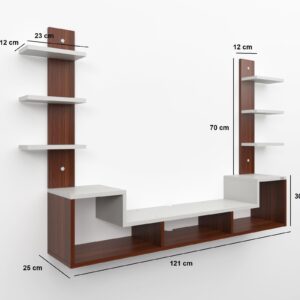 Material- Pre-laminated particle baord. Weight Capacity- 20 KG. Cable Management. Product Dimension- TV Cabinet- 121 x 23 x 70 CM cm Weight- 12.8 KG