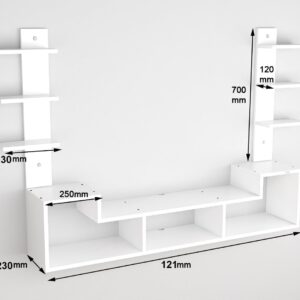 Material- Pre-laminated particle baord. Weight Capacity- 20 KG. Cable Management. Product Dimension- TV Cabinet- 121 x 23 x 70 CM cm Weight- 12.8 KG