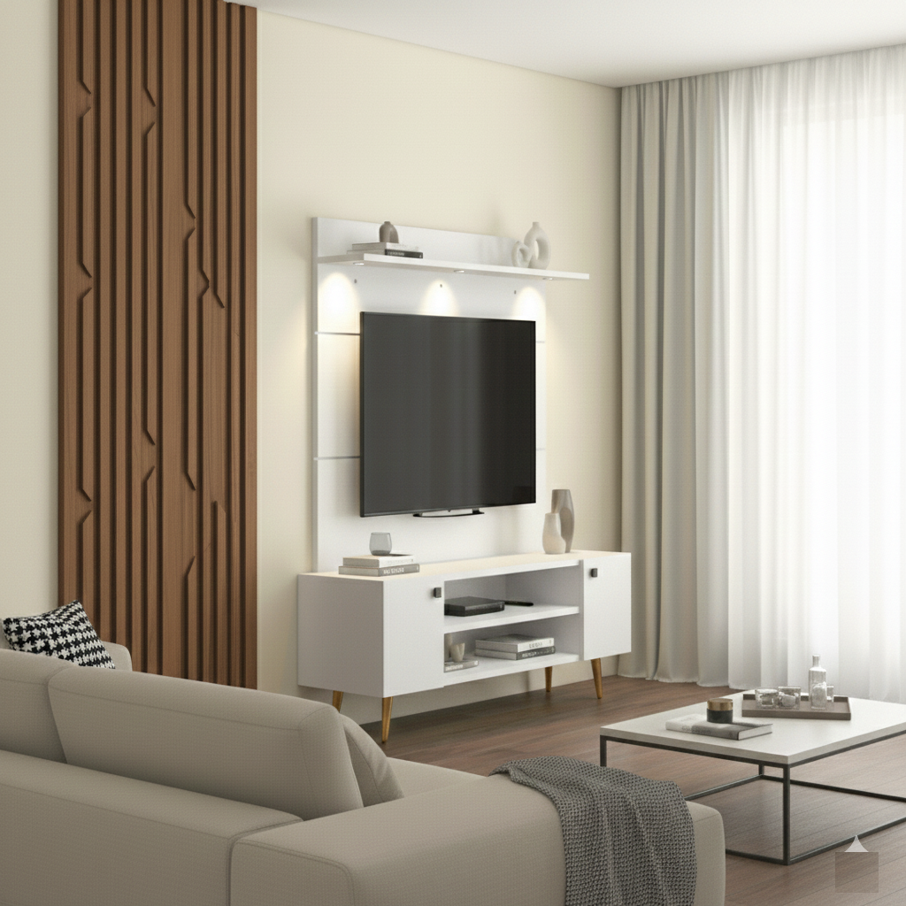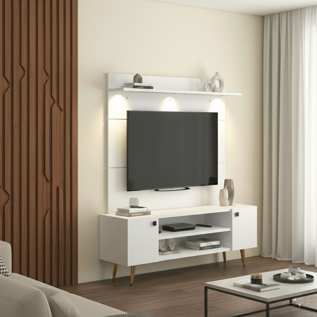 Enhance your living room with this stylish Modern Wooden Floor TV Unit, combining elegance with everyday functionality. Made from premium engineered wood in a rich walnut finish, it adds a warm and contemporary charm to your space. The wide tabletop accommodates TVs up to 65 inches, while the open shelves and side rack provide ample storage for media devices, books, speakers, plants, and dΓ©cor. With its clean lines and modern design, this TV cabinet is a perfect fit for both contemporary and classic home interiors.
