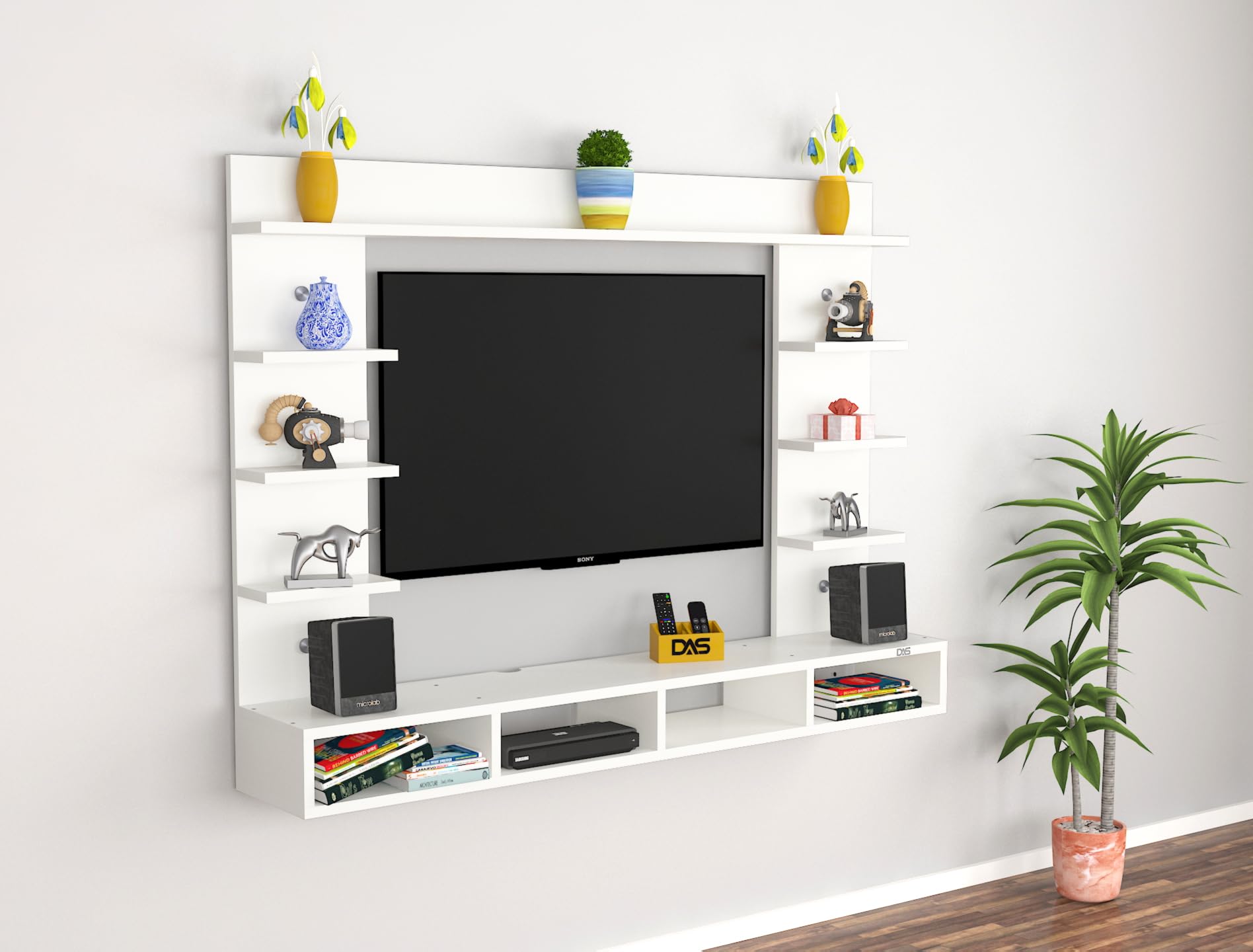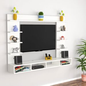 Merrill Engineered Wood Wall Mount TV Entertainment Unit/Tv Rack Set to Box Stand with Wall Shelves for Living Room Frosty White (Ideal for up to 43″) Screen
