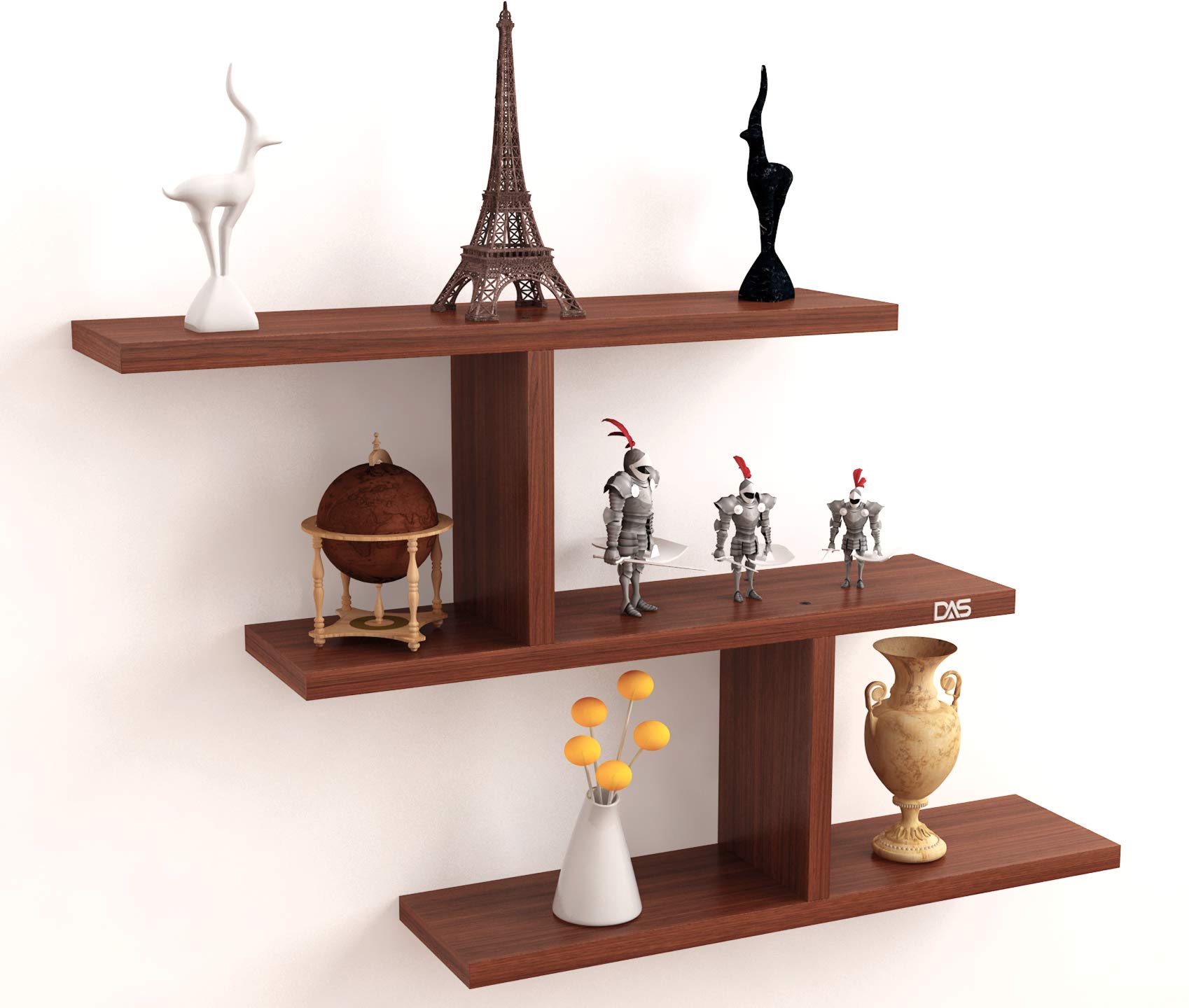 Modern Style Wall Mounted Engineered Wood Wall Décor Shelf/ Shelves Display Rack For Living Room & Home Decor Classic Walnut – Serrano. (Made In INDIA) Our Contribution to the nation in “Atmanirbhar Bharat” MISSION.
