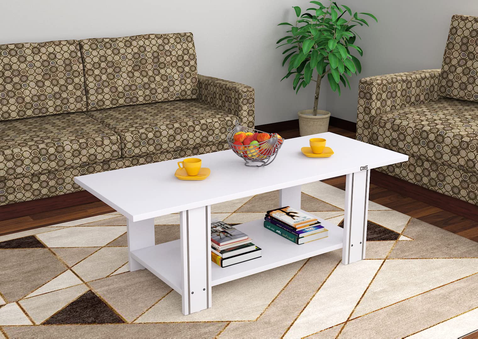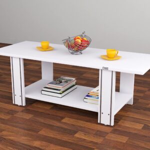 Morgen Engineered Wood Contemporary Style Rectangular Coffee/Centre Table with Metal Stripped Legs for Living Room- Frosty White