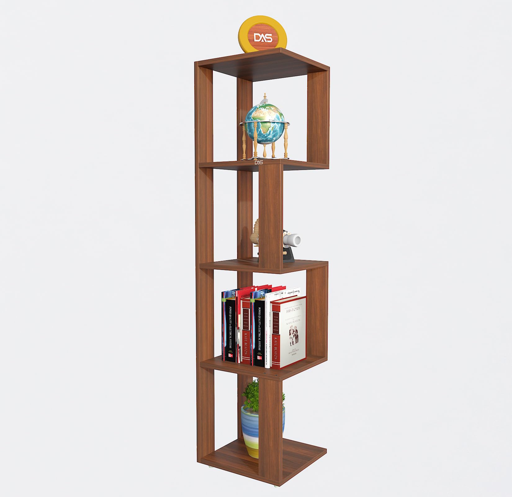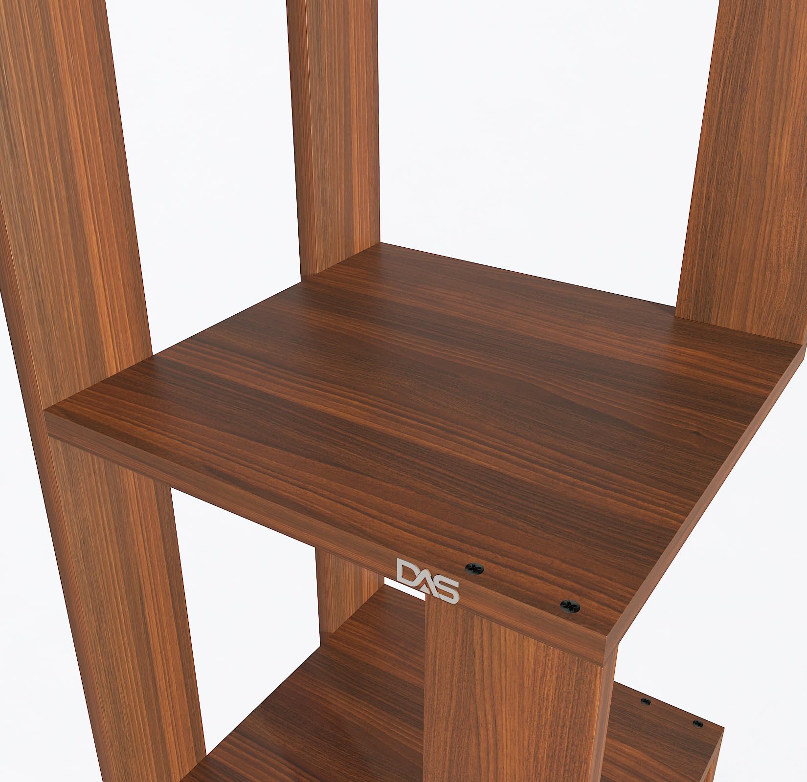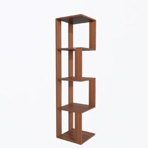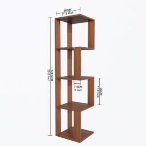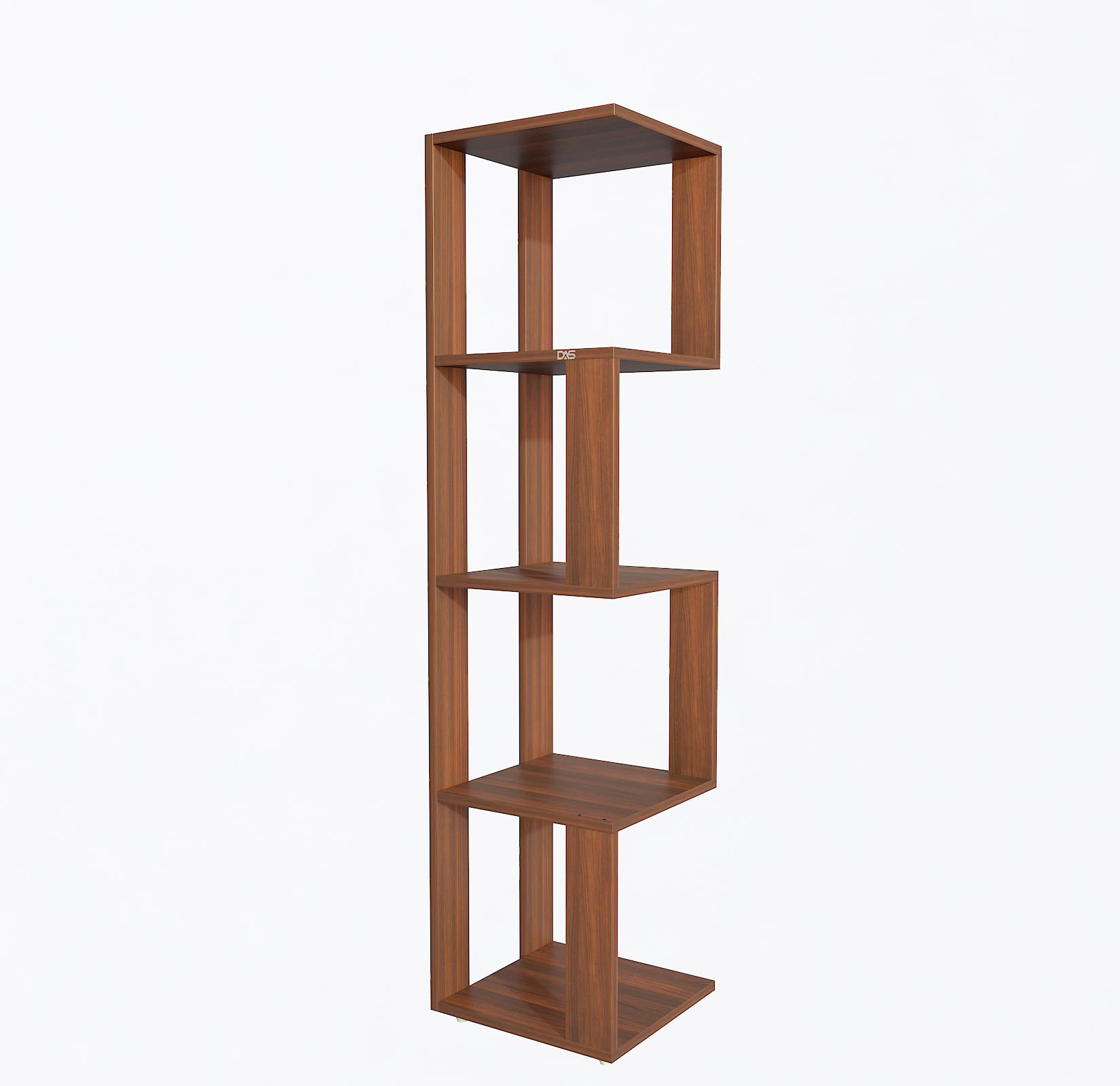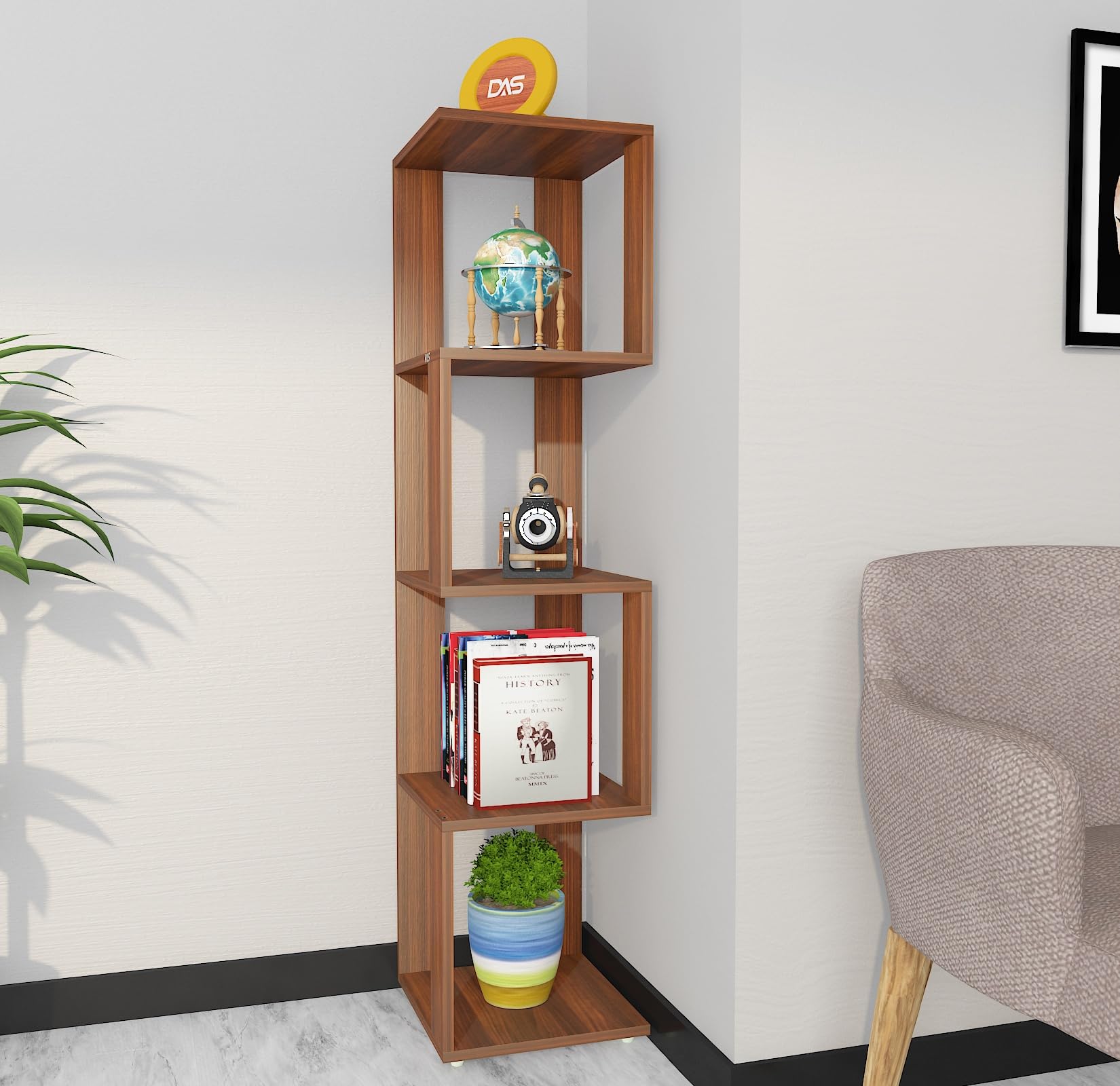 Peter Engineered Wood Floor Standing Corner Shelf Display Rack Unit for Living Room- Classic Walnut