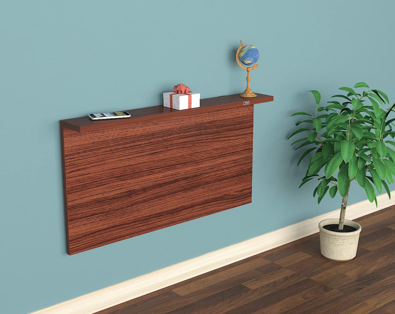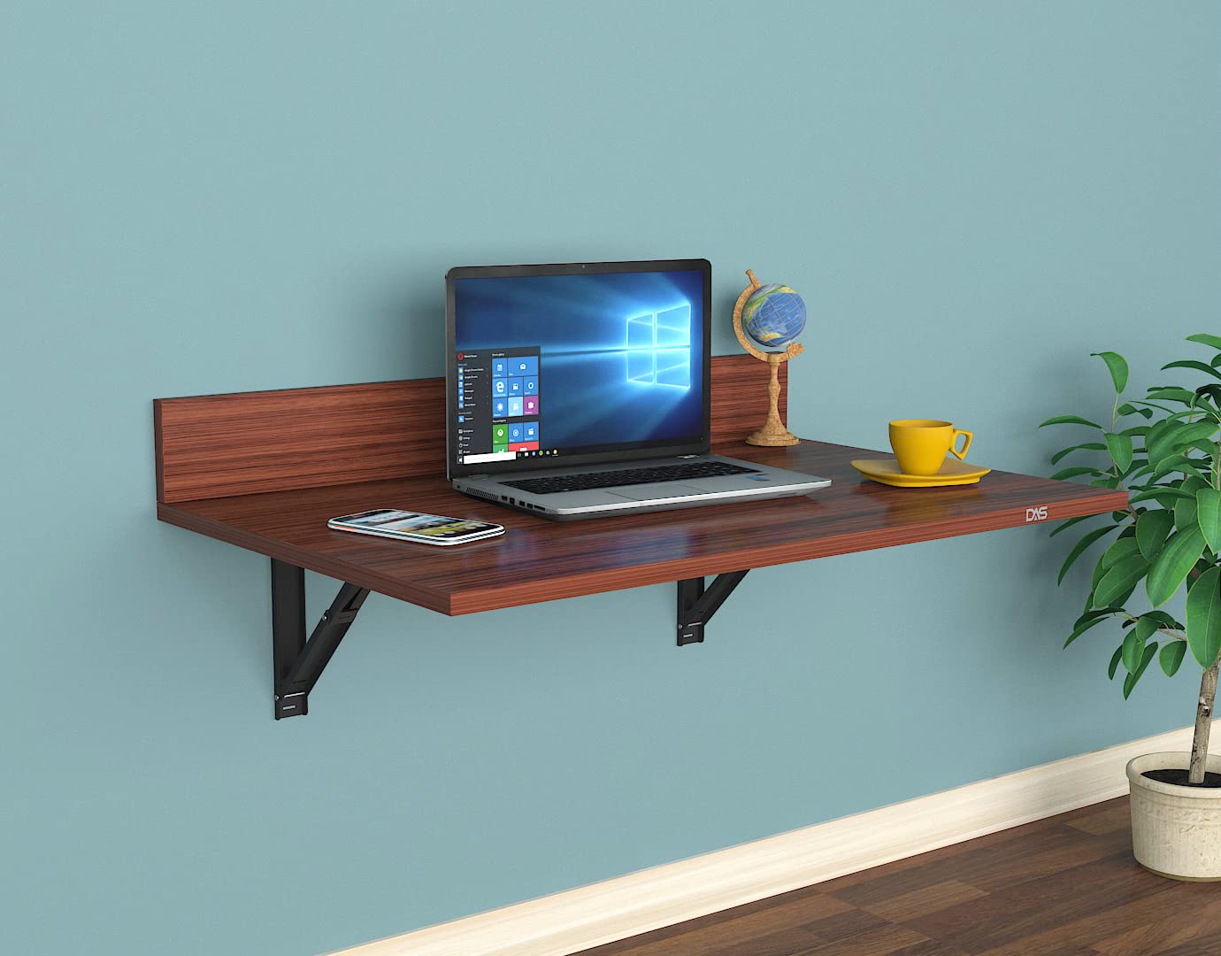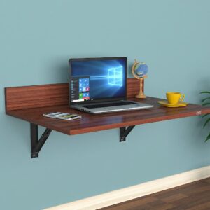 Plácido Engineered Wood Study Desk/Wall Mount Table with Book Shelf Classic Walnut