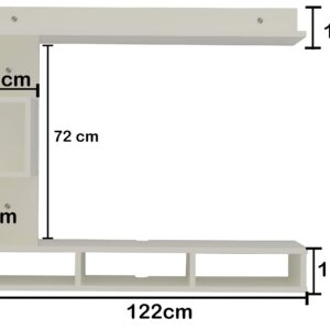 Material- Pre-laminated particle baord. Weight Capacity- 25 KG. Cable Management. Product Dimension- TV Cabinet- 132 x 25 x 40 CM, Wall Shelf- 25 x 12 CM, Shelf supporting Unit- 100 x 25 CM, Weight- 19 KG