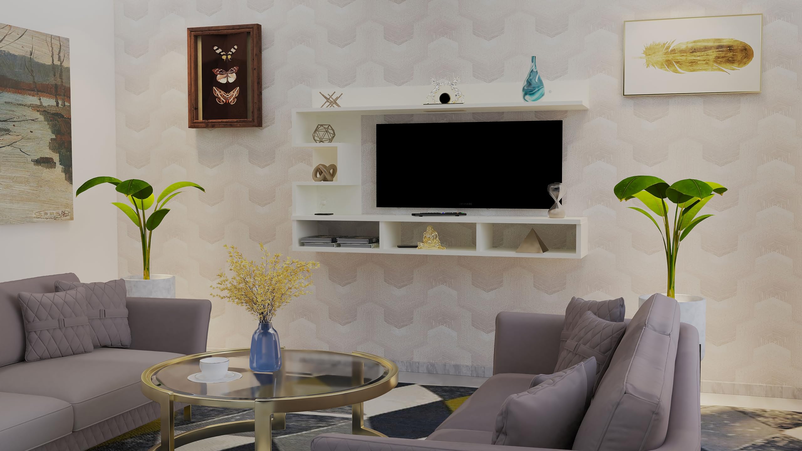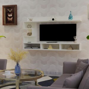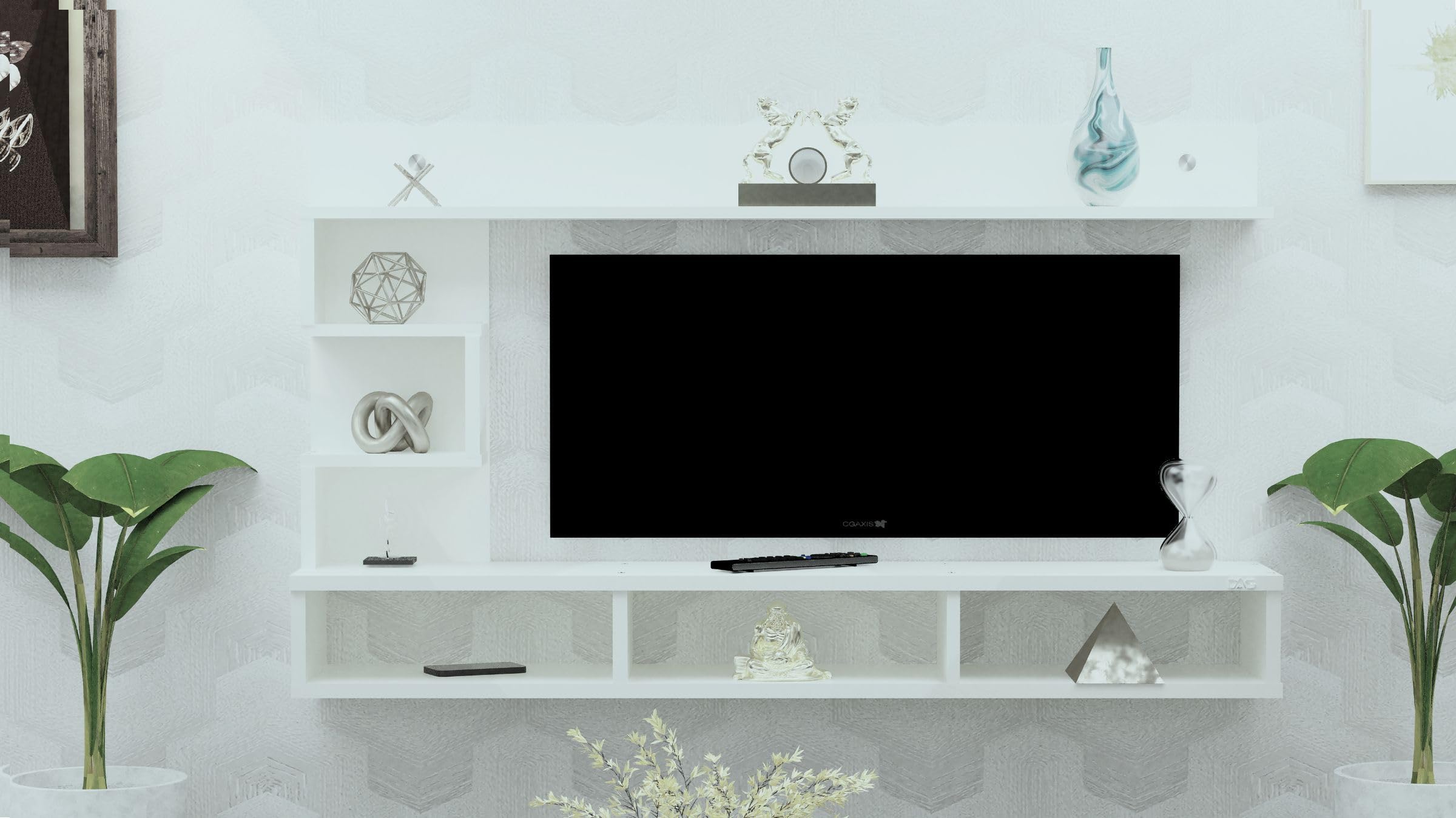 PROXIMA Engineered Wood Wall Mount TV Entertainment Unit/Tv Rack Set to Box Stand with Wall Shelves for Living Room (Ideal for up to 43″) Screen Frosty White Finish