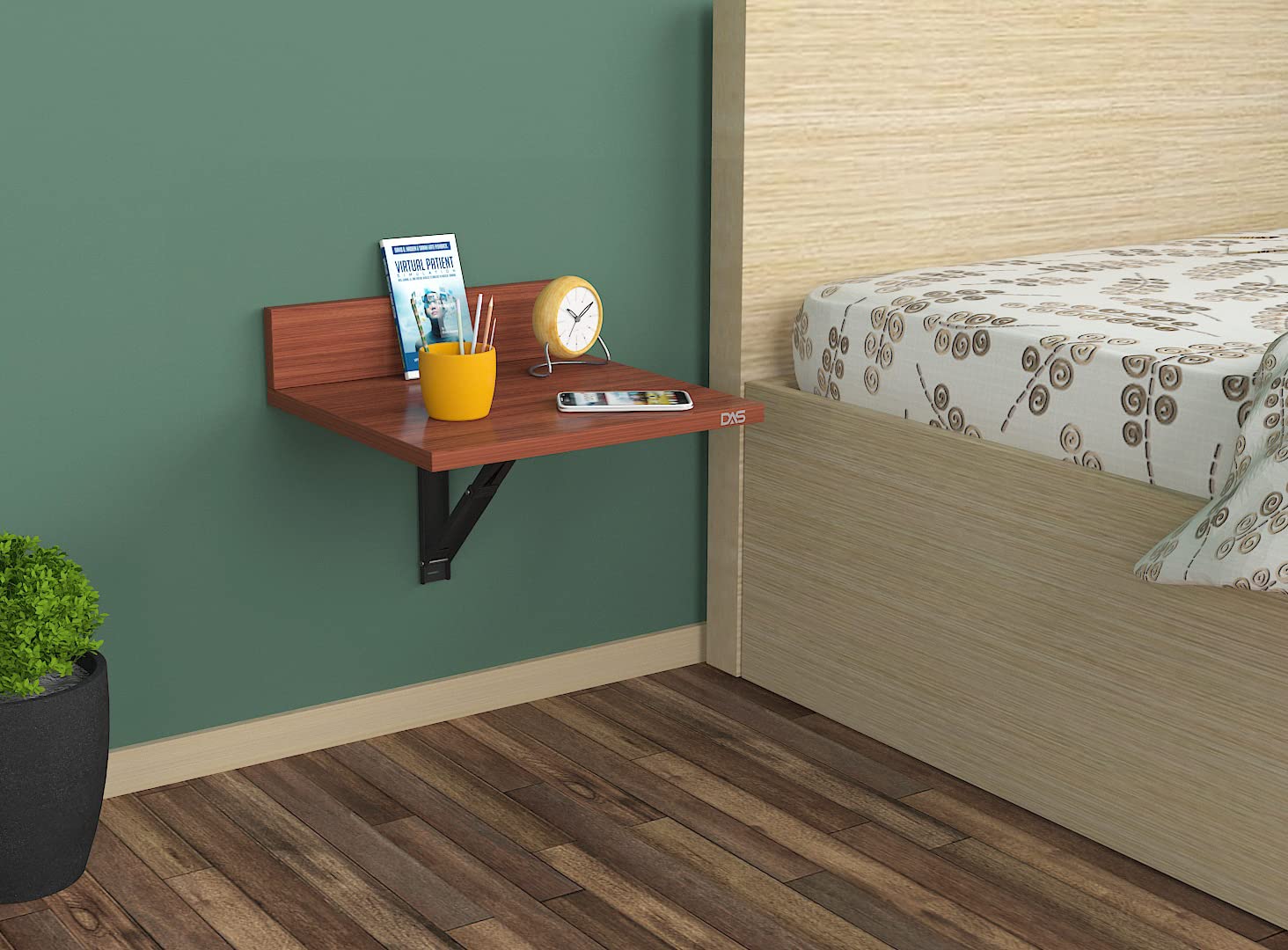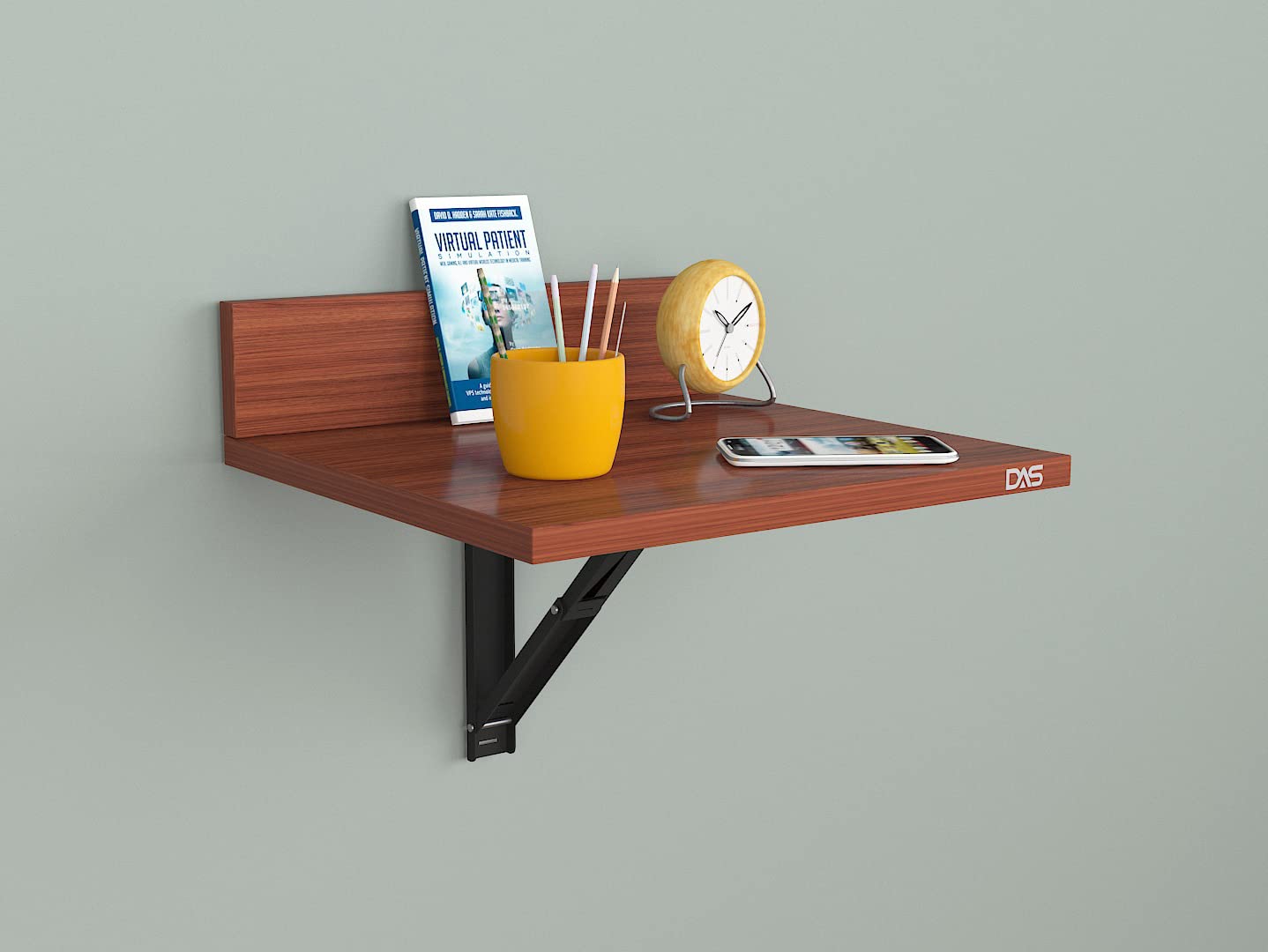 Raquel Engineered Wood Study Desk/Wall Mount Table with Book Shelf Classic Walnut