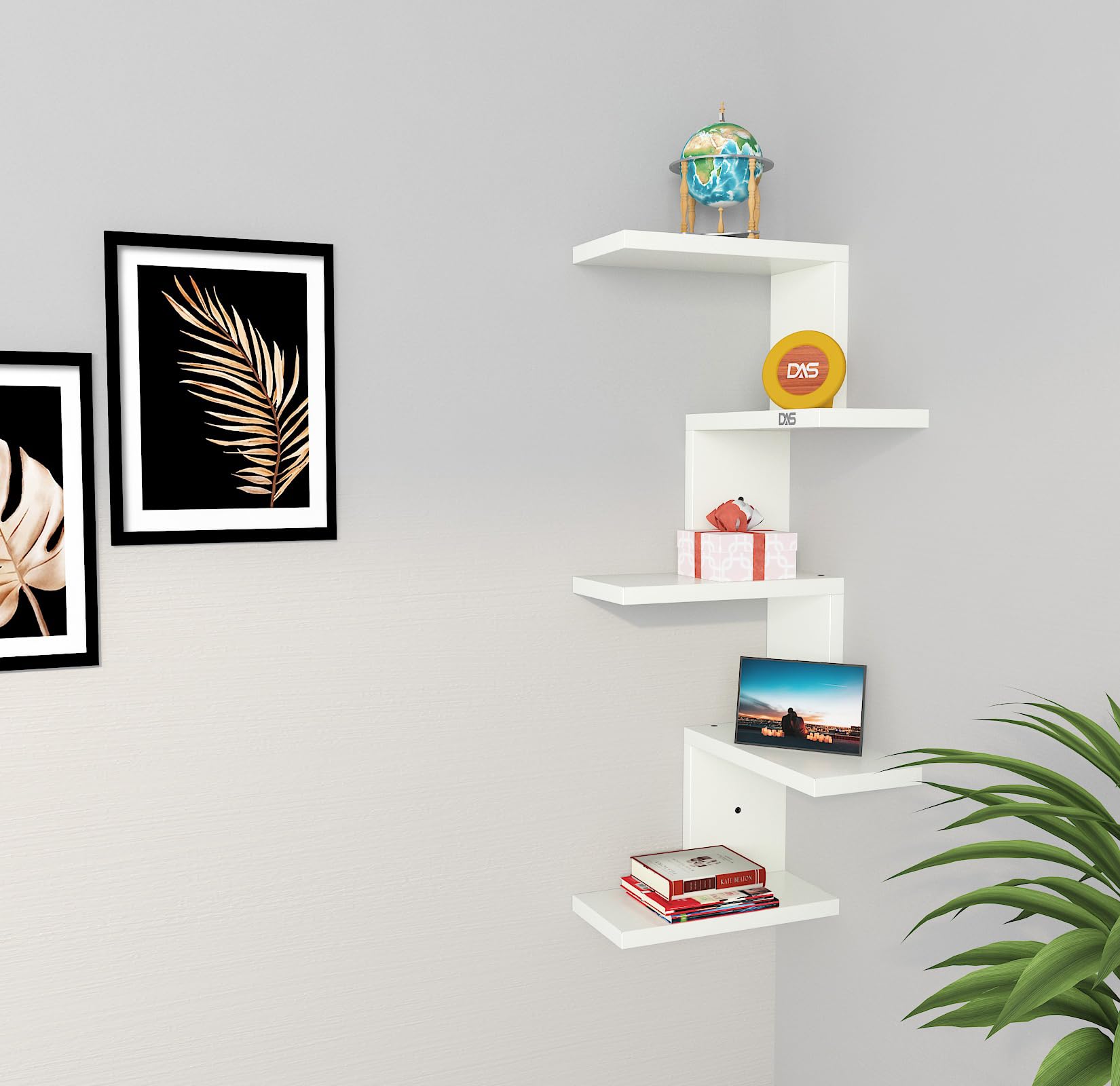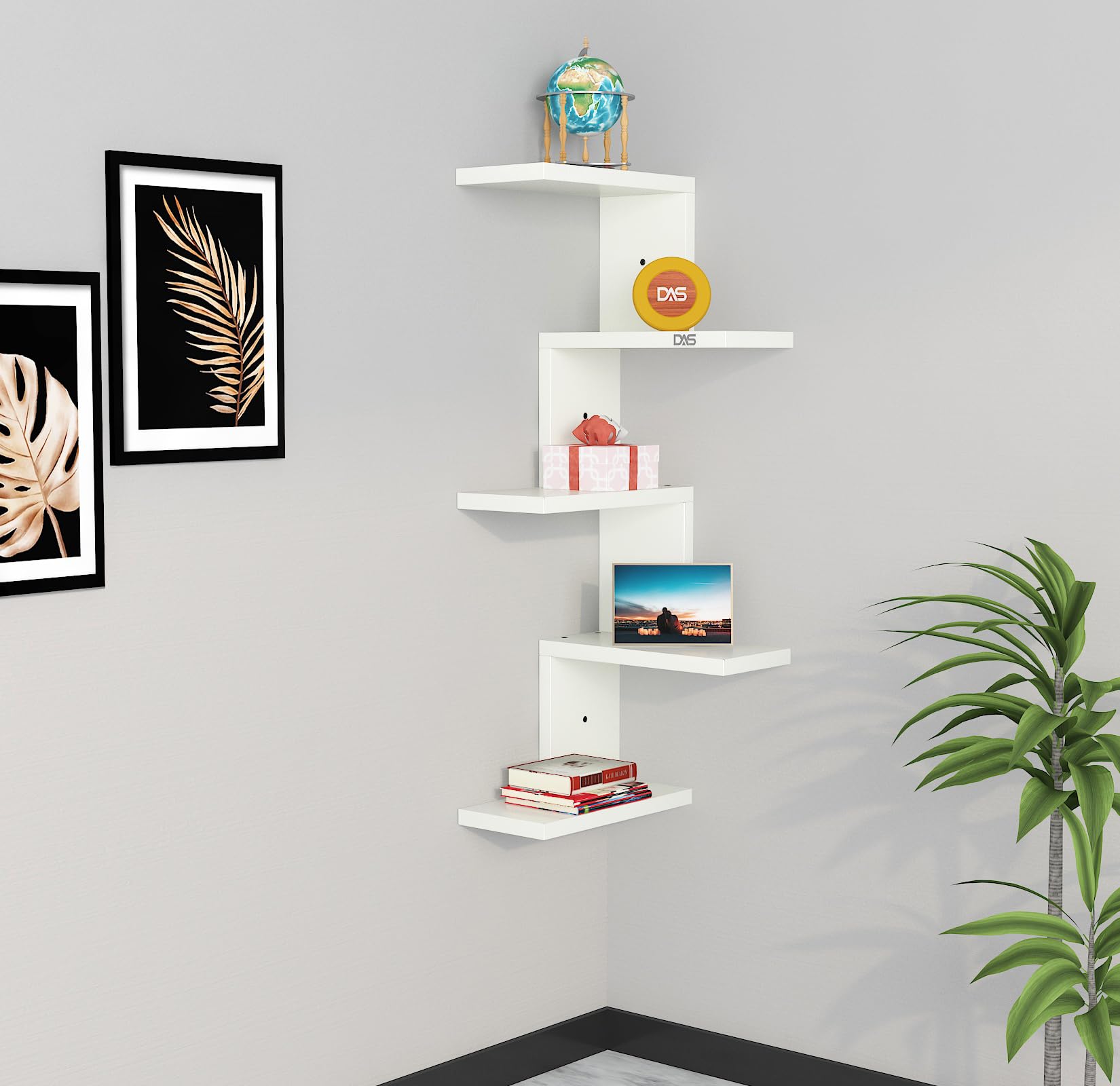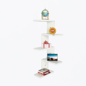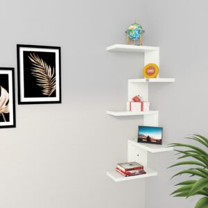 Rikard Engineered Wood Wall Mount Corner Shelf Display Rack Unit for Living Room- Frosty White