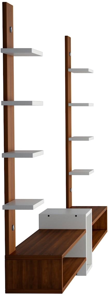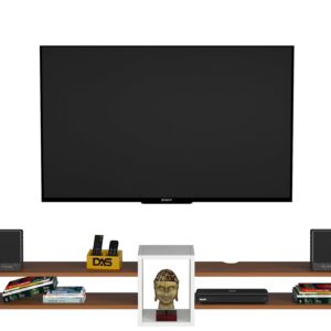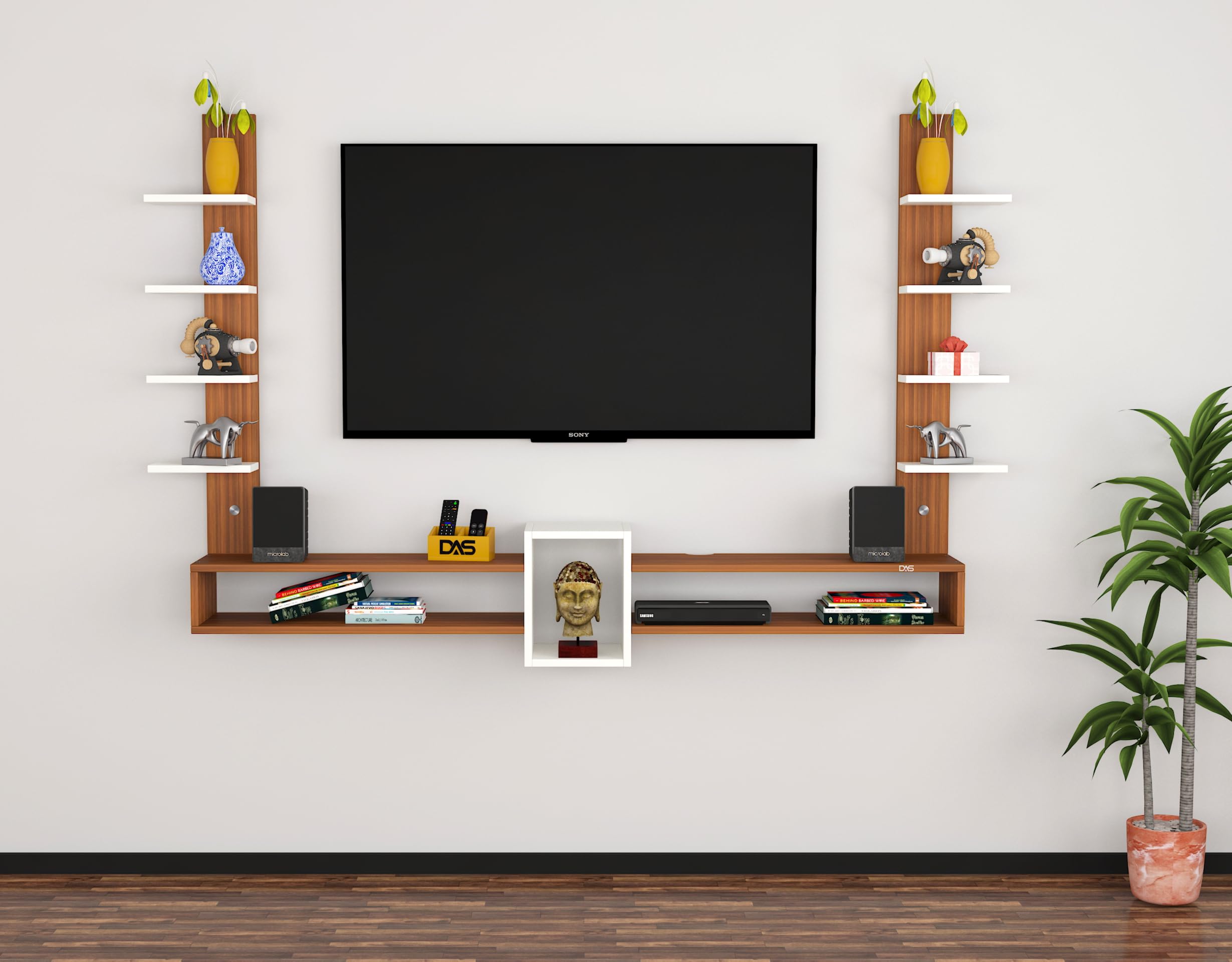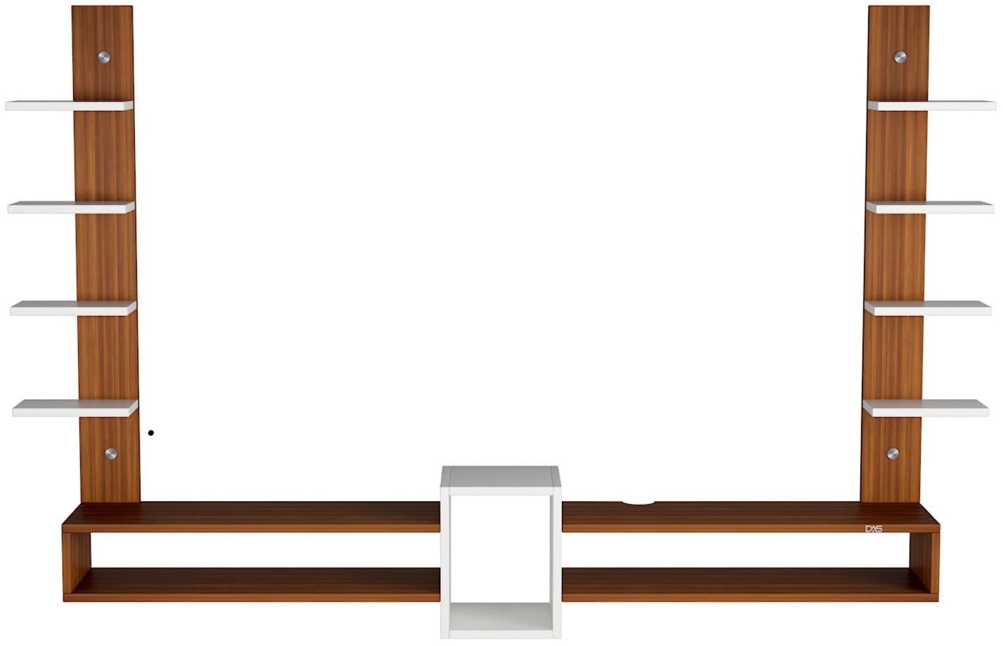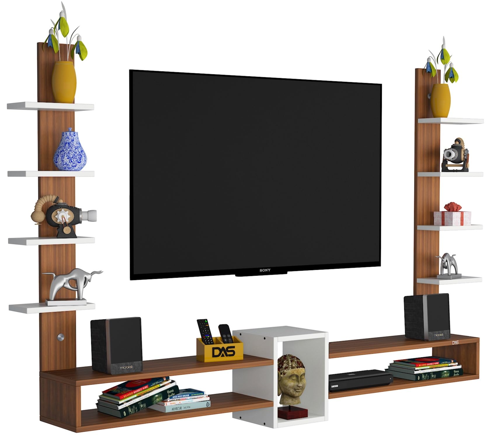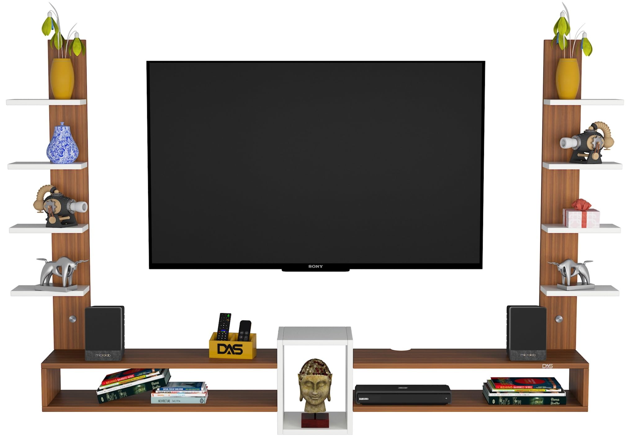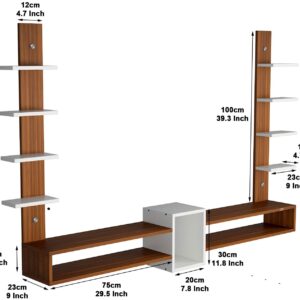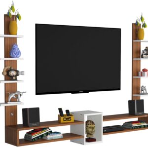 Rudolf Engineered Wood Wall Mount TV Entertainment Unit/Tv Rack Set to Box Stand with Wall Shelves for Living Room Classic Walnut & Frosty White (Ideal for up to 65″) Screen